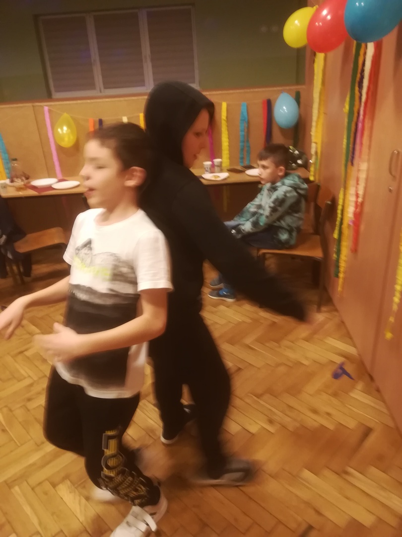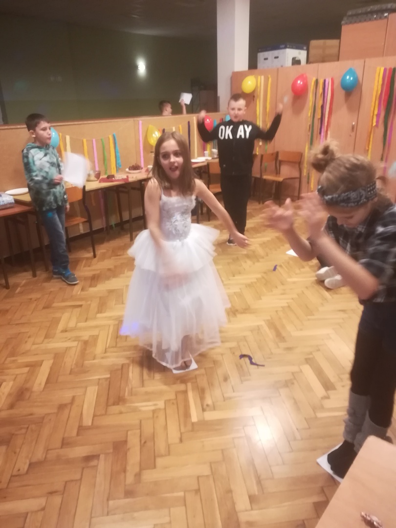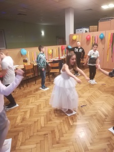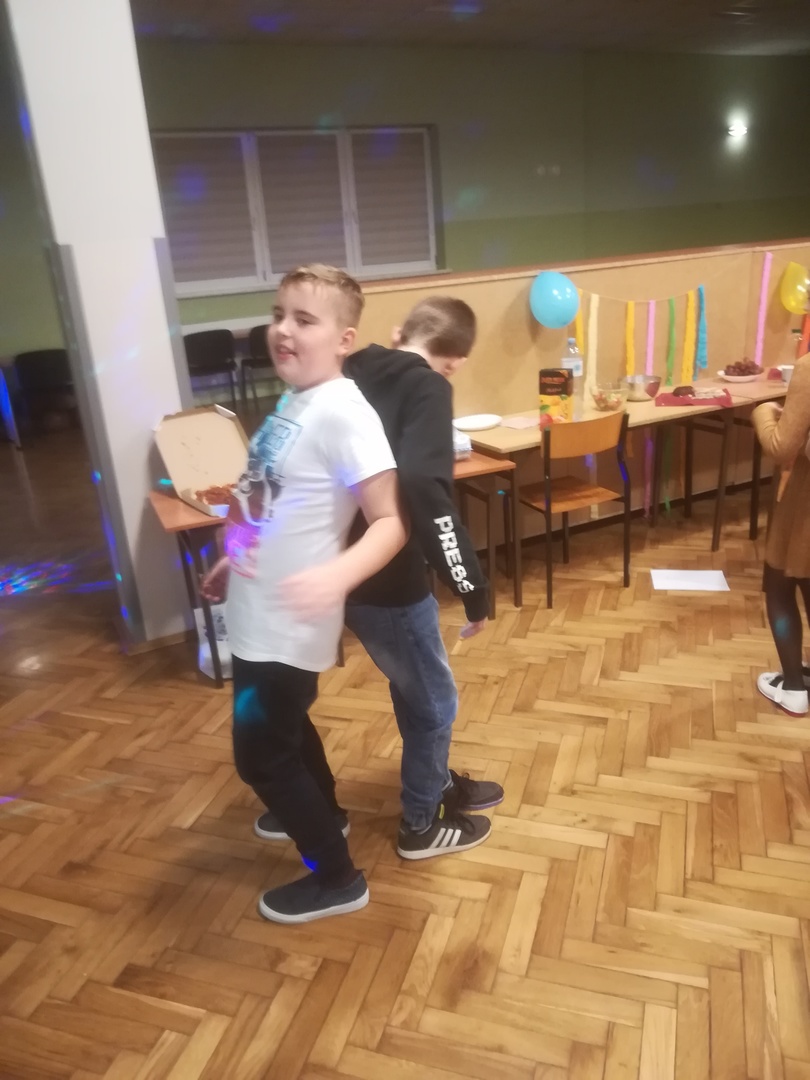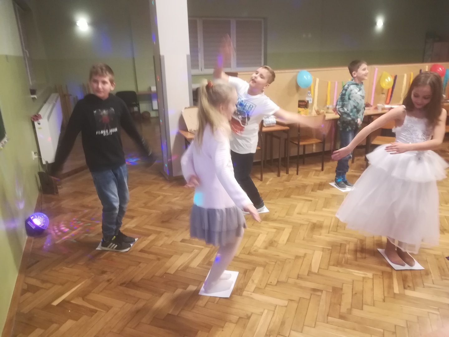 11 lutego uczniowie klasy czwartej wraz z wychowawcą bawili się w godzinach wieczornych podczas swojej pierwszej dyskoteki karnawałowej. Oprócz popisów tanecznych nasi czwartoklasiści brali udział w licznych zabawach. Swoich sił próbowali m.in. na „gorących krzesłach”, w zabawie „zatańcz jak ja”, „wężowy taniec”, „limbo” czy „taniec - zamrażaniec”. Jednak największą atrakcją okazał się „taniec z kartkami”. W przerwach pomiędzy różnymi konkurencjami tanecznymi nasi uczniowie korzystali z poczęstunku przygotowanego przez rodziców. Po skończonej zabawie wszyscy w dobrych humorach wrócili do domu. Cieszymy się, że nasi uczniowie podtrzymują tradycje karnawałowe.