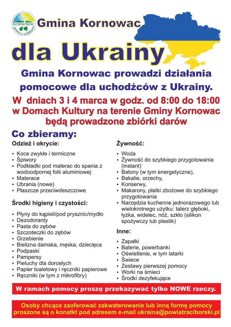 Gmina Kornowac dla Ukrainy Galeria zdjęć Powiązane wiadomości Dyskoteka karnawałowa klasy czwartej 19 luty Dzień Nauki Polskiej 1 marca– Narodowy Dzień Pamięci Żołnierzy Wyklętych Gmina Kornowac dla Ukrainy Rekrutacja do przedszkola i klasy I na rok szkolny... Pomoc dla Ukrainy Drukuj Udostępnij Data dodania: 01.03.2022 Wyświetlono: 235 Aktualności