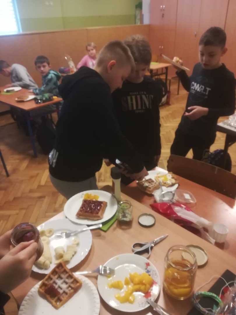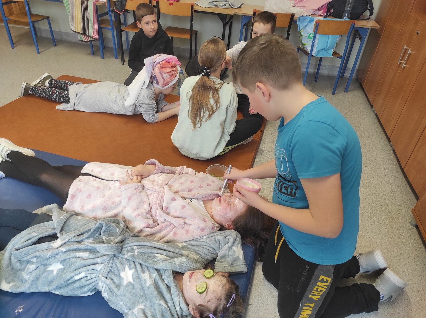 Radosna atmosfera panowała już od samego rana. W tym szczególnym dniu wszystkie kobietki otrzymały serdeczne życzenia i upominki. Chłopcy złożyli życzenia, tradycyjnie zaśpiewali swoim koleżankom uroczyste „100 lat” , wręczyli piękne laurki i niespodzianki. Chłopcy ze szczególnym zaangażowaniem starali się, aby ten dzień uczynić wyjątkowo miłym. Każda klasa obchodziła święto inaczej, ale wszystkim dopisywał humor i zadowolenie. Dla uczczenia tego wyjątkowego dnia w roku nie zabrakło wspólnych, kreatywnych zabaw, które zintegrowały uczniów a przede wszystkim wywołały ogrom śmiechu. W klasie trzeciej dziewczynki miały okazję poczuć się jak w prawdziwym SPA, a o ich dobre samopoczucie zadbali oczywiście koledzy z klasy, którzy z wielkim zaangażowaniem wykonywali swoim koleżankom przeróżne zabiegi. Podczas tego uroczytego dnia nie mogło zabraknąć pysznych posiłków. Dzieci mogły samodzielnie przygotować gofry, a także zjeść pyszną pizze. Dzień minął wszystkim bardzo przyjemnie i z pewnością na lata przetrwa w sercach małych kobietek.
