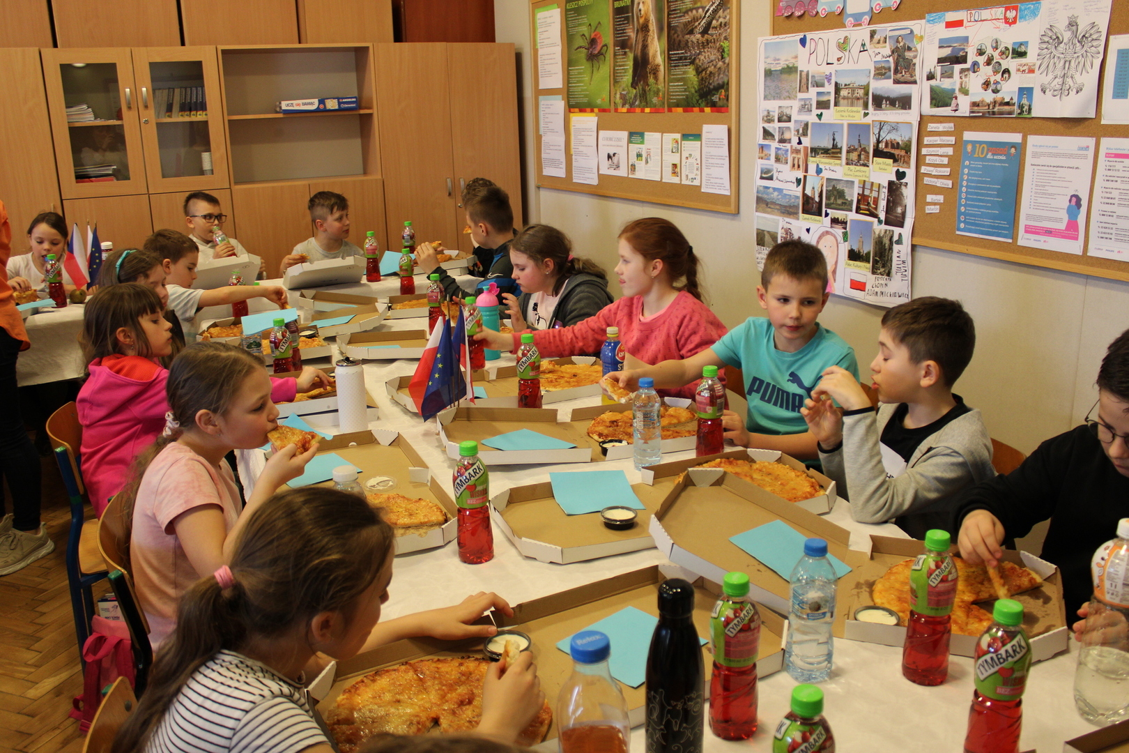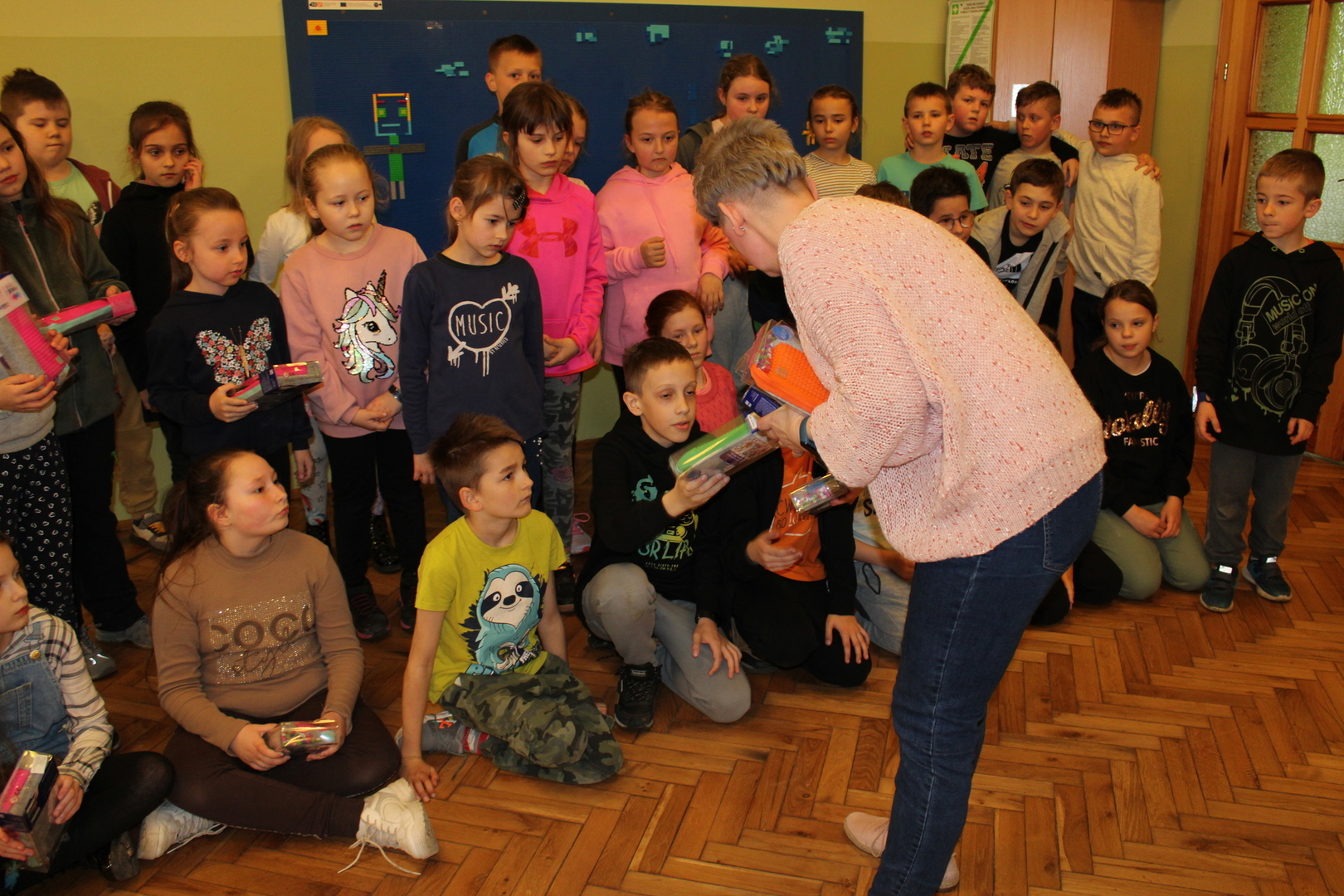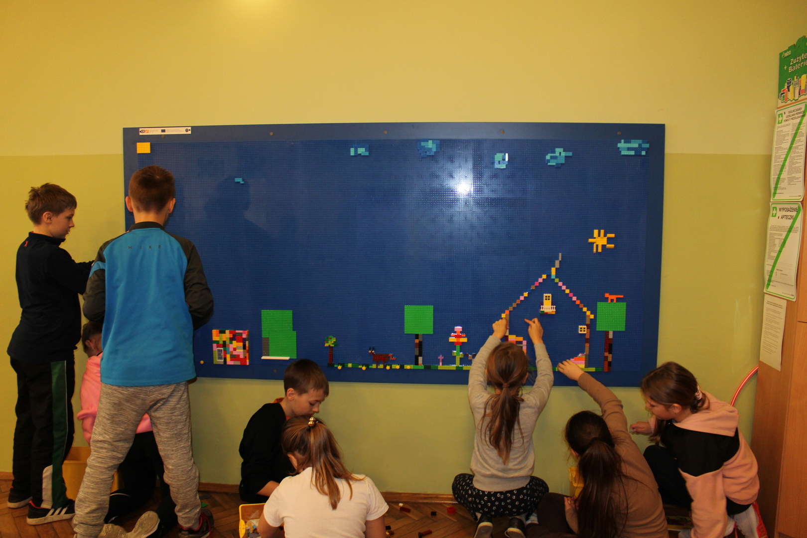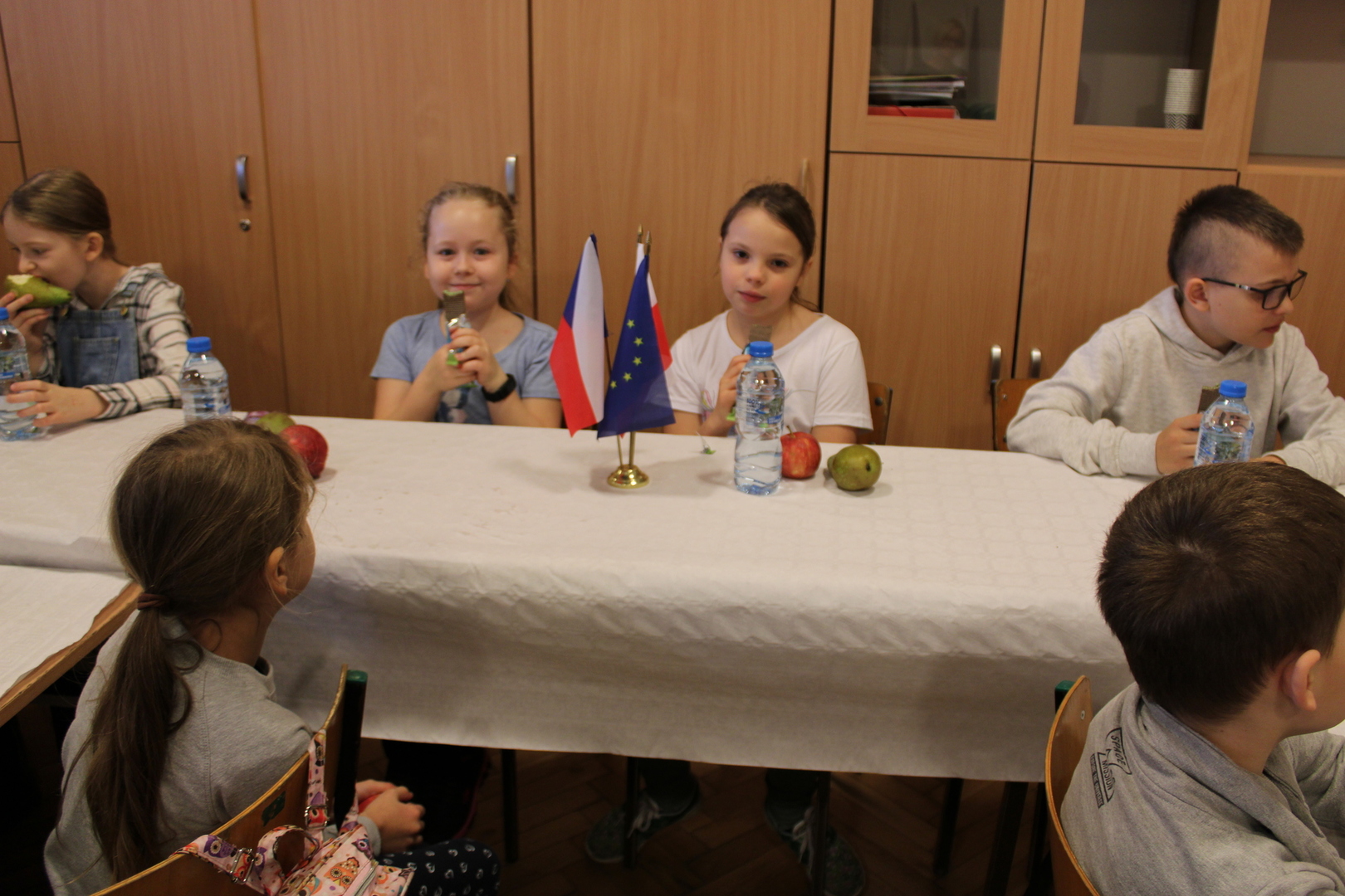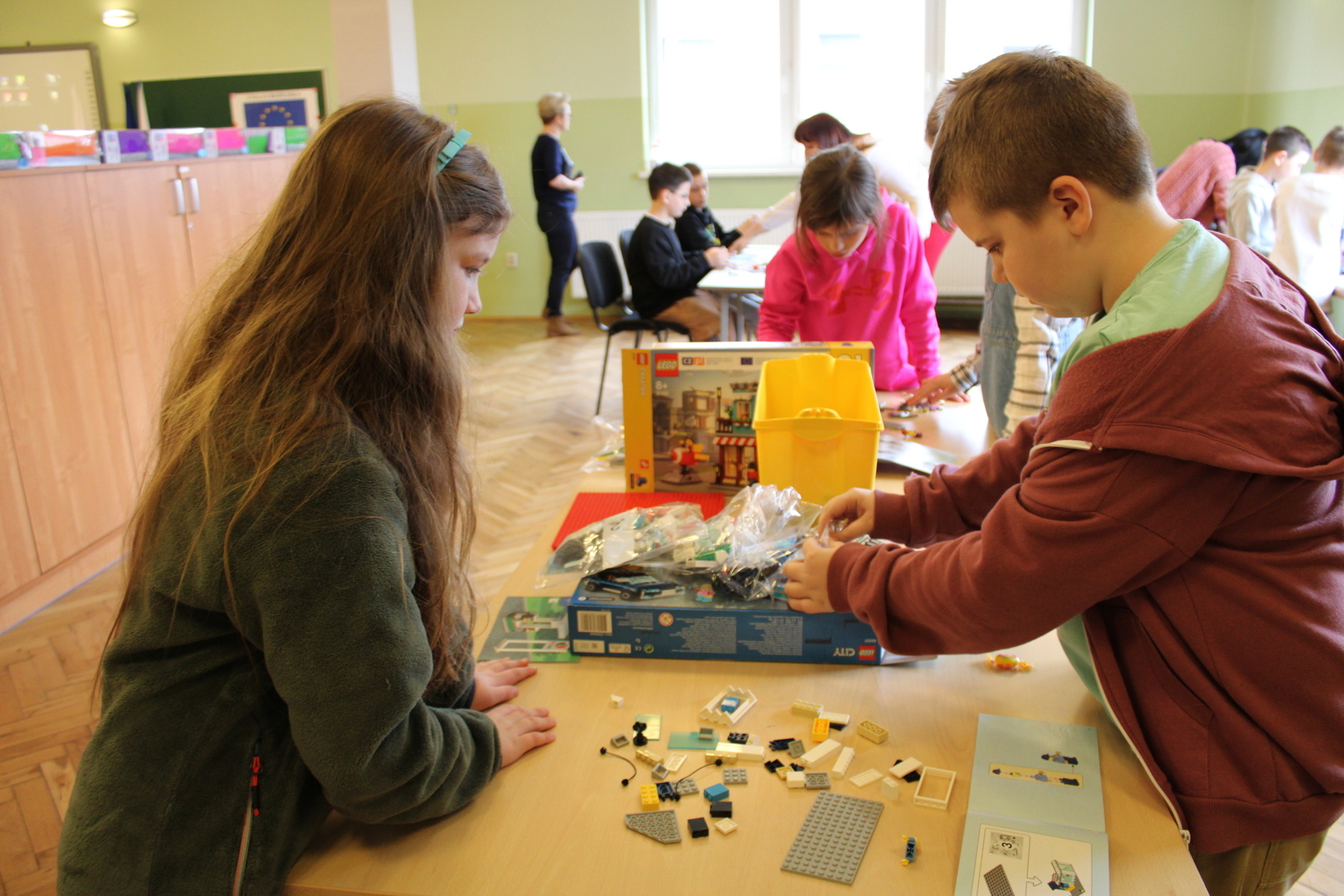czeskimi przyjaciółmi. Jest to już nasz szósty projekt współpracy transgranicznej, który realizujemy wspólnie ze szkołą w Brance u Opavy. Dzisiejsze pełne wrażeń spotkanie, było okazją dla dzieci do wykazania się kreatywnością. Uczniowie obejrzeli ciekawą prezentację, która zapoznała ich z historią klocków LEGO, a następnie przystąpili do budowania z nich. Powstały w ten sposób efektowne budowle, takie jak na przykład diabelski młyn, stacja benzynowa, cukiernia czy remiza strażacka. Jednak aby poruszyć wyobraźnię dzieci jeszcze bardziej, postawiliśmy przed nimi zadanie wspólnego stworzenia obrazka typu 3D z klocków na ściance. Było to dla nich nowe, pełne pomysłowości wyzwanie. Rozegrane zostały także turnieje gier stołowych: piłkarzyków i cymbergaja. Ten pełen wrażeń dzień zakończył się wspólnym poczęstunkiem oraz wręczeniem upominków, które będą niezwykłą pamiątką naszego spotkania. Sądząc po roześmianych buziach dzieci, był to wyjątkowo udany dzień. Zawiązały się nowe znajomości, bariera językowa zdawała się nie istnieć, a świetna atmosfera nie opuszczała nas przez cały dzień. Teraz wszyscy z niecierpliwością czekamy na kolejne działanie projektowe. A będzie nim interesująca wycieczka. Dokąd? Tego jeszcze nie zdradzimy, dlatego zapraszamy do śledzenia naszej strony, na której już niebawem ukaże się relacja z kolejnego wspólnego spotkania.