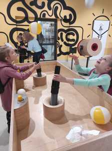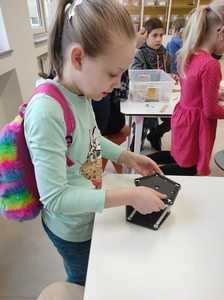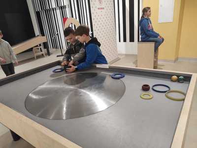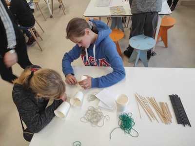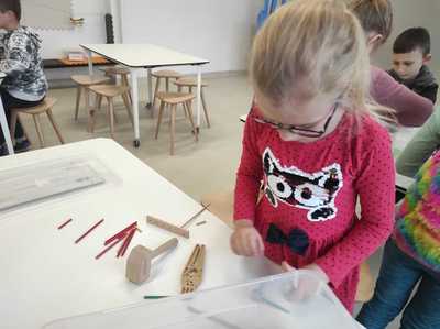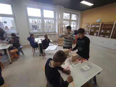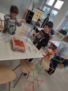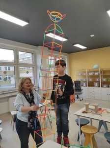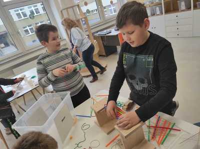 W placówce SOWA uczniowie mogli rozwijać swoją kreatywność w rożnych kategoriach. Zostali podzieleni na różne grupy, gdzie wspólnie wykonywali rożne zadania, min. budowanie z patyczków, budowanie mostu za pomocą klocków, musieli zrobić, z dostępnych materiałów, rzecz, która unosiłaby się w tubie z powietrzem, konstruowali również z rurek, na tablicy magnetycznej równoważnię. W kolejnej sali wykonywali rożne eksperymenty, rysowali w odbiciu lustrzanym, można było zrobić animację, własny film, strzelać z katapulty, zabawić się w szybkie odgadywanie liczb – rywalizacja z szympansem. Stanowisk było bardzo wiele, każdy mógł znaleźć dla siebie coś ciekawego.