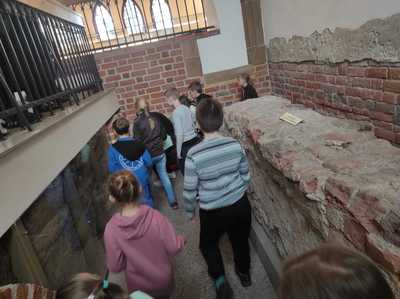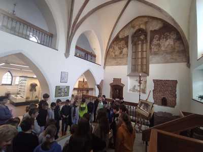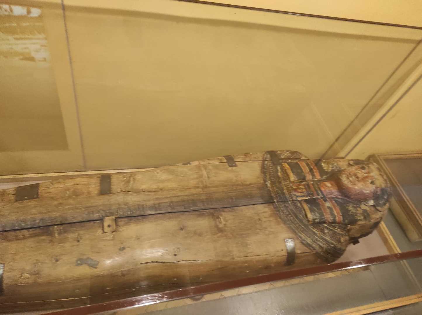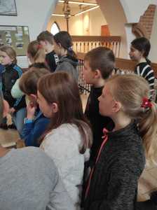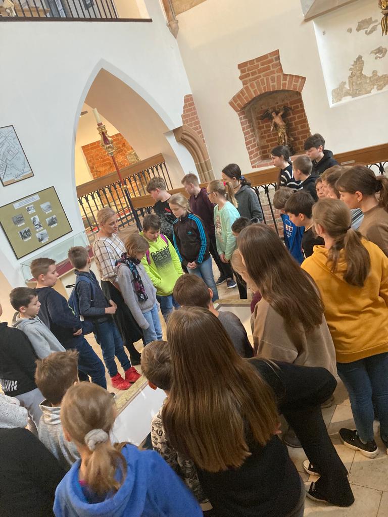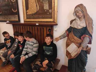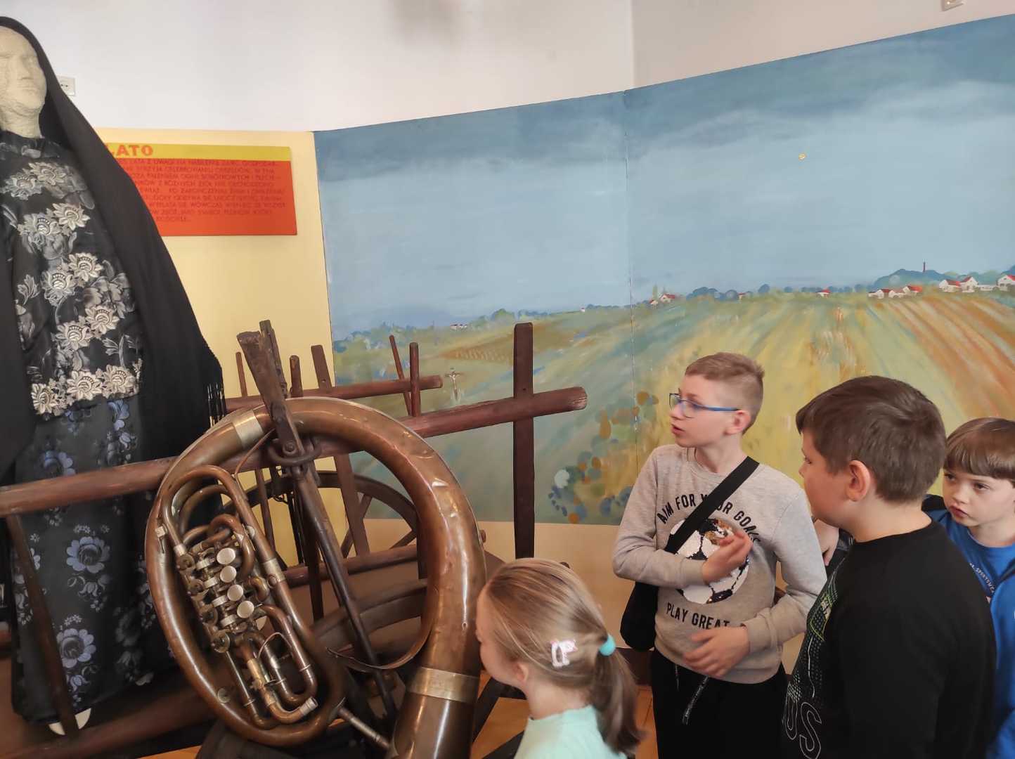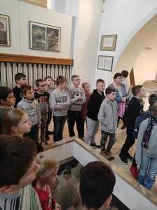 Kolejnym punktem programu było zwiedzanie muzeum, dzieci podziwiały eksponaty z różnych epok, największe zainteresowanie wzbudziła mumia egipska. W drugiej części muzeum oglądaliśmy eksponaty bardziej współczesne, np. gabinet dentystyczny, koronę dożynkową, furę, stroje śląskie, słuchaliśmy opowieści przewodnika o dawnych tradycjach i zwyczajach.