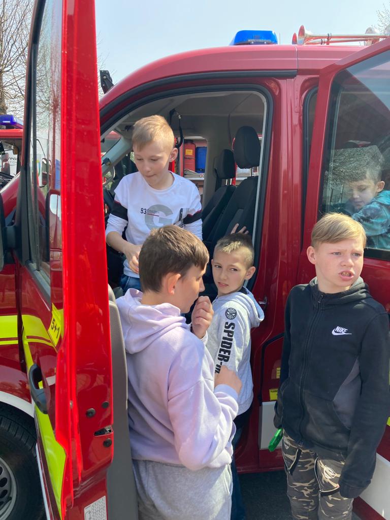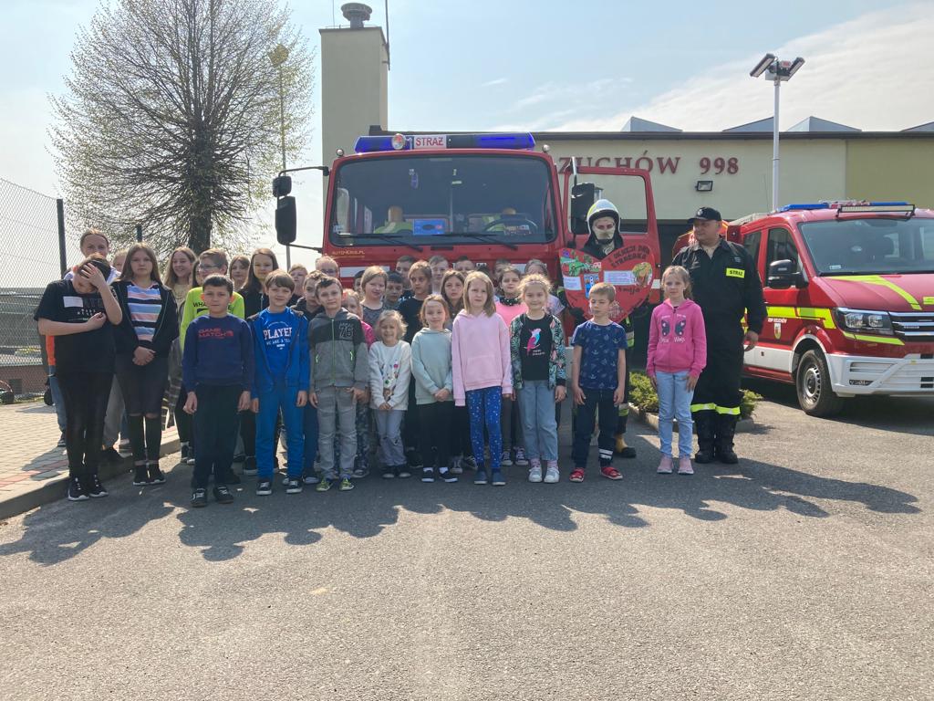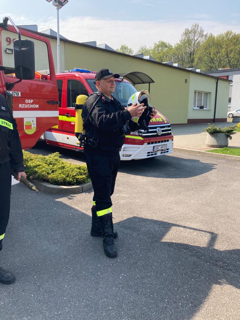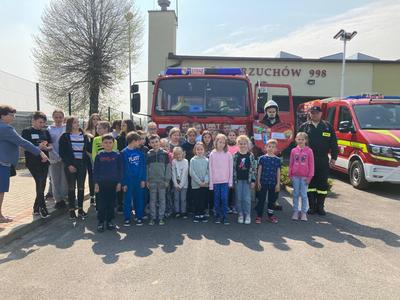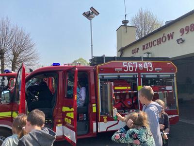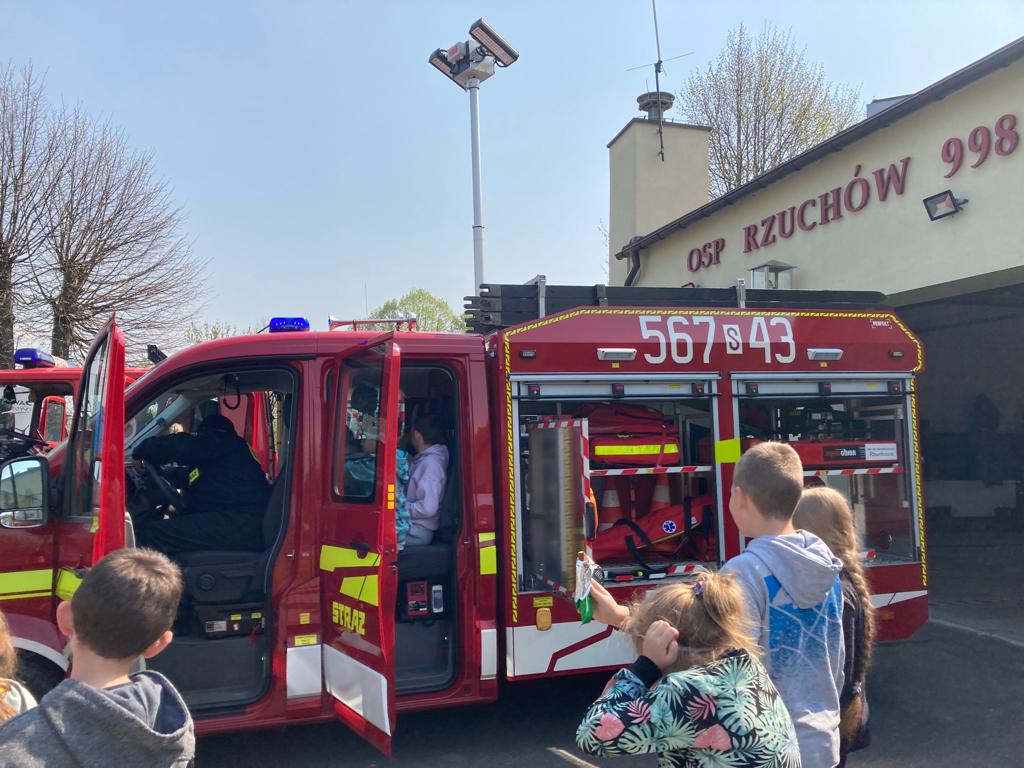 Z okazji Dnia Strażaka uczniowie naszej szkoły odwiedzili Ochotniczą Straż Pożarną w Rzuchowie, poznali historię jej działalności, zobaczyli sprzęt strażacki, medyczny i stroje do różnych akcji pożarniczych, ćwiczeniowych, do usuwania gniazd owadów błonkoskrzydłych. Wśród wszystkich sprzętów największym zainteresowaniem cieszyły się wozy strażackie.
