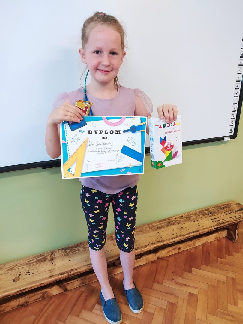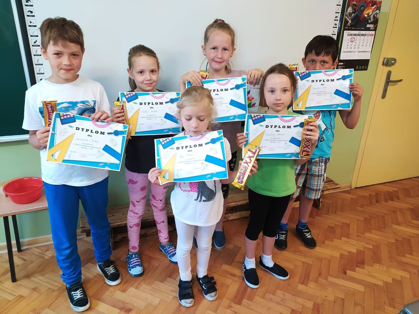 Maj to miesiąc podsumowań wiedzy i umiejętności. W tym roku szkolnym 30 maja odbył się długo wyczekiwany Szkolny Konkurs Matematyczny dla klas I - III. Wybrani uczniowie zmierzyli się z zadaniami obejmującymi szeroki zakres wiedzy matematycznej. Uczniowie dokonywali przeróżnych obliczeń, rozwiązywali złożone zadania tekstowe oraz próbowali podać odpowiedzi do poleceń wymagających logicznego myślenia. Po 45 minutach zmagań z Królową Wszystkich Nauk, czyli matematyką, wyróżniono następujących uczniów: