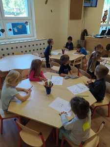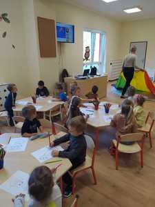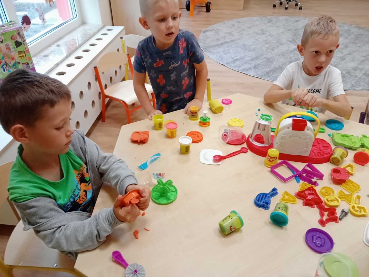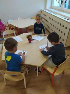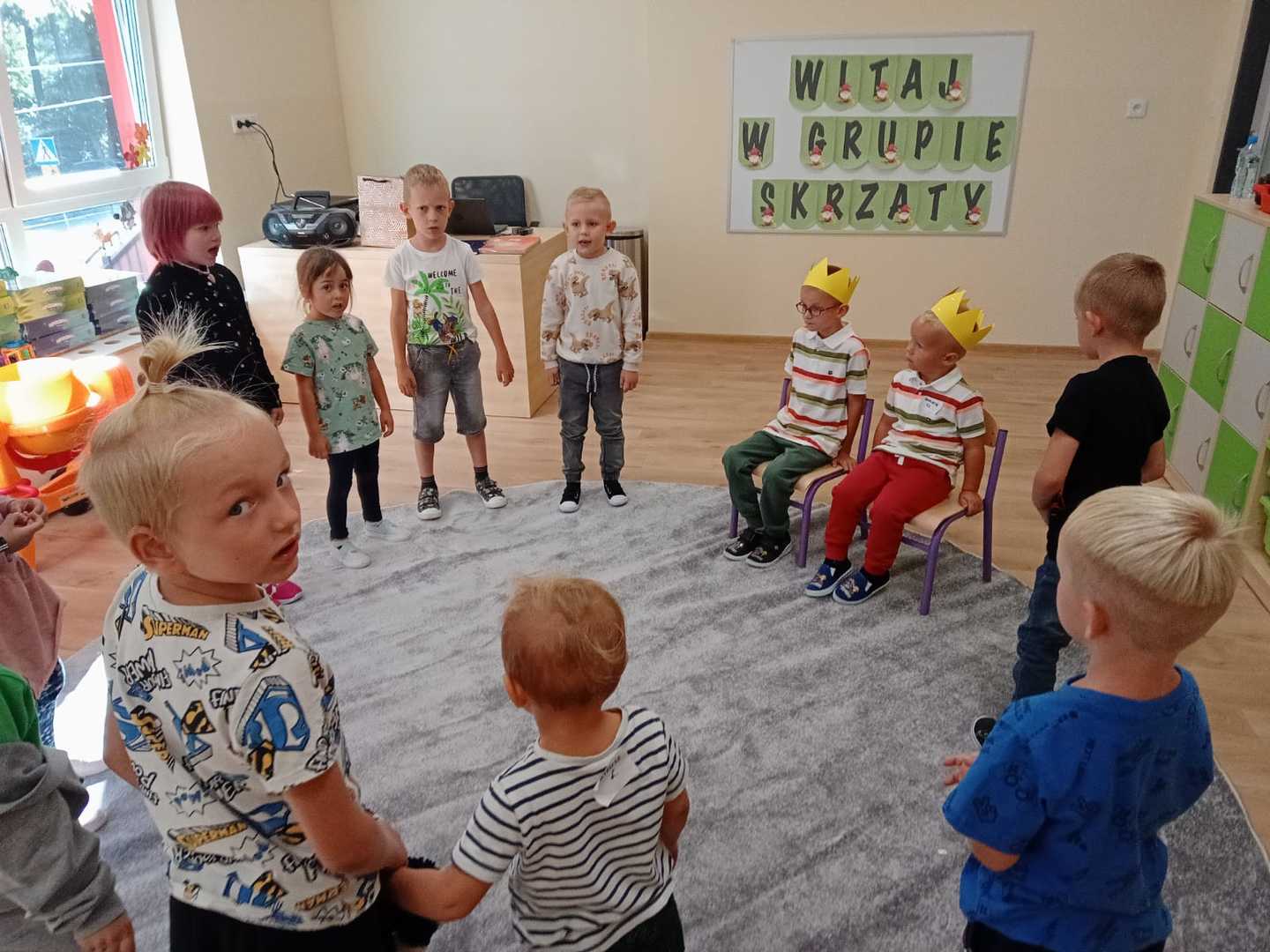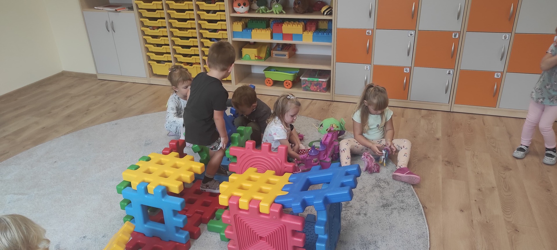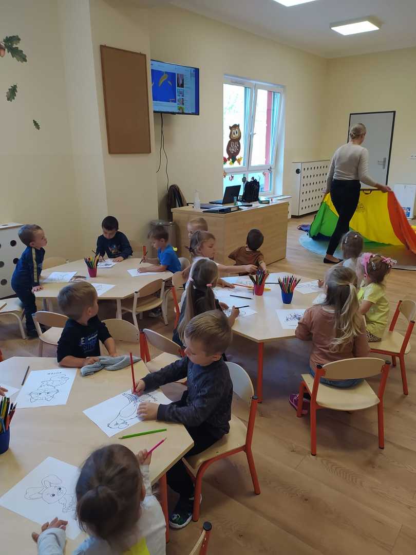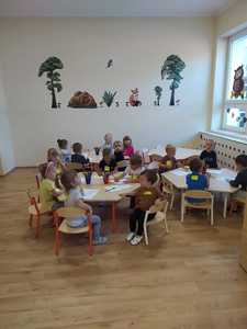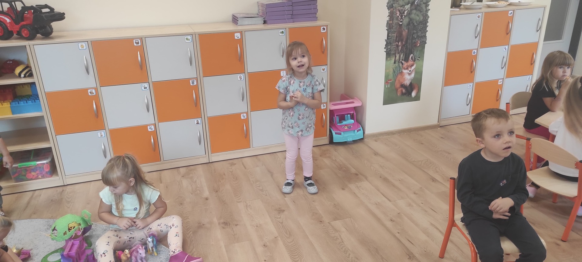 W tym roku szkolnym w naszym przedszkolu bawi się i uczy 35 dzieci. W grupie „Leśne skrzaty” są 4 dziewczynki oraz 8 chłopców. W grupie „Krasnoludki” jest 11 dziewczynek i 12 chłopców. Wszyscy powoli aklimatyzują się w nowym otoczeniu. Pierwsze dni upłynęły nam na zwiedzaniu przedszkola, poznawaniu siebie nawzajem oraz na ustalaniu zasad obowiązujących w grupie. Wiele czasu spędziliśmy także bawiąc się w różne zabawy muzyczne, tematyczne, ruchowe. Oczywiście oprócz zabaw był też czas na naukę. Liczyliśmy klocki, słuchaliśmy opowiadań, uczyliśmy się piosenek oraz wykonaliśmy pierwsze prace plastyczne. Przed nami kolejne tygodnie pełne atrakcji, wytężonej pracy oraz zabawy.