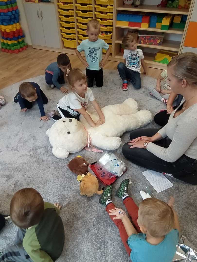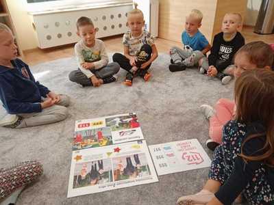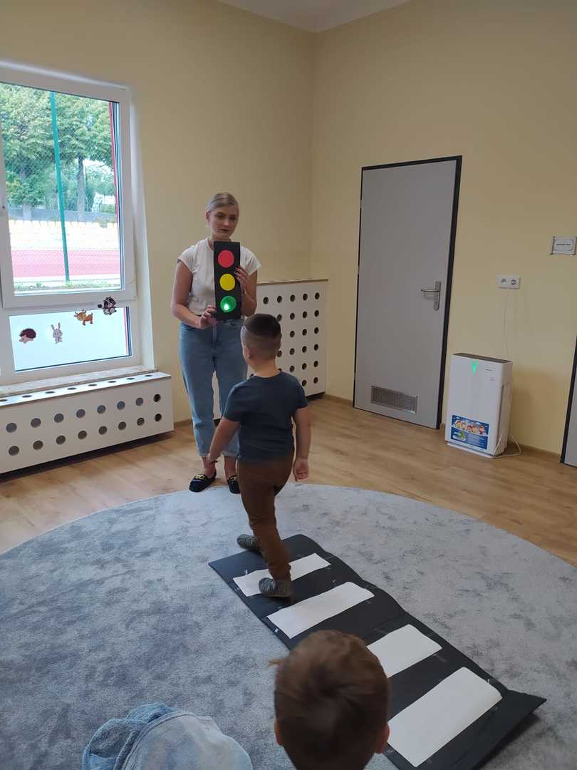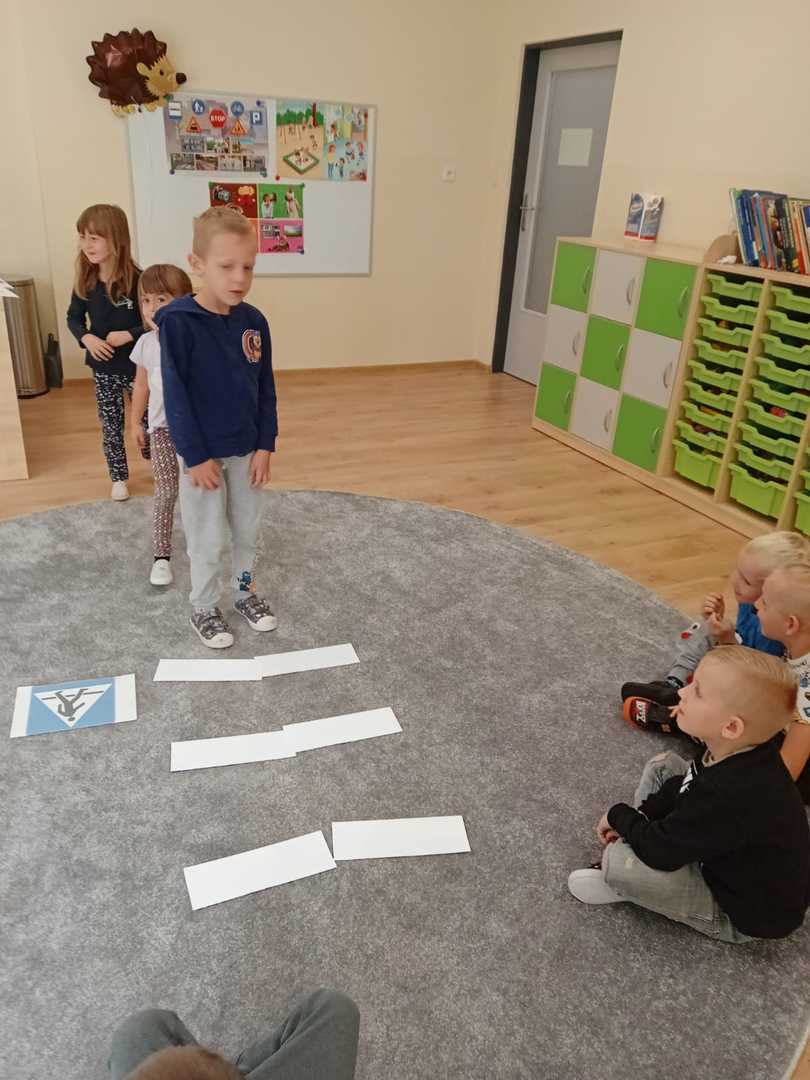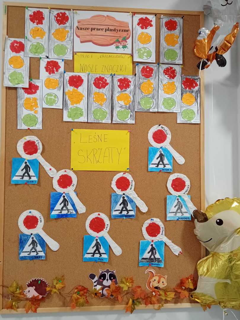 We wrześniu w naszym przedszkolu rozpoczął się cykl zajęć związanych z bezpieczeństwem na drodze. Dzieci zapoznawały się z elementarnymi zasadami ruchu drogowego. Na pobliskiej ulicy ubrane w kamizelki odblaskowe, uczyły się poprawnego przechodzenia przez jezdnię. W trakcie zajęć wykorzystywano prezentacje multimedialne i filmy edukacyjne, dzięki którym dzieci poznawały zagrożenia wynikające z niewłaściwego zachowania się na ulicy. Ponadto dzieci wykonały mnóstwo różnorodnych prac plastycznych związanych z ruchem drogowym. Przedszkolaki poznały także numery alarmowe oraz w formie zabawy ćwiczyły jak w przypadku zagrożenia ludzkiego życia udzielić komuś pomocy.