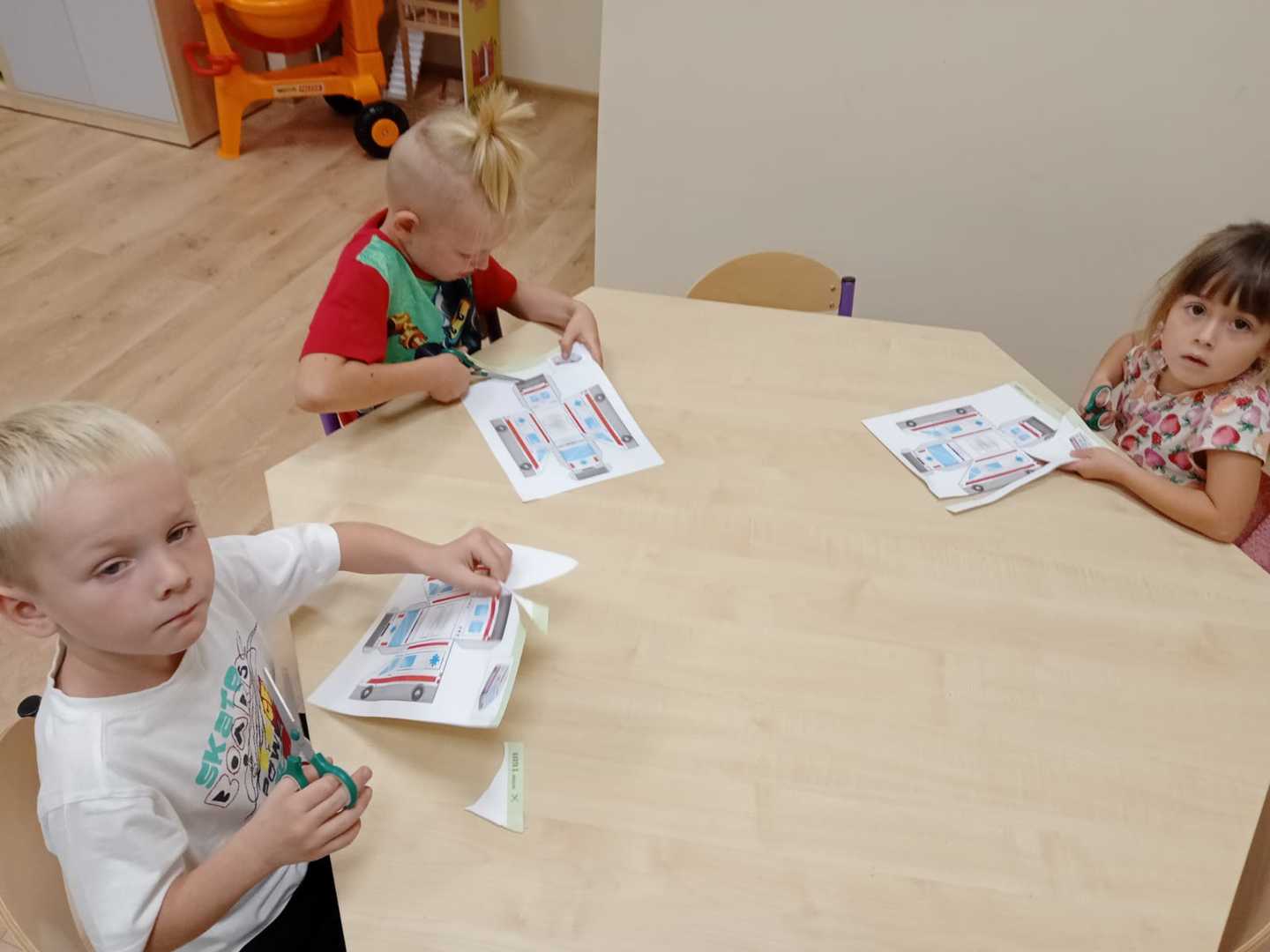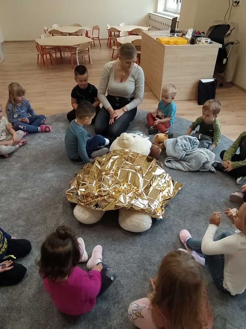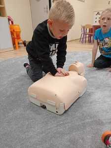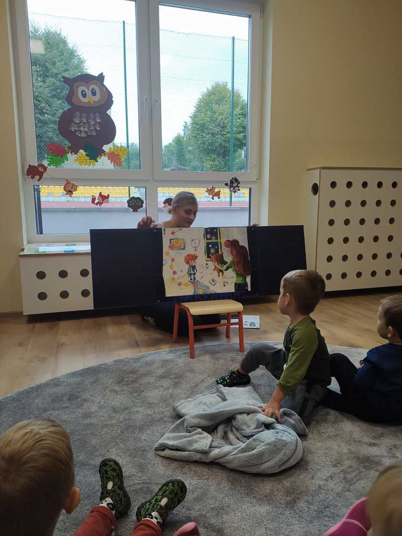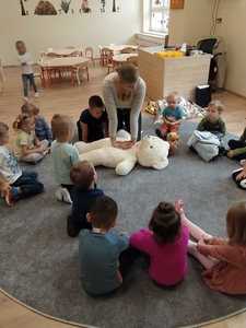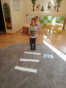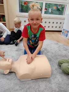 We wrześniu w naszym przedszkolu rozpoczął się cykl zajęć związanych z bezpieczeństwem na drodze. Dzieci zapoznawały się z elementarnymi zasadami ruchu drogowego. Na pobliskiej ulicy ubrane w kamizelki odblaskowe, uczyły się poprawnego przechodzenia przez jezdnię. W trakcie zajęć wykorzystywano prezentacje multimedialne i filmy edukacyjne, dzięki którym dzieci poznawały zagrożenia wynikające z niewłaściwego zachowania się na ulicy. Ponadto dzieci wykonały mnóstwo różnorodnych prac plastycznych związanych z ruchem drogowym. Przedszkolaki poznały także numery alarmowe oraz w formie zabawy ćwiczyły jak w przypadku zagrożenia ludzkiego życia udzielić komuś pomocy.