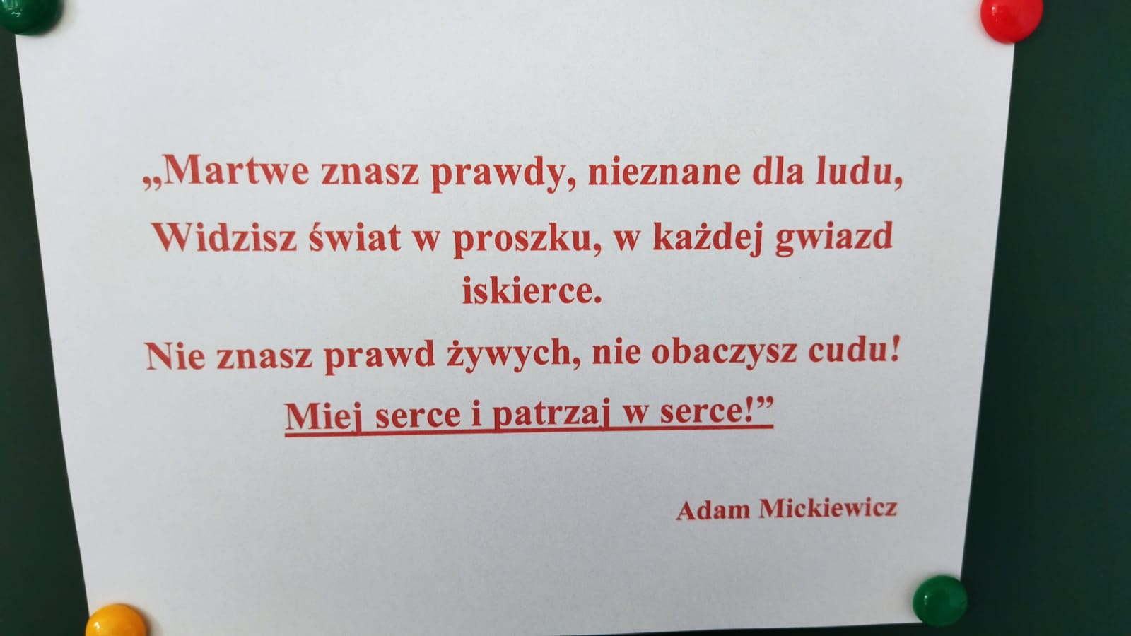 Prezentowanie najpiękniejszych utworów polskich pisarzy jest dla społeczności szkolnej nie tylko nauką, ale wspólnym świętowaniem z dobrą książką w ręku w Roku Romantyzmu Polskiego. Dziękujemy uczniom za udział w akcji i serdeczną atmosferę.