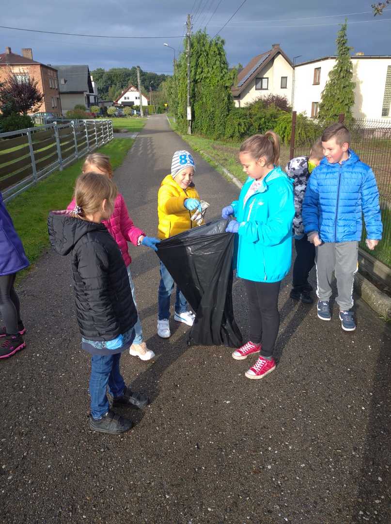 Każda klasa miała wytyczony inny teren, klasa I zbierała śmieci wokół szkoły, klasa II wybrała się w pobliże Gminnego Domu Kultury i parku, klasa III ze swoją wychowawczynią poszła na ulicę Boczną, klasa IV na ul. K. Miarki, klasa V na Rybnicką do skrzyżowania z Pszowską, a VI na nową drogę koło parku, do ul. Krzyżkowickiej.