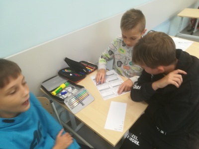Na uczniów klasy III i V czekały wyzwania językowe w formie quizu oraz łamańce językowe. Piątoklasiści świetnie poradzili sobie z każdym, szczególnie przypadł im do gustu angielski: "How much wood would a woodchuck chuck?"