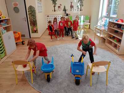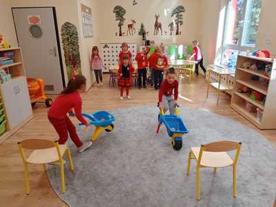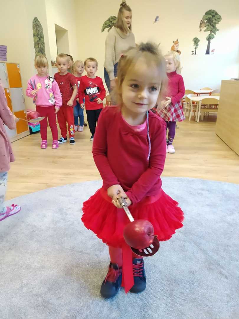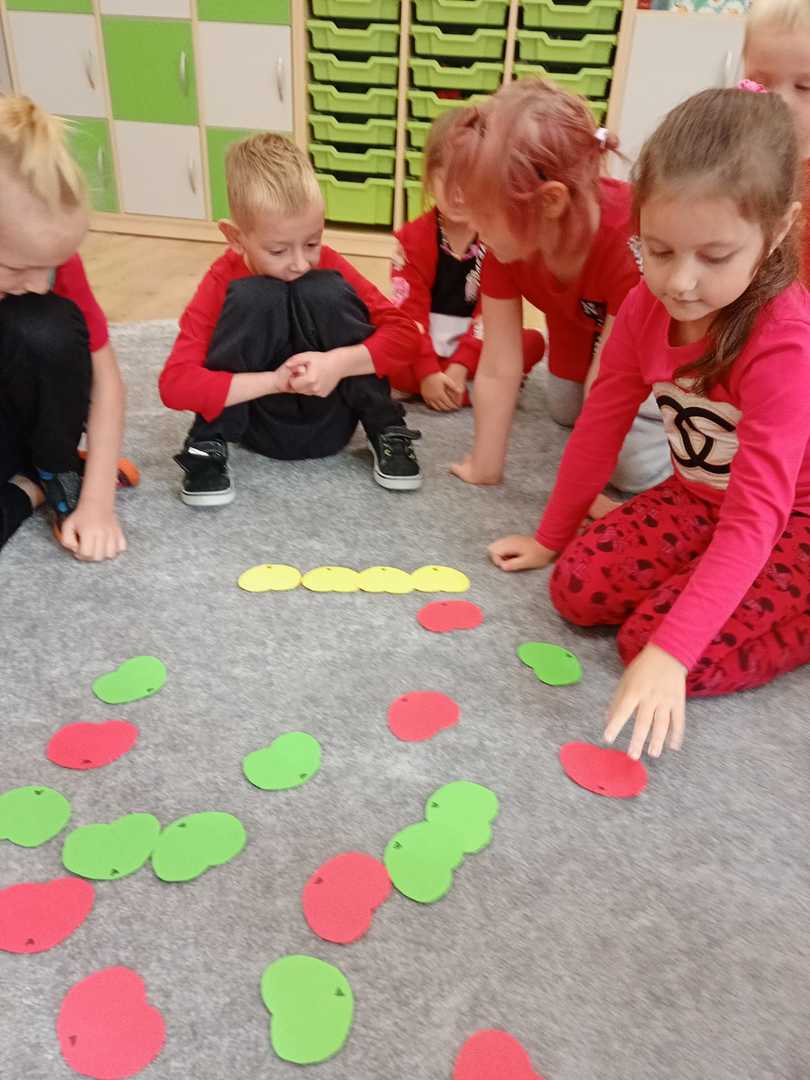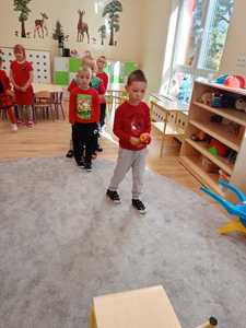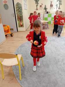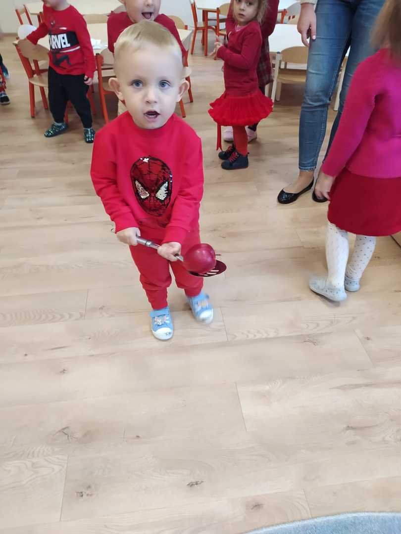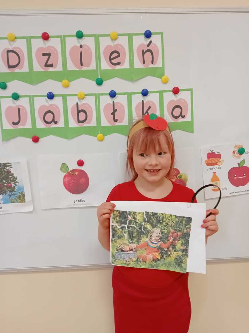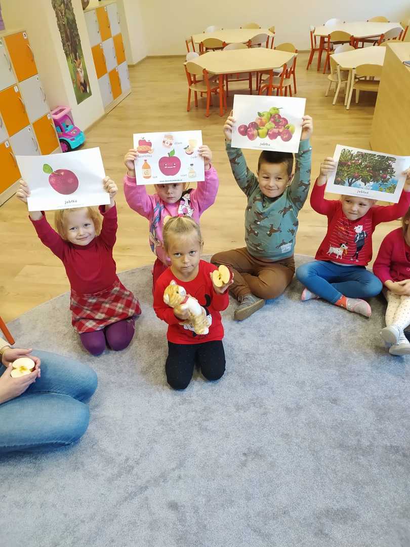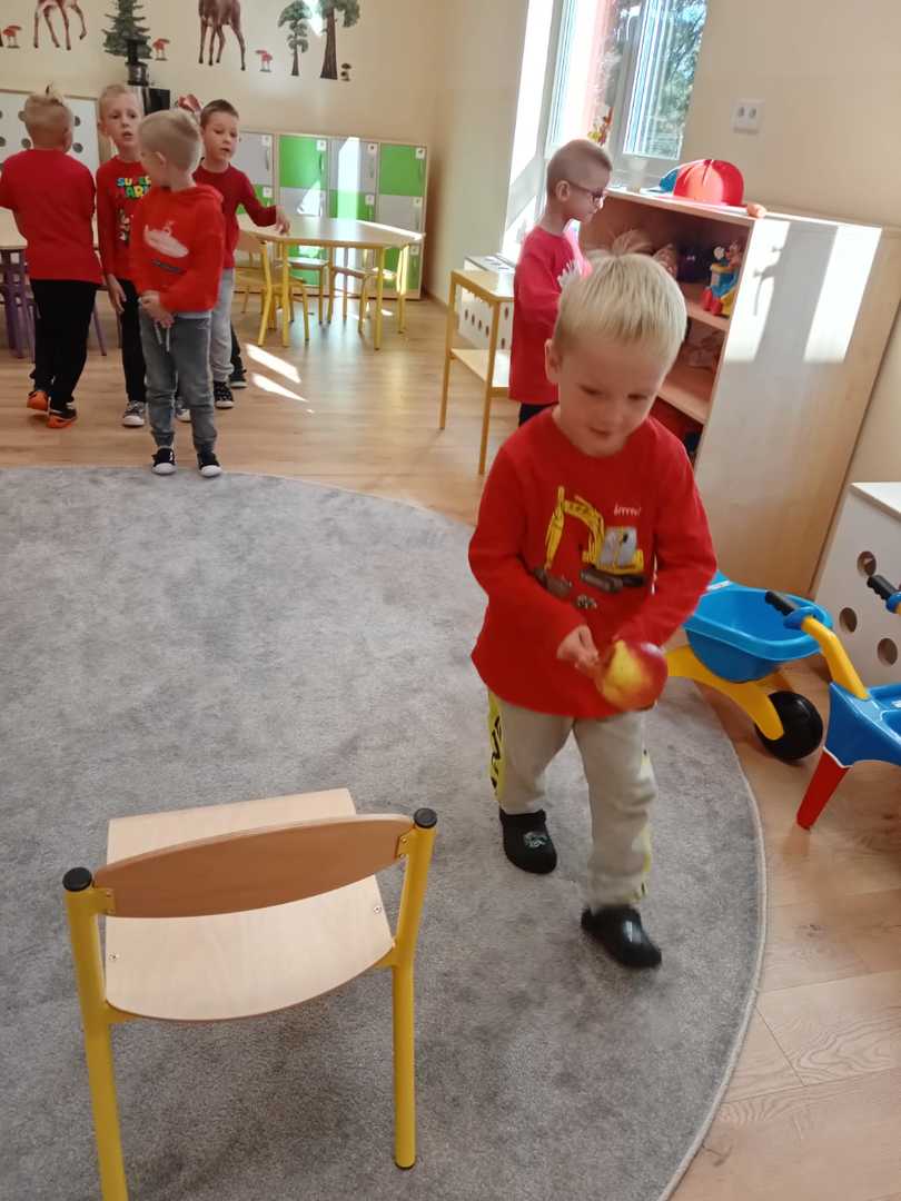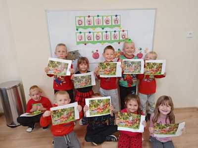 28.09.2022 zorganizowaliśmy w naszym przedszkolu „Dzień Jabłka”. Był to wyjątkowy dzień, trochę inny niż zwykle. Dzieci poznawały jabłka i ich odmiany. Nie obyło się, bez kształtowania pojęć matematycznych z wykorzystaniem naturalnych okazów jabłuszek. Maluchy chętnie rozpoznawały i określały kształt, zapach, kolor, smak. Ponadto, wzbogacały swoją wiedzę z zakresu walorów zdrowotnych, tych smacznych owoców, a także poznały możliwości przetwarzania jabłek – przeciery, kompoty, konfitury, musy itp. Istotą tematyki, było także zwrócenie uwagi na spożywanie jabłek po uprzednim ich umyciu, a nawet obraniu ze skórki. Wszystkie zabawy tego dnia dominowały pod znakiem jabłka – były piosenki, tańce, a także zagadki i działania matematyczne. Dzieci świetnie poradziły sobie z przeliczaniem i porównywaniem jabłek. Wiele emocji dostarczyły dzieciom konkurencje zręcznościowe i ćwiczenia ruchowe. Podsumowanie dnia było wyjątkowe – smakowanie samodzielnie zrobionego soku jabłkowego.