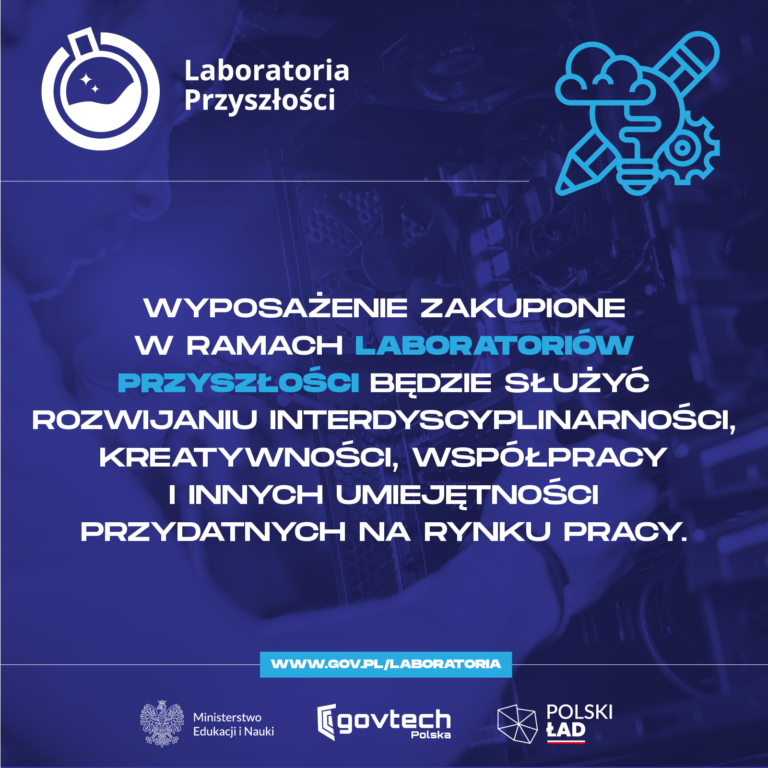 Kreatywne myślenie oraz obsługa narzędzi to jedne z podstawowych umiejętności decydujących o rozwoju cywilizacyjnym, gospodarczym i społecznym. Wzrost innowacyjności oraz rozwój technologiczny spowodował, że umiejętności matematyczne, w zakresie nauk przyrodniczych, technologii i inżynierii są dziś ważniejsze niż kiedykolwiek wcześniej. Laboratoria Przyszłości to kolejny krok w stronę wzmocnienia i uatrakcyjnienia dotychczasowego procesu zdobywania wiedzy i praktycznych umiejętności w tych obszarach przez uczniów.