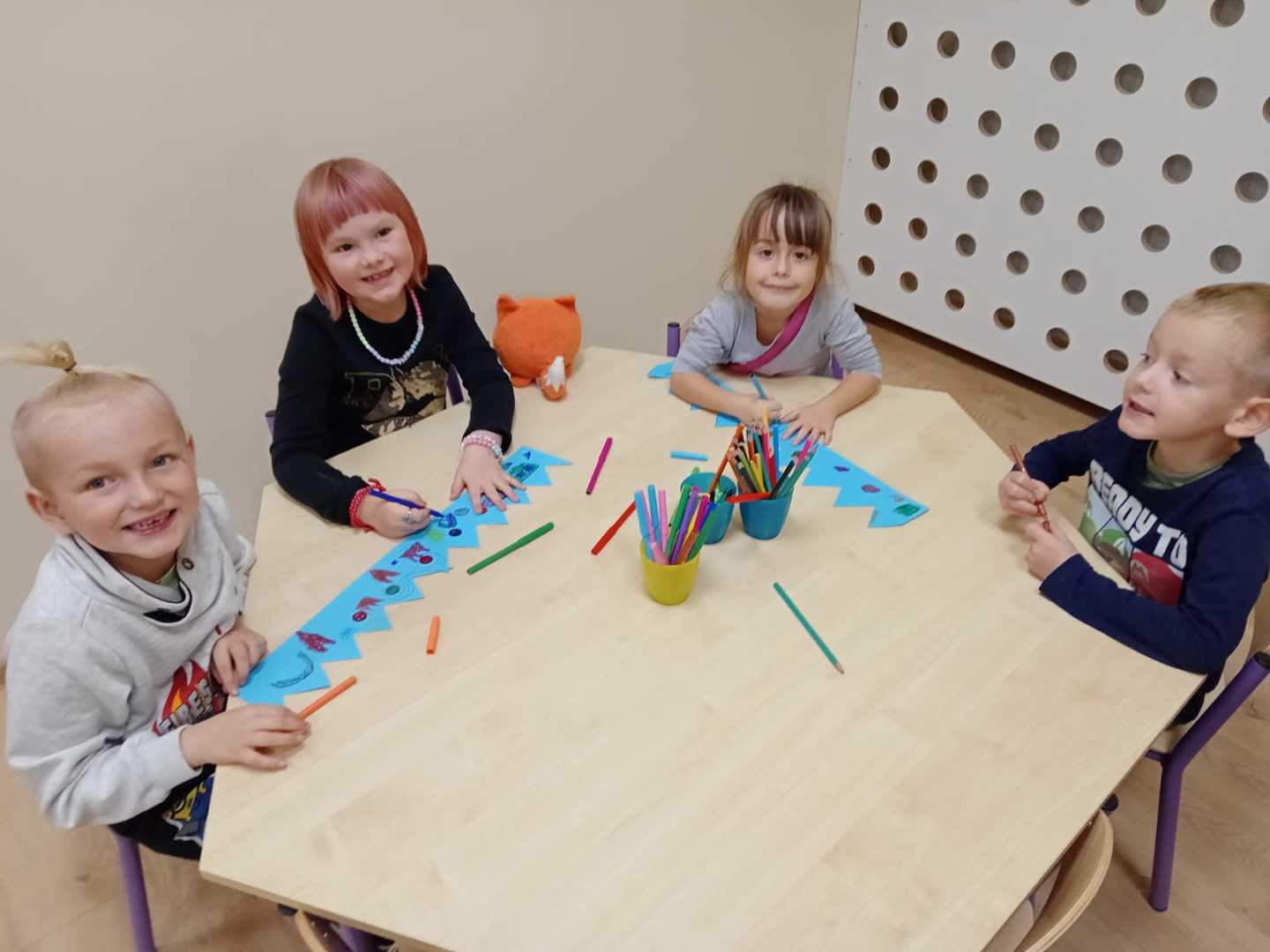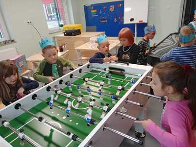 30 września w naszym przedszkolu odbyła się uroczystość z okazji Dnia Chłopca. Tego dnia dziewczynki stanęły na wysokości zadania i wspólnie z nauczycielkami przygotowały wiele niespodzianek dla swoich kolegów. Były więc życzenia, laurki, prezenty oraz tańce. Wszyscy świetnie bawili się przy przebojach znanych i lubianych jak "Kaczuszki" czy "Woogie Boogie". Dużo emocji i radości sprawiły wszystkim gry: „Cymbergaj”, „Piłka nożna”, „Twister”. Grupa „Leśne skrzaty” rozegrała mecz piłki nożnej na sali gimnastycznej, zaś grupa „Krasnoludki” brała udział w wielu ciekawych zabawach integracyjnych. Nie zabrakło także słodkiego poczęstunku dla wszystkich dzieci. To był wyjątkowy i pełen wrażeń dzień, a uśmiech przez cały czas gościł na twarzach przedszkolaków. Na koniec pragniemy jeszcze wszystkim chłopcom – mniejszym i większym – życzyć wszystkiego najlepszego.