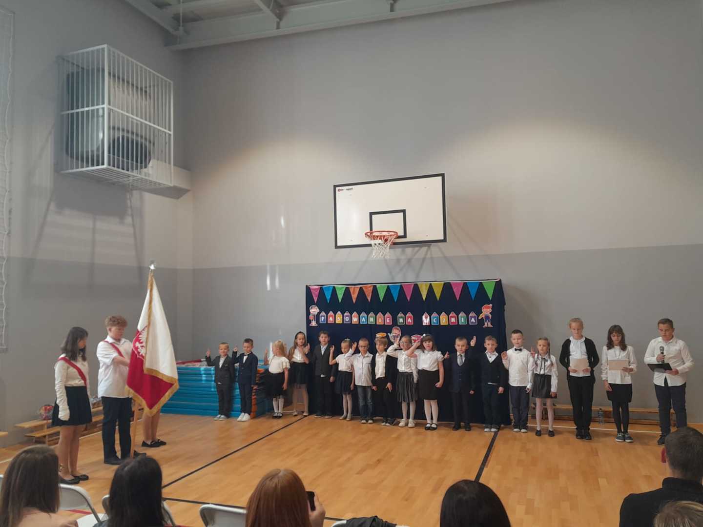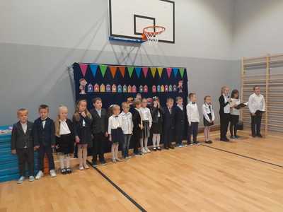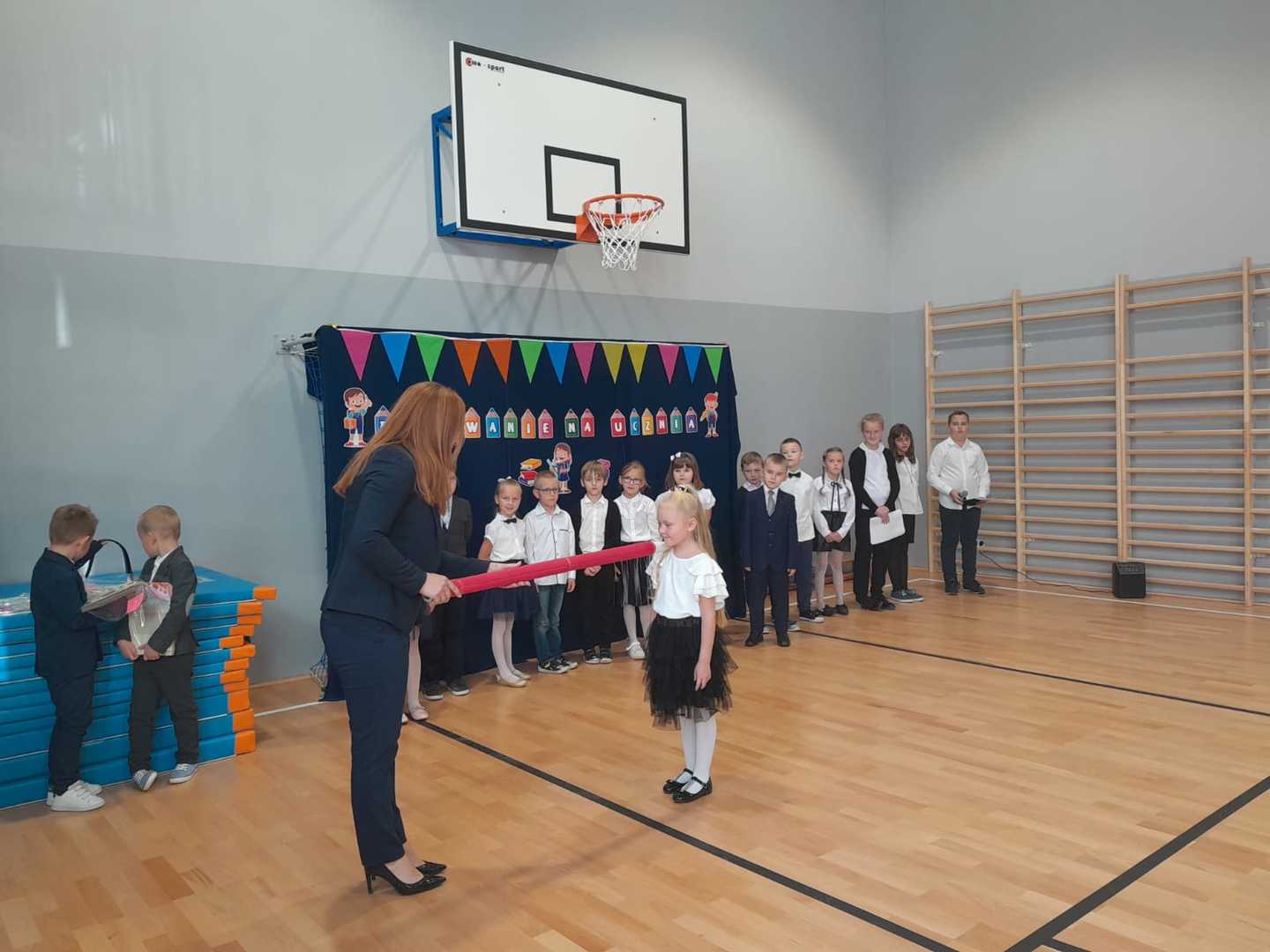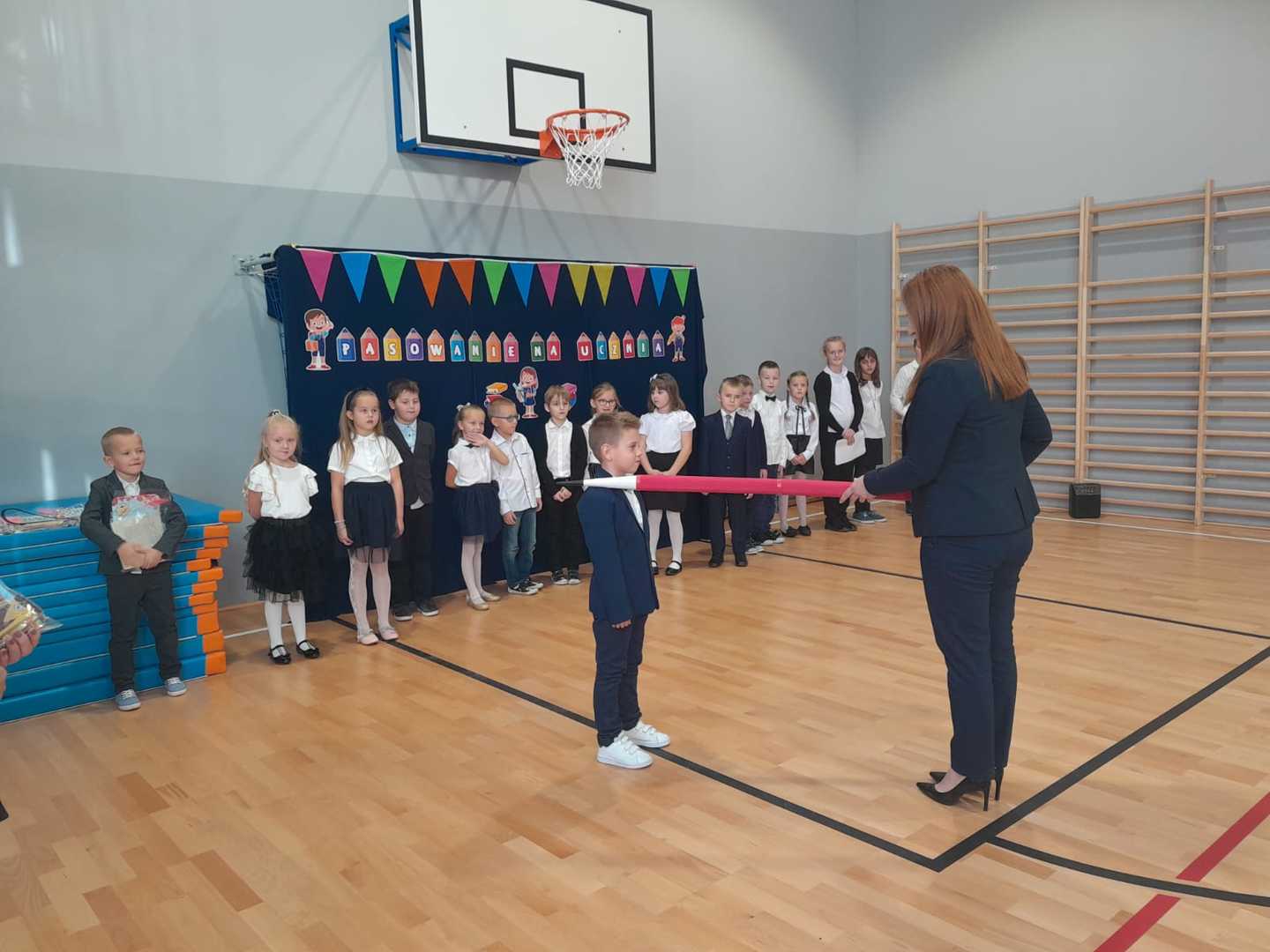 14 października br. w naszej szkole odbyło się uroczyste ślubowanie i pasowanie na uczniów dzieci klasy pierwszej. W uroczystości wzięli udział rodzice, dyrekcja szkoły, uczniowie i przedstawiciele RP. Po przywitaniu wszystkich przez Panią Dyrektor i uczniów starszych klas, nastąpiła część artystyczna. Odświętnie i galowo ubrane dzieci przedstawiły program, w którym zaprezentowały swoje umiejętności wokalno - recytatorskie. Dalej miał miejsce najważniejszy punkt programu. Po odśpiewaniu hymnu, w podniosłej atmosferze, przed pocztem sztandarowym dzieci klasy I złożyły uroczyste ślubowanie. Następnie Pani Dyrektor kolorowym ołówkiem dokonała symbolicznego aktu pasowania na ucznia, a wychowawczyni wręczyła dzieciom dyplomy i pamiątkowe gadżety. Tym samym uczniowie zostali włączeni w grono społeczności szkolnej. Finałowym punktem uroczystości były pamiątkowe zdjęcia, dzięki którym wspomnienia tego dnia pozostaną dłużej w pamięci. Wszystkim pierwszoklasistom życzymy wiele radości i satysfakcji, sukcesów w nauce, ciekawych pomysłów i szczęśliwych chwil.