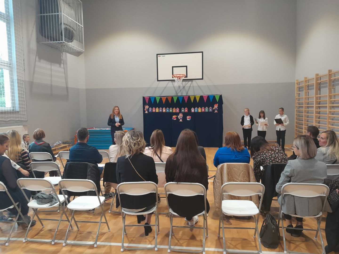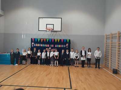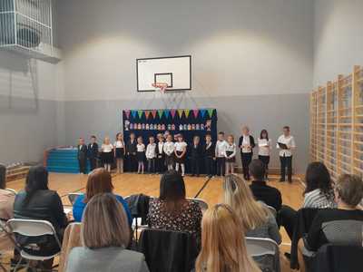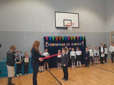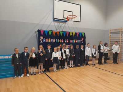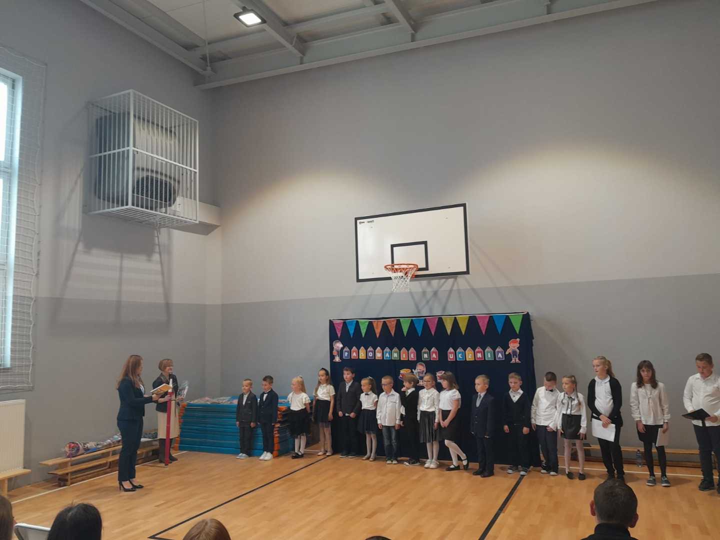14 października br. w naszej szkole odbyło się uroczyste ślubowanie i pasowanie na uczniów dzieci klasy pierwszej. W uroczystości wzięli udział rodzice, dyrekcja szkoły, uczniowie i przedstawiciele RP. Po przywitaniu wszystkich przez Panią Dyrektor i uczniów starszych klas, nastąpiła część artystyczna. Odświętnie i galowo ubrane dzieci przedstawiły program, w którym zaprezentowały swoje umiejętności wokalno - recytatorskie. Dalej miał miejsce najważniejszy punkt programu. Po odśpiewaniu hymnu, w podniosłej atmosferze, przed pocztem sztandarowym dzieci klasy I złożyły uroczyste ślubowanie. Następnie Pani Dyrektor kolorowym ołówkiem dokonała symbolicznego aktu pasowania na ucznia, a wychowawczyni wręczyła dzieciom dyplomy i pamiątkowe gadżety. Tym samym uczniowie zostali włączeni w grono społeczności szkolnej. Finałowym punktem uroczystości były pamiątkowe zdjęcia, dzięki którym wspomnienia tego dnia pozostaną dłużej w pamięci. Wszystkim pierwszoklasistom życzymy wiele radości i satysfakcji, sukcesów w nauce, ciekawych pomysłów i szczęśliwych chwil.