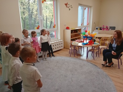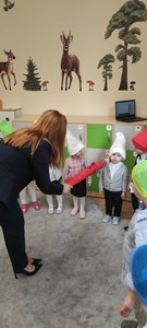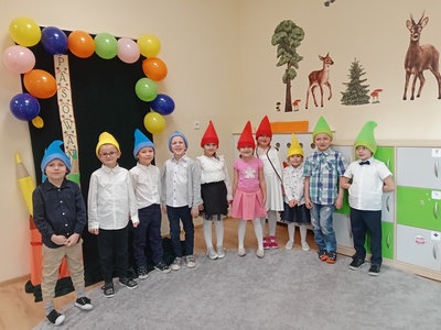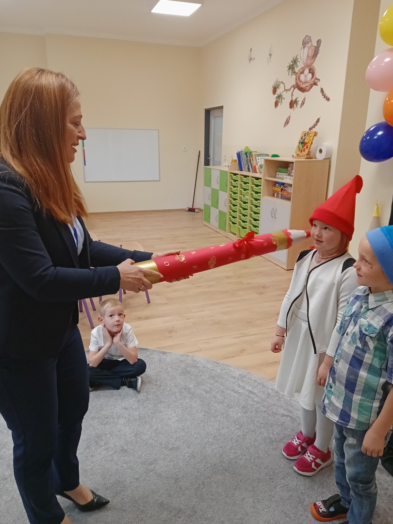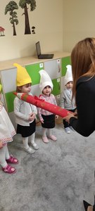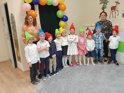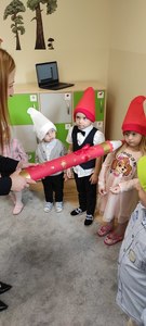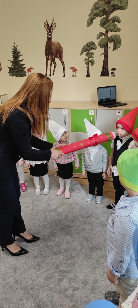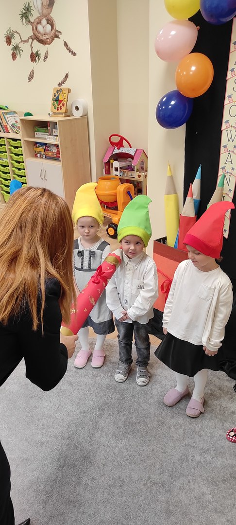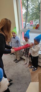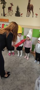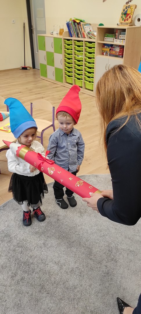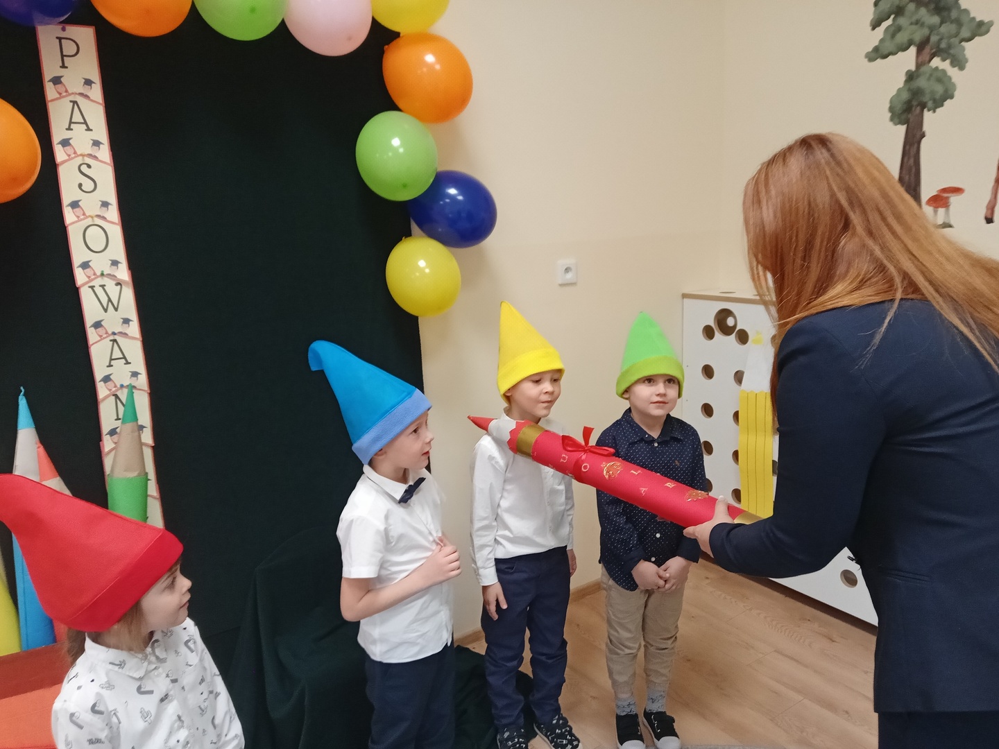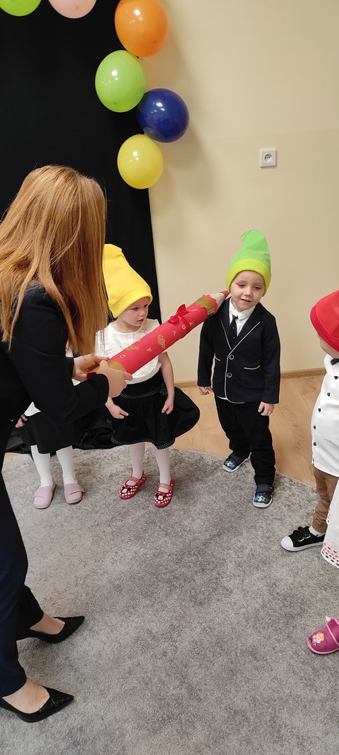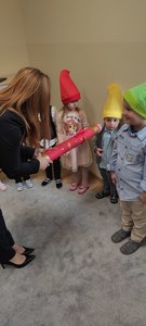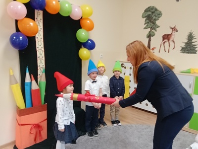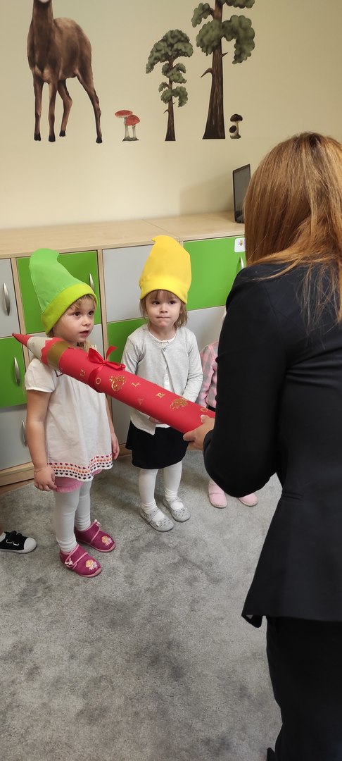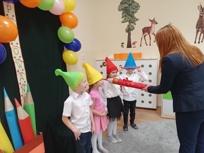 Dzień 14 października pozostanie na długo w pamięci naszych przedszkolaków. Tego właśnie dnia odbyła się pierwsza ważna przedszkolna uroczystość – pasowanie na ,,Krasnoludka” oraz ,,Leśnego Skrzata”. Uroczystość rozpoczęła się od przedstawienia krótkiej części artystycznej, w której dzieci zaprezentowały swoje umiejętności – dając tym samym dowód, jak dużo już potrafią. Były więc piosenki, wierszyk i taniec. Po części artystycznej, dzieci obiecały: zgodnie bawić się w przedszkolu, przychodzić każdego dnia z uśmiechem, słuchać pani i pomagać kolegom, być dzielnym przedszkolakiem. Następnie pani dyrektor dokonała uroczystego pasowania każdego dziecka na ,,Krasnoludka” oraz ,,Leśnego Skrzata”. Na pamiątkę tego ważnego wydarzenia każdy przedszkolak otrzymał słodki upominek – róg obfitości.