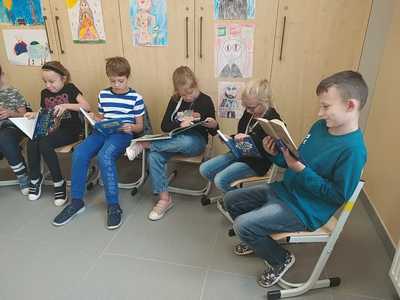 Cieszymy się, że uczniowie z wielkim zaangażowaniem biorą udział w imprezach czytelniczych, że chętnie sięgają po książki. Gratulujemy wszystkim biorącym udział we wspólnym biciu rekordu w czytaniu na przerwie.