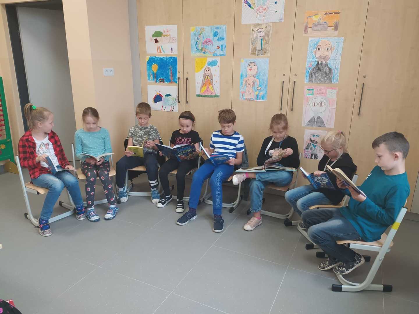 Na terenie naszej szkoły w akcji wzięło udział łącznie 63 uczniów klas I – III oraz 12 przedszkolaków. Uczniowie przynieśli swoje ulubione książki lub lektury, które aktualnie czytają. Wielu spośród biorących udział we wspólnym czytaniu skorzystało ze zbiorów szkolnej biblioteki. Czytano, bajki, powieści, opowiadania, legendy, baśnie, a także artykuły z czasopism dla dzieci i młodzieży. Najmłodszym dzieciom teksty dla nich przeznaczone czytali przedstawiciele samorządu uczniowskiego lub nauczyciele. Utworzono strefy czytania, w których w wygodny sposób usiedli uczniowie, by zagłębić się w lekturze wybranej książki.