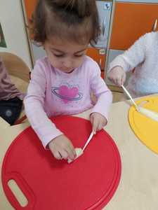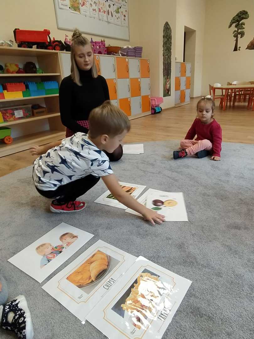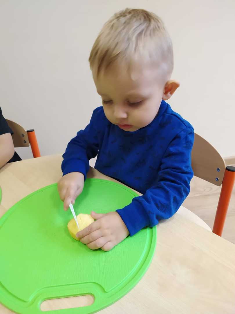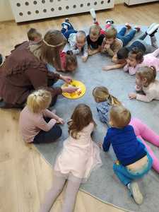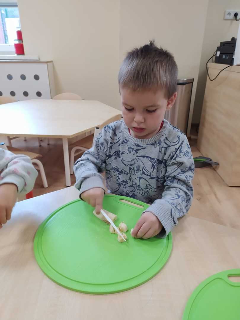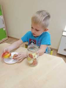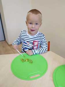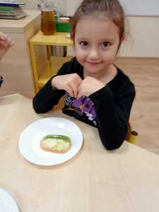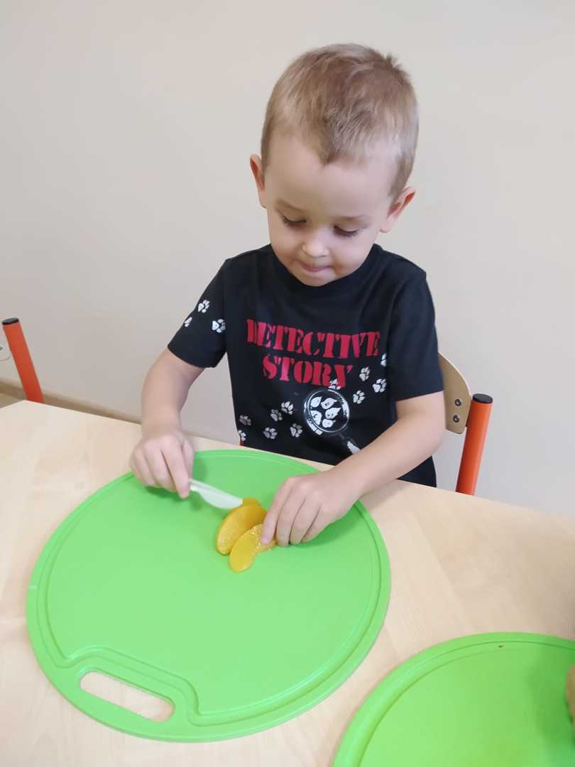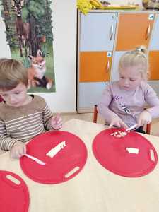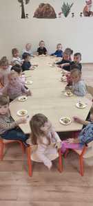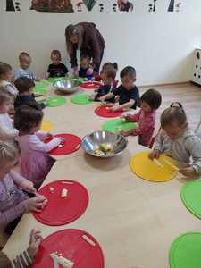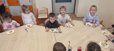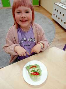 Edukacja prozdrowotna to ważny element pracy z dziećmi w przedszkolu. Wszyscy dobrze wiemy, ile pozytywów dla właściwego rozwoju dzieci niesie zdrowe odżywianie. W naszym przedszkolu dzieci z okazji Światowego Dnia Warzyw i Owoców miały okazje poszerzyć swoją wiedzę na temat właściwej diety oraz przekonać się jak pyszne i pachnące mogą być surowe warzywa i owoce. Z wielkim apetytem dzieci degustowały przygotowane przez siebie owocowe desery, zdrowe pyszne kanapki oraz kompoty. Była to prawdziwa bomba witaminowa, którą dzieci zjadły ze smakiem. ,,Leśne Skrzaty" uważnie wpatrywały się w piramidę zdrowego odżywiania a następnie sami próbowali ją odtworzyć. Rozpoznawaliśmy też owoce i warzywa po kształtach i smakach – bawiliśmy się przy tym znakomicie i …smakowicie!