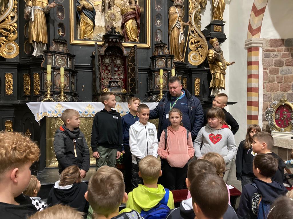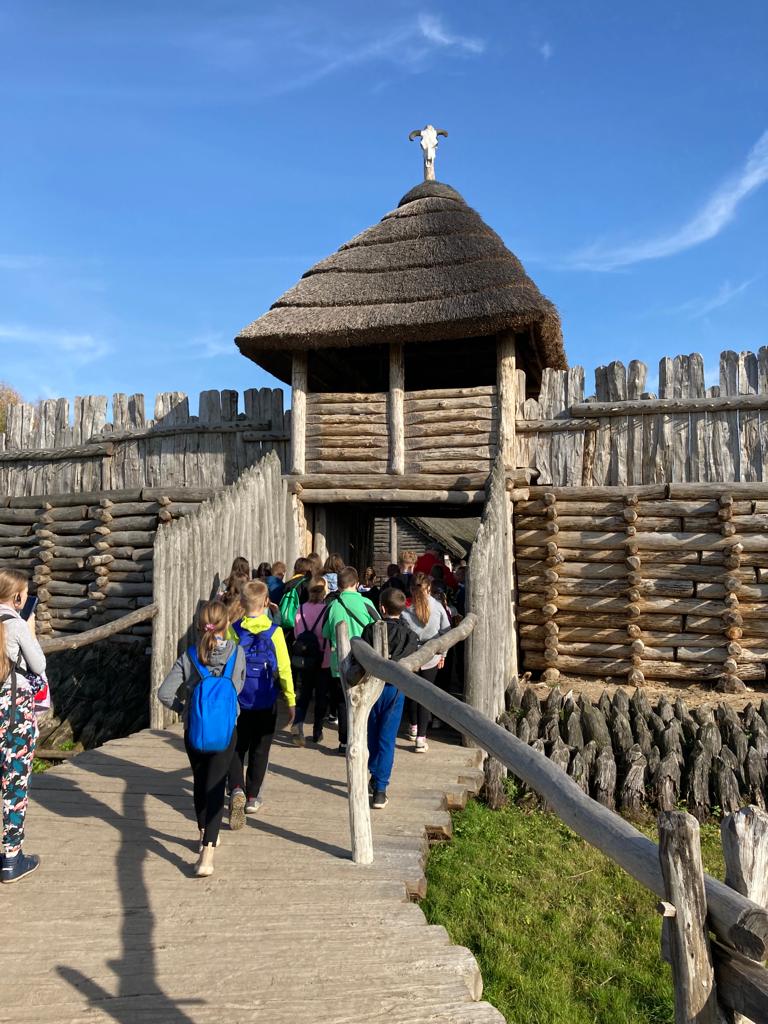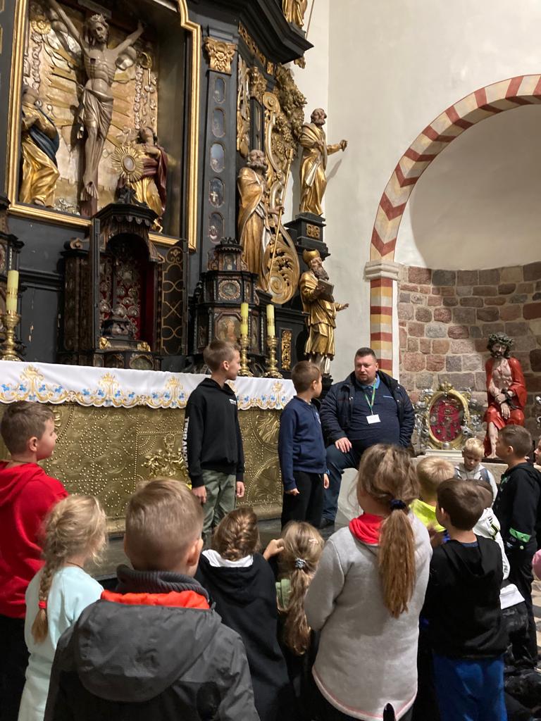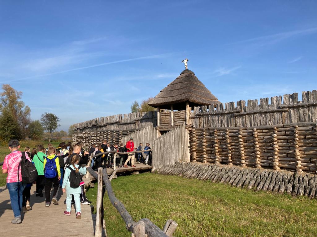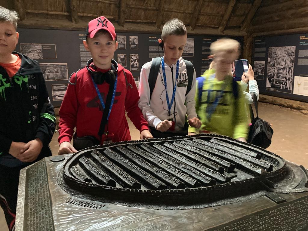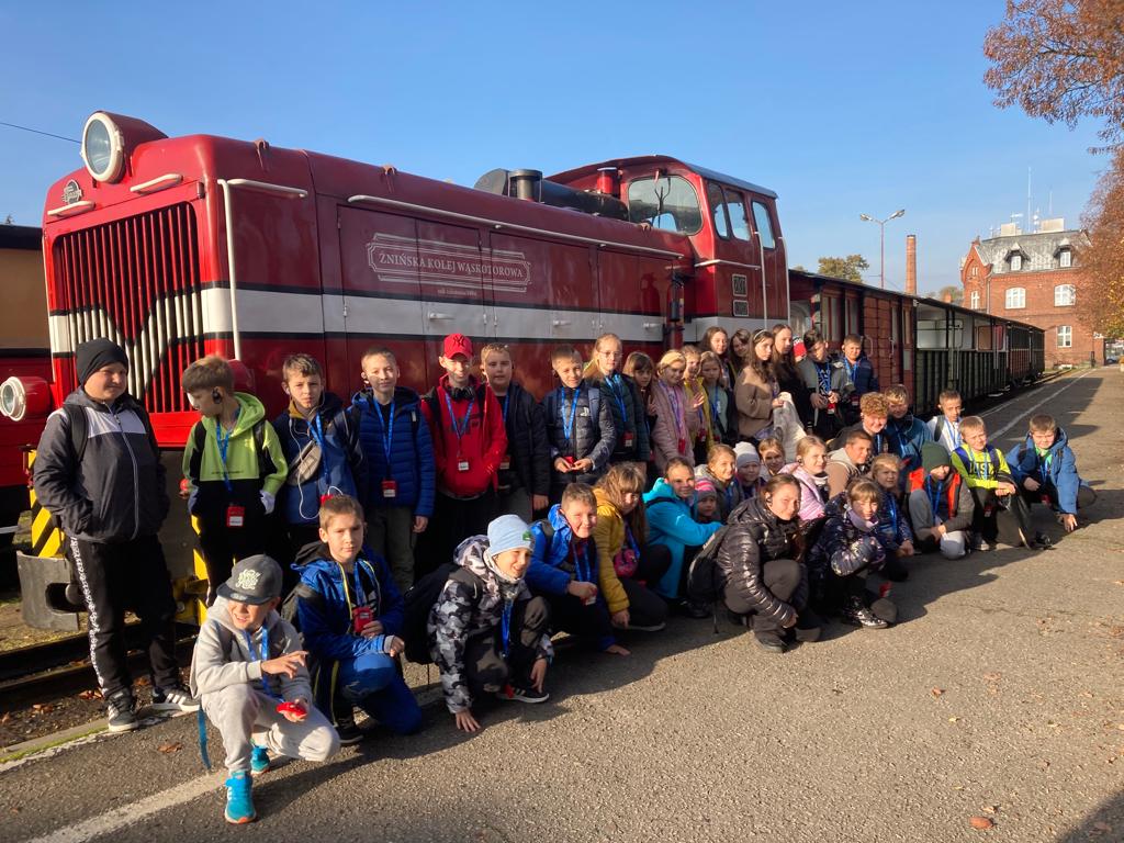 Dzisiejszego dnia po obfitym śniadaniu nasi uczniowie przekroczyli granice województwa wielkopolskiego i udali się autokarem śladami techniki do Żnina, a stamtąd kolejką wąskotorową do Wenecji, by zwiedzić gotycki zamek oraz skansen parowozów i pojazdów szynowych. Kolejnym punktem wycieczki było Muzeum Archeologiczne w Biskupinie, gdzie uczniowie mogli zobaczyć rekonstruktorów, którzy pokazują jak żyli nasi przodkowie, między innymi zobaczyli pracę mincerza, kuśnierza, tkacza oraz twórcę instrumentów drewnianych. Kolejnym ciekawym obiektem na naszej mapie zwiedzania był kościół Świętej Trójcy i Najświętszej Marii Panny w Strzelnie z unikatowymi kolumnami na których przedstawiono cnoty i występki ludzkie oraz relikwiarzowy ołtarz Krzyża Świętego z gotycką figurą Chrystusa ukrzyżowanego. Po kolacji nasi uczniowie wybrali się na wieczorny spacer po Gnieźnie trasą gnieźnieńskich królików. Udało im się znaleźć królika żużlowca, powstańca wielkopolskiego, degustatora, woja piastowskiego i kilka pomników królów polskich.