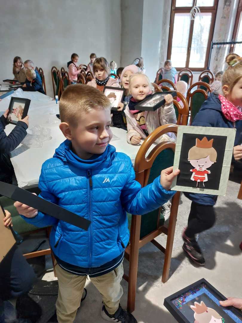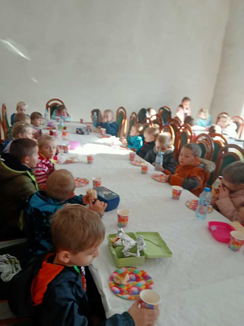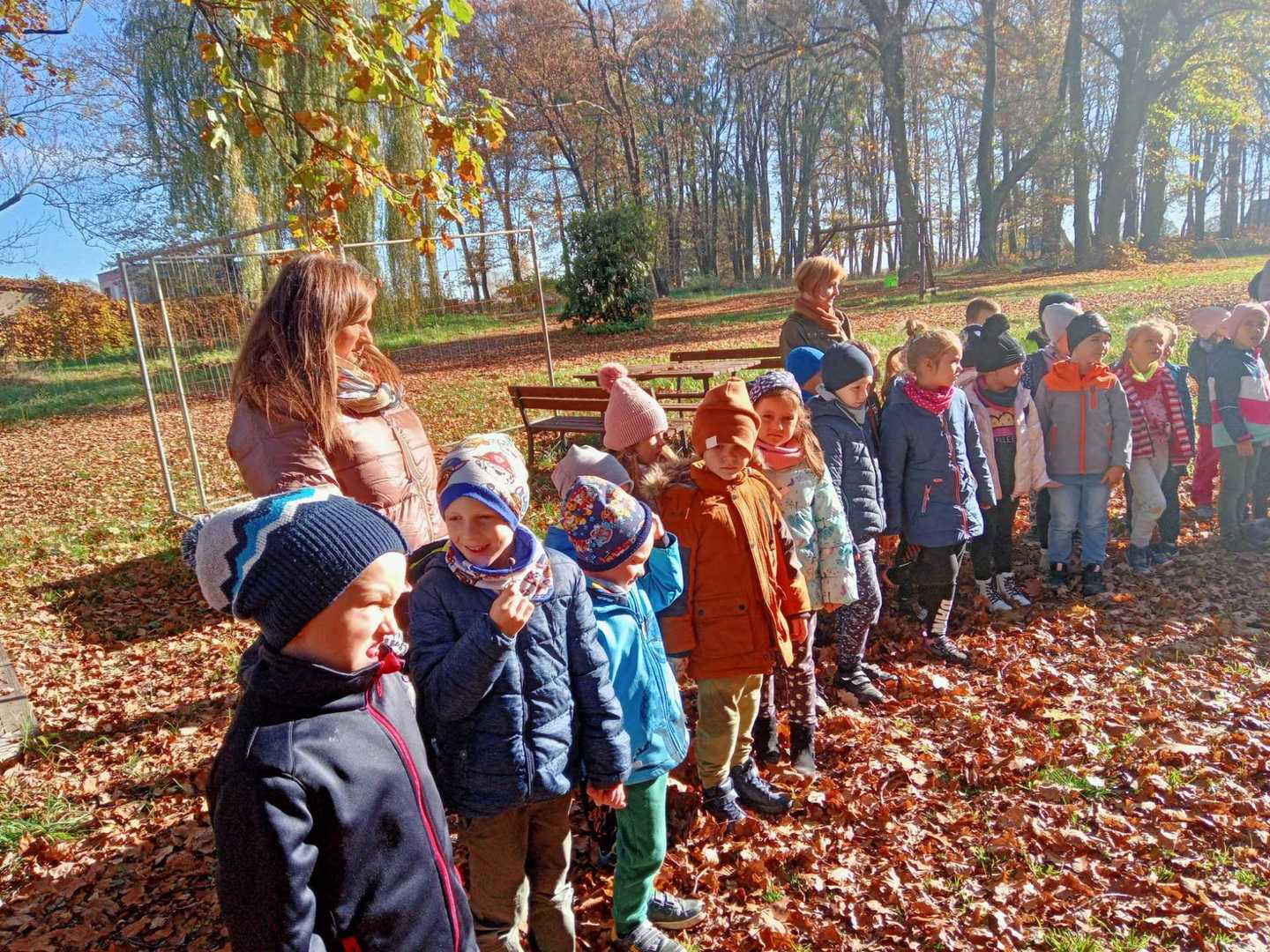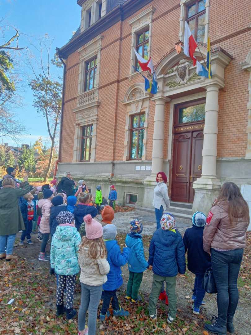 W czwartek 3 listopada w ramach projektu polsko- czeskiego współfinansowanego z Europejskiego Funduszu Rozwoju Regionalnego oraz budżetu państwa RP „Przekraczamy granice” odbyło się IV działanie pt.; „W pałacu u króla i królowej”. Naszą królewską przygodę rozpoczęliśmy od przywitania czeskich uczestników oraz zwiedzenia pałacyku. Dzięki pani Ewie poznaliśmy ciekawą historię pałacyku i jego pierwszych właścicieli Stefani i Henryka. Nastąpienie szukaliśmy herbu, który znaleźliśmy nad wejściem do pałacyku. Porozmawialiśmy także o różnych pracach wykonywanych dawniej w pałacu ( np. służąca, ogrodnik, rycerz, król itp.). Tu dzieci wykazały się dużą wiedzą i chętnie same odpowiadały na pytania dotyczące rożnych zawodów. Następnie braliśmy udział w zabawach integracyjnych, ruchowych oraz tanecznych. Najwięcej jednak emocji wzbudziły zabawy plastyczne w ramach, których dzieci wykonały ramkę z królem i królową. Po wspólnej zabawie wszyscy udaliśmy się na pyszny obiad do Gościńca „Zodiak”, a potem pożegnaliśmy naszych przyjaciół z Czech i wróciliśmy do przedszkola. To było bardzo udane działanie. Dzieci wróciły do swoich domów pełne wrażeń!