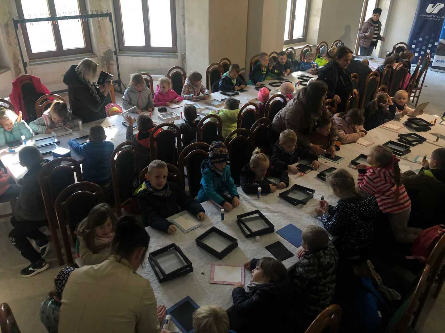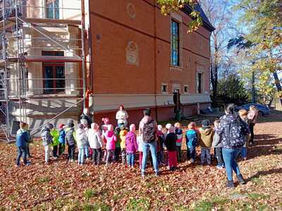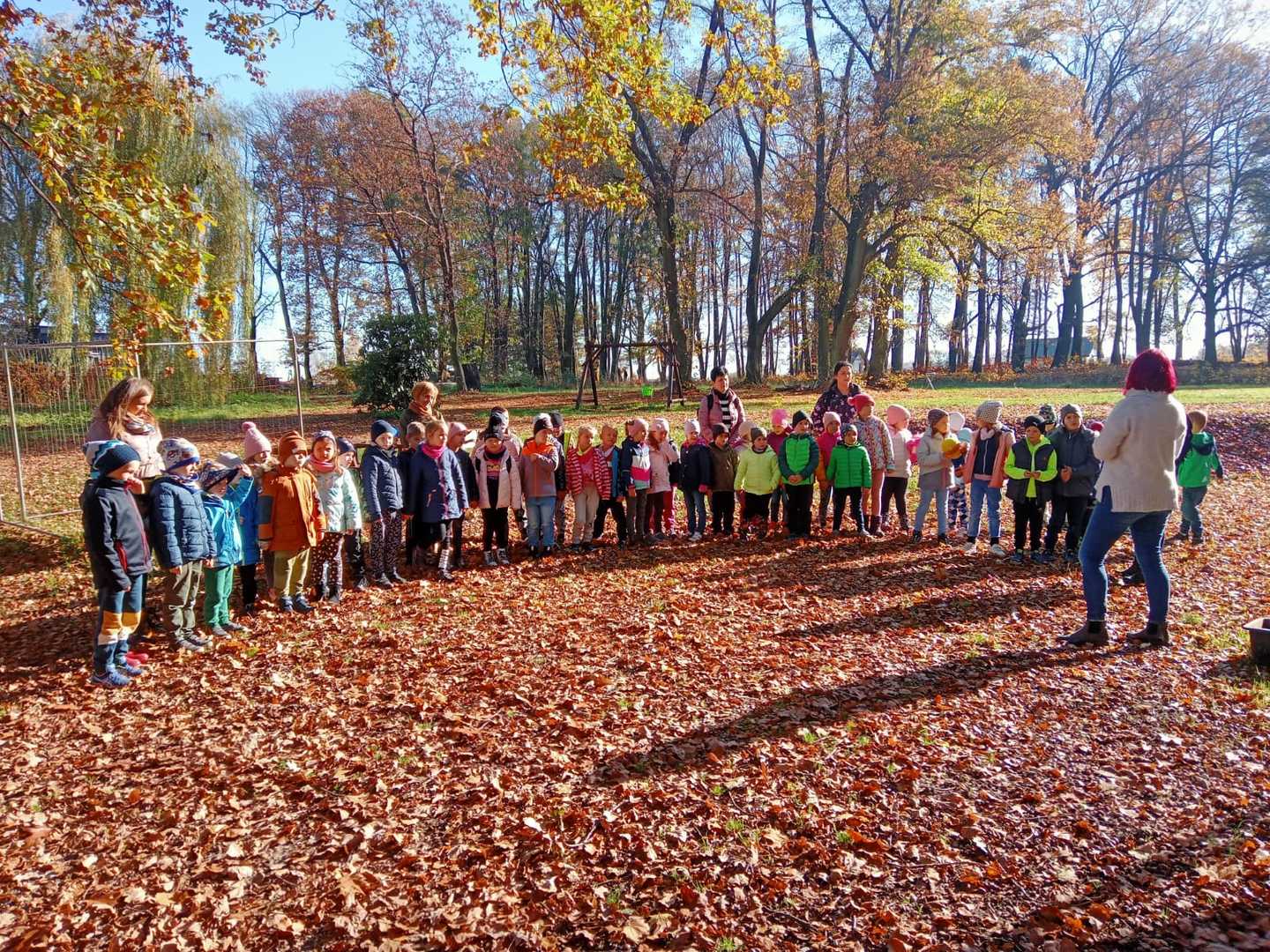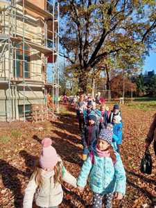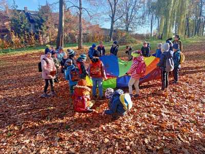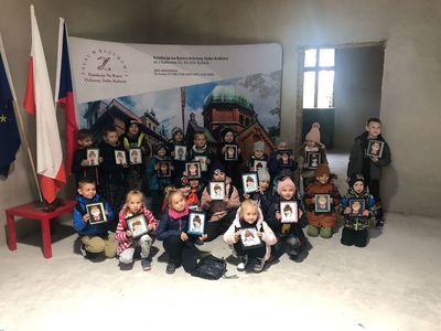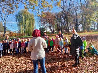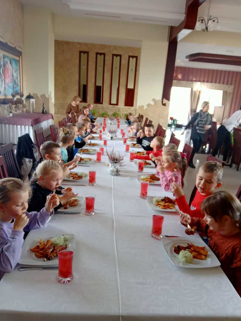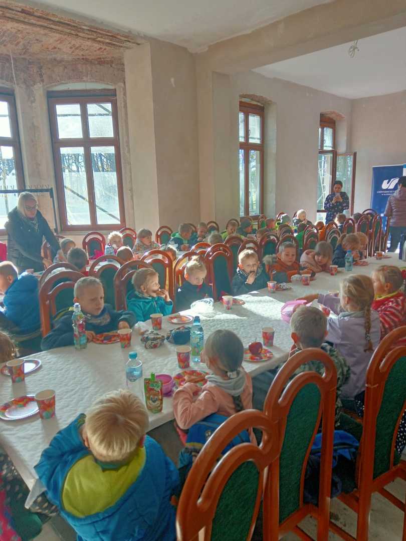 W czwartek 3 listopada w ramach projektu polsko- czeskiego współfinansowanego z Europejskiego Funduszu Rozwoju Regionalnego oraz budżetu państwa RP „Przekraczamy granice” odbyło się IV działanie pt.; „W pałacu u króla i królowej”. Naszą królewską przygodę rozpoczęliśmy od przywitania czeskich uczestników oraz zwiedzenia pałacyku. Dzięki pani Ewie poznaliśmy ciekawą historię pałacyku i jego pierwszych właścicieli Stefani i Henryka. Nastąpienie szukaliśmy herbu, który znaleźliśmy nad wejściem do pałacyku. Porozmawialiśmy także o różnych pracach wykonywanych dawniej w pałacu ( np. służąca, ogrodnik, rycerz, król itp.). Tu dzieci wykazały się dużą wiedzą i chętnie same odpowiadały na pytania dotyczące rożnych zawodów. Następnie braliśmy udział w zabawach integracyjnych, ruchowych oraz tanecznych. Najwięcej jednak emocji wzbudziły zabawy plastyczne w ramach, których dzieci wykonały ramkę z królem i królową. Po wspólnej zabawie wszyscy udaliśmy się na pyszny obiad do Gościńca „Zodiak”, a potem pożegnaliśmy naszych przyjaciół z Czech i wróciliśmy do przedszkola. To było bardzo udane działanie. Dzieci wróciły do swoich domów pełne wrażeń!