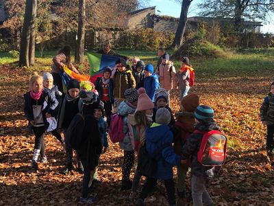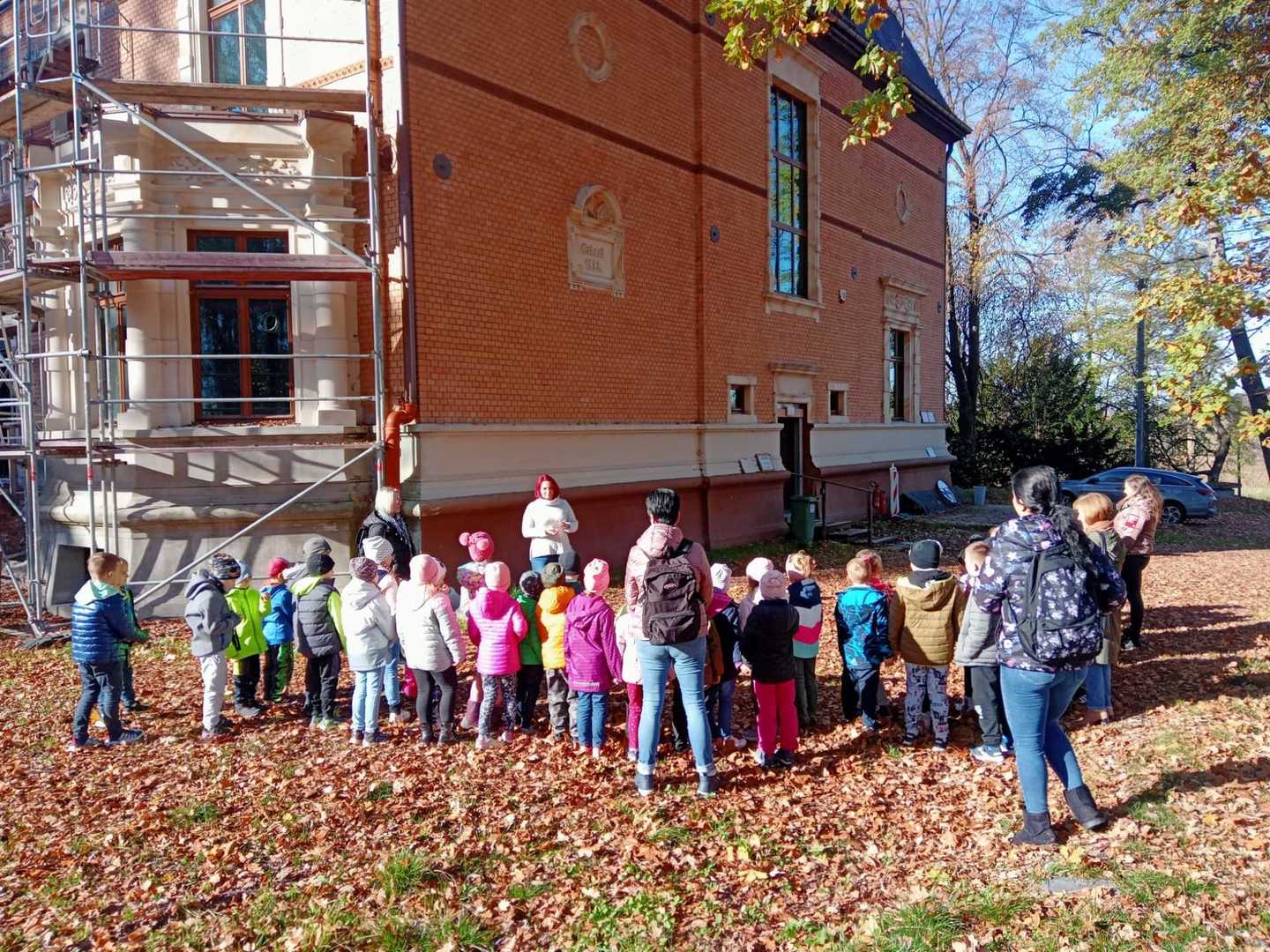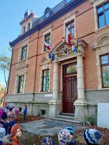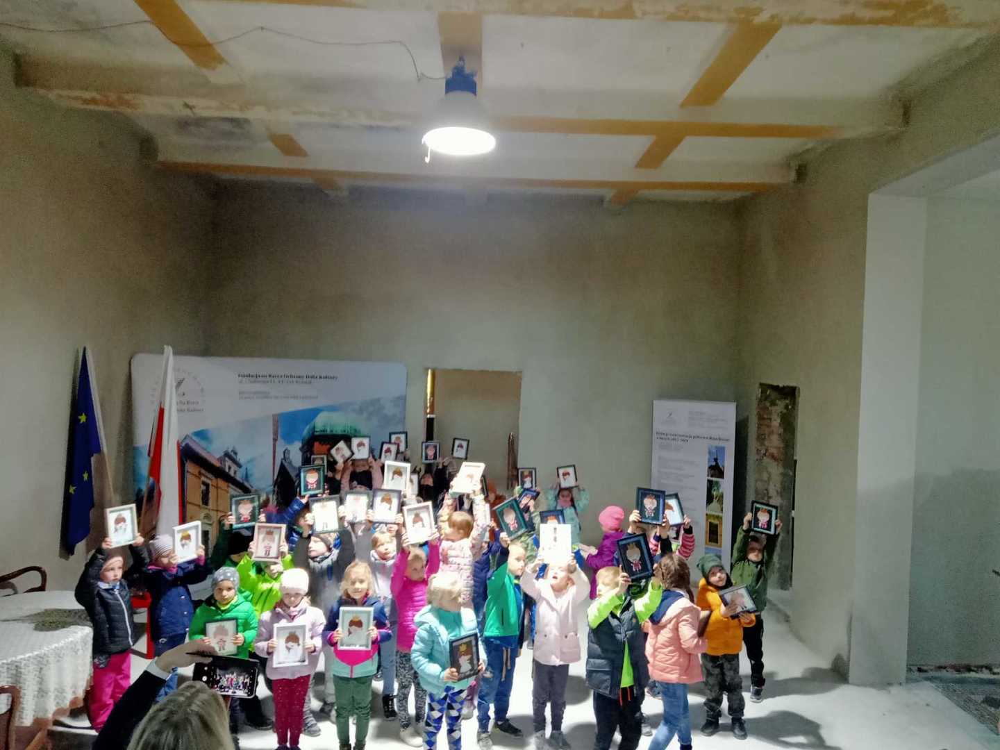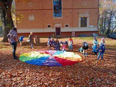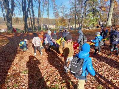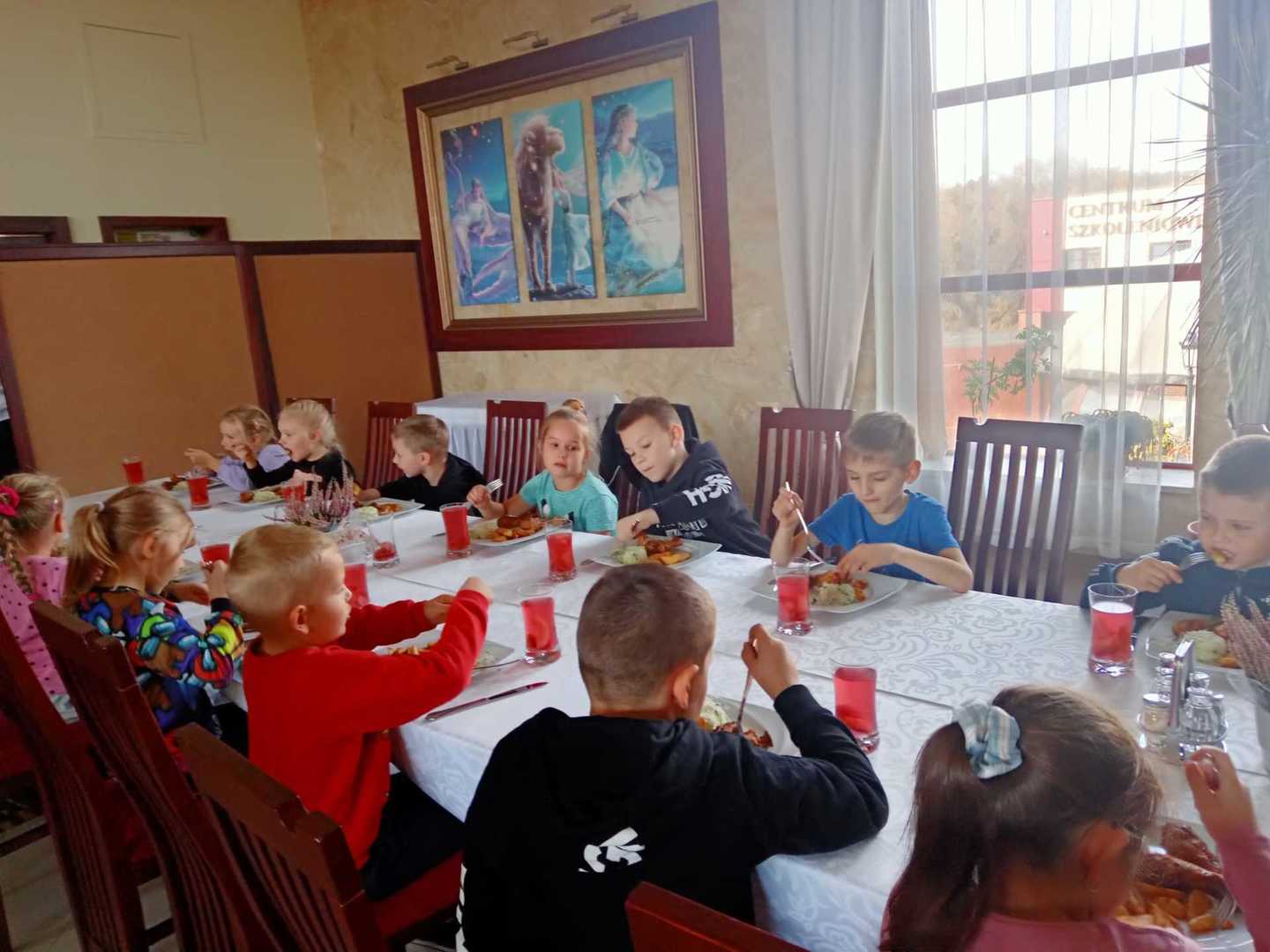 W czwartek 3 listopada w ramach projektu polsko- czeskiego współfinansowanego z Europejskiego Funduszu Rozwoju Regionalnego oraz budżetu państwa RP „Przekraczamy granice” odbyło się IV działanie pt.; „W pałacu u króla i królowej”. Naszą królewską przygodę rozpoczęliśmy od przywitania czeskich uczestników oraz zwiedzenia pałacyku. Dzięki pani Ewie poznaliśmy ciekawą historię pałacyku i jego pierwszych właścicieli Stefani i Henryka. Nastąpienie szukaliśmy herbu, który znaleźliśmy nad wejściem do pałacyku. Porozmawialiśmy także o różnych pracach wykonywanych dawniej w pałacu ( np. służąca, ogrodnik, rycerz, król itp.). Tu dzieci wykazały się dużą wiedzą i chętnie same odpowiadały na pytania dotyczące rożnych zawodów. Następnie braliśmy udział w zabawach integracyjnych, ruchowych oraz tanecznych. Najwięcej jednak emocji wzbudziły zabawy plastyczne w ramach, których dzieci wykonały ramkę z królem i królową. Po wspólnej zabawie wszyscy udaliśmy się na pyszny obiad do Gościńca „Zodiak”, a potem pożegnaliśmy naszych przyjaciół z Czech i wróciliśmy do przedszkola. To było bardzo udane działanie. Dzieci wróciły do swoich domów pełne wrażeń!