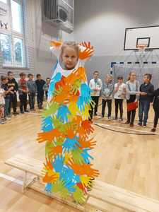 Dzisiaj obchodziliśmy w naszej szkole Międzynarodowy Dzień Tolerancji, podczas którego uczniowie przypomnieli sobie czym jest tolerancja, jak ciekawa jest różnorodność oraz skąd wzięło się to święto. Symbolem tego dnia stały się kolorowe dłonie, które ozdobiły strój „Pani Tolerancji” w którą wcieliła się jedna z uczennic klasy drugiej. Hasła dzisiejszego dnia to akceptacja, przyjaźń i szacunek. Wszyscy razem wsłuchiwali się w słowa piosenki „Tolerancja” i wspólnie bawili się przy muzyce. Jedna rzecz, którą mamy nadzieję zapamiętali uczniowie to: jesteśmy różni, jesteśmy równi!