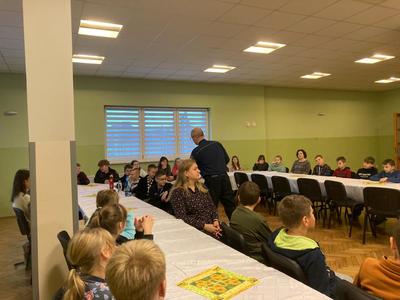 18 listopada uczniowie klas 4-6 spotkali się z przedstawicielem Straży Miejskiej w Raciborzu. Spotkanie miało na celu zwiększenie świadomości młodych ludzi na temat zagrożeń związanych z zażywaniem narkotyków, dopalaczy, paleniem papierosów, spożywaniem alkoholu, w tym konsekwencji zarówno zdrowotnych, prawnych, jak i społecznych uzależnienia.