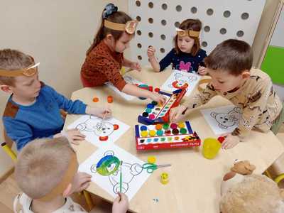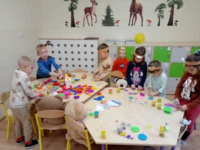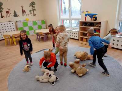 W piątek 25 listopada przedszkolaki uczestniczyły w obchodach Światowego Dnia Pluszowego Misia. Tego dnia każde dziecko przyszło do przedszkola ze swoim ulubionym pluszowym przyjacielem. Nasze zajęcia rozpoczęliśmy od wysłuchania historii pluszowego misia, który to powstał w Stanach Zjednoczonych na cześć ówczesnego prezydenta Theodore Roosevelta. Następnie przedszkolaki przedstawiały swoje pluszaki, recytowały rymowankę „Ja jestem niedźwiadek”, układały puzzle oraz bawiły się przy piosence „Jadą, jadą misie”. Ponadto każdy przedszkolak malował swoją ulubioną maskotkę samodzielnie, ulepił z plasteliny piękny tort dla swojego pluszowego przyjaciela oraz uczestniczył w wielu ciekawych zabawach ruchowych. Ten misiowy dzień upłynął nam w miłej i radosnej atmosferze oraz dostarczył wszystkim wielu niezapomnianych wrażeń.