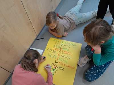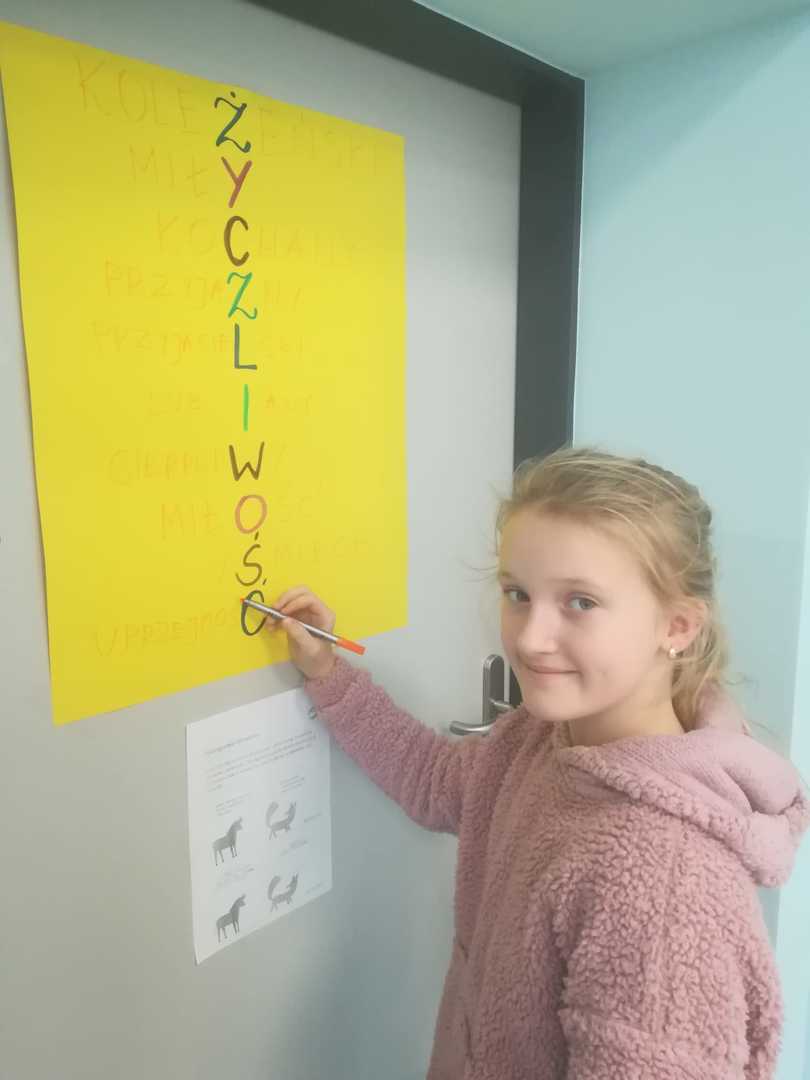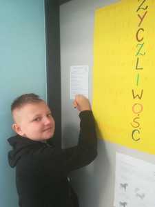 Od dawna w naszej szkole obchodzimy Dzień Życzliwości i Pozdrowień, którego hasłem w tym roku jest - ŻYCZLIWOŚĆ MA MOC. Ważne, aby ludzie byli dla siebie wzajemnie życzliwi i uprzejmi, czego wyrazem jest przekazywanie dobrych i ciepłych słów. Dlatego przedstawiciele poszczególnych klas częstowali wszystkich miłym słowem i cukierkiem z naklejoną uśmiechniętą emotką. Młodsze klasy zaś zapoznały się z bajką ,,Życzliwa pchła” oraz wykonały prace plastyczne - ,,Życzliwy krąg splecionych rąk”, ,,Życzliwość gości w naszej klasie”. Natomiast uczniowie klas starszych podejmowali dyskusje na temat treści czytanych sentencji i brali udział we wspólnej zabawie, szukając akrostychów do tegorocznego hasła. O tym jak należy okazywać życzliwość innym przekonały się dzieci z przedszkola, które również włączyły się w akcję. Każdy dzień powinien być napełniony życzliwością, uśmiechem, dobrym słowem i pozytywną energią. I tego wszystkim serdecznie życzymy.