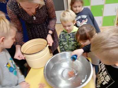 Dnia 30 listopada 2022 r. dzieci z naszego przedszkola przeniosły się w tajemniczy i magiczny świat wróżb oraz zabaw andrzejkowych. Nastrojowa muzyka i „czarodziejskie” dekoracje wprowadziły nas w świat magii. Najważniejszym elementem związanym ze świętowaniem andrzejek są oczywiście tradycyjne wróżby andrzejkowe, których nie zabrakło w tym dniu. Przedszkolaki bawiły się naprawdę wyśmienicie, a każda nowa wróżba wzbudzała ogromną ciekawość. Lanie wosku przez klucz, ustawianie butów, przekłuwanie serca, czy wróżenie z kubków- to tylko niektóre atrakcje tego dnia. Dzieci uczestniczyły również we wspólnych zabawach ruchowych i tańcach.