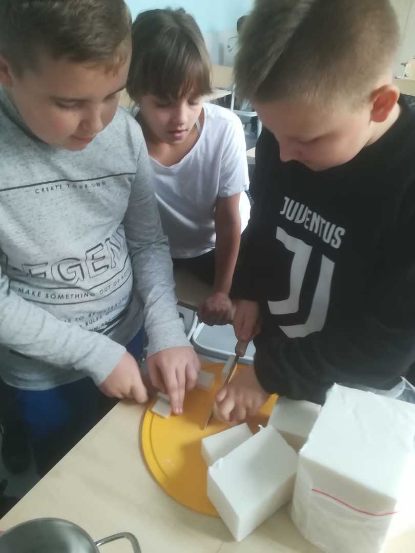 - Kl. V również w ramach zajęć kreatywnych wykorzystała garnki, noże, kuchenkę elektryczną do produkcji mydełek. Powstały ekologiczne, naturalne, niepowtarzalne i jedyne w swoim rodzaju mydełka ze świątecznym akcentem. Uczniowie zobaczyli, jak można samemu wykonać wspaniałe egzemplarze, które mogą być wykorzystane na prezent pod choinkę, czy na kiermasz bożonarodzeniowy. Świetna zabawa dla całej klasy.