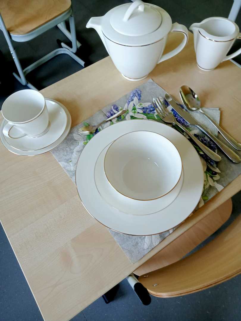 3) Zakupiona zastawa stołowa pozwoliła na przeprowadzenie zajęć z małą grupą uczniów kl. VI pod hasłem „ Savoir vivre przy stole - zasady, które powinniśmy znać!”