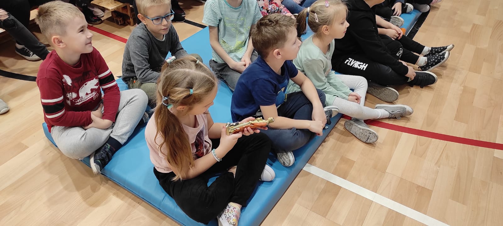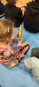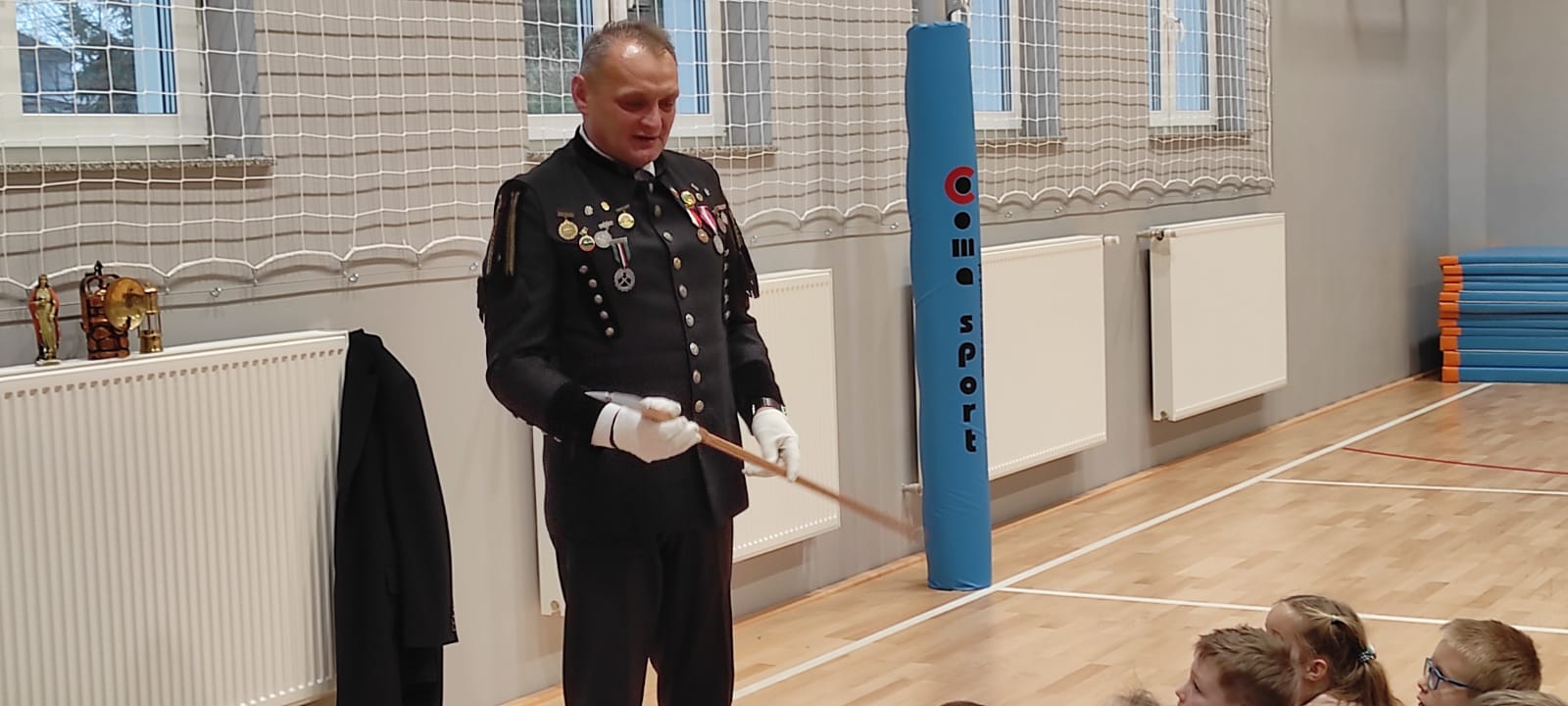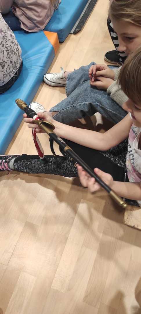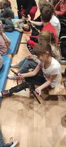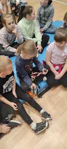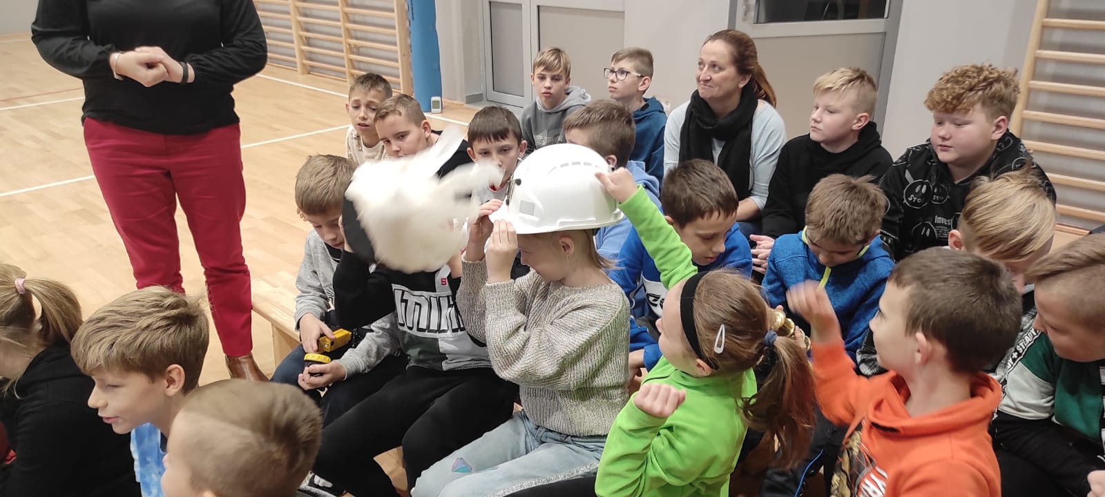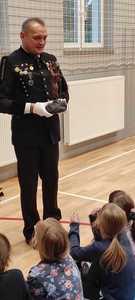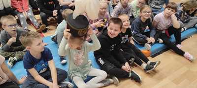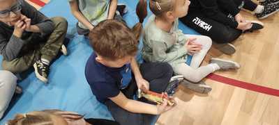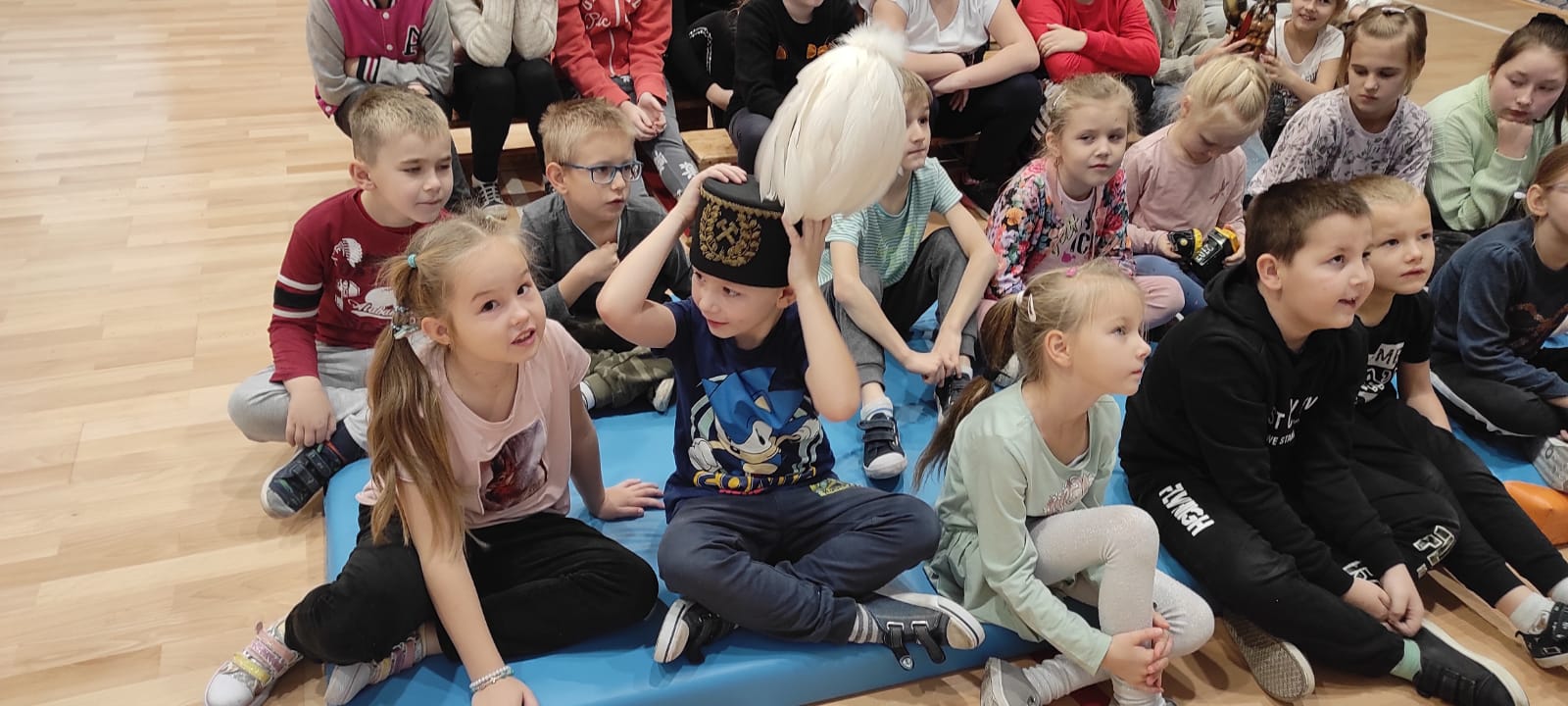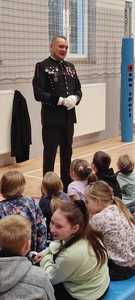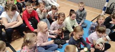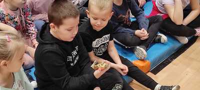 Nasz gość w bardzo ciekawy sposób opowiedział dzieciom o tym kim jest górnik i na czym polega jego praca. Uczniowie dowiedzieli się m.in. jak wygląda strój górnika, od czego zależy kolor pióropusza , co górnicy wydobywają w kopalniach, jakich narzędzi używają i dlaczego ich praca jest niebezpieczna. Nie zabrakło również szeregu ciekawostek oraz historycznych wiadomości na temat pracy górnika. Dodatkową atrakcją były różne przedmioty, które przyniósł nasz gość np. lampy, latarki górnicze, kaski, kilofy, figurki patronów i postaci z legend związanych z kopalnią „Anna”. Sprawiło to dzieciom dużo radości, które nie tylko słuchały, ale z zainteresowaniem oglądały i dotykały przyniesione akcesoria. Dodatkowy entuzjazm wzbudziła słodka niespodzianka, którą nasz gość przygotował dla uczniów.