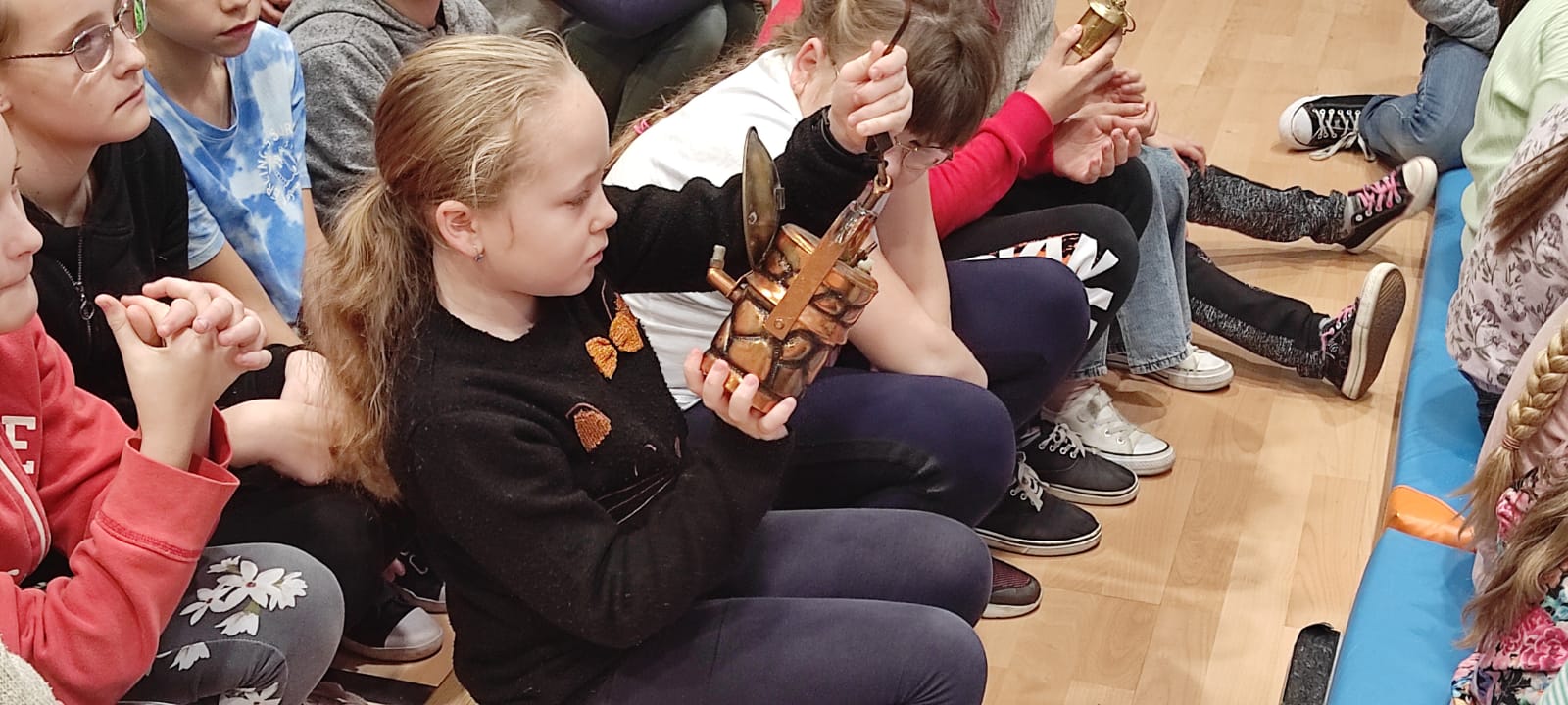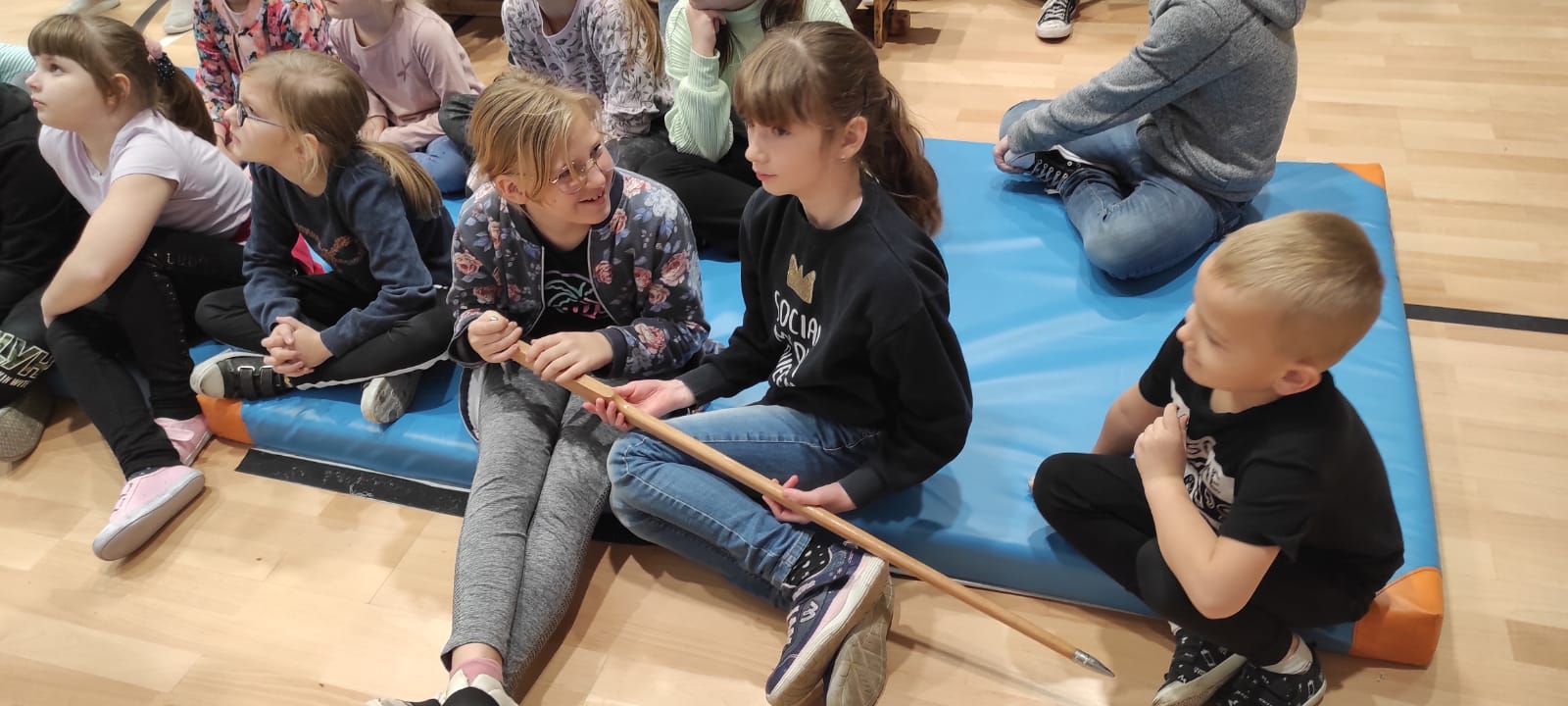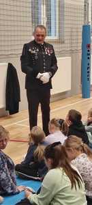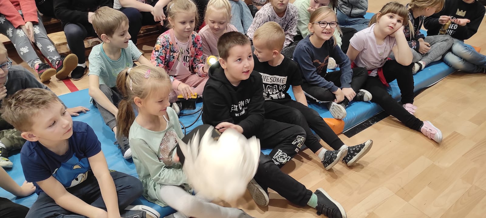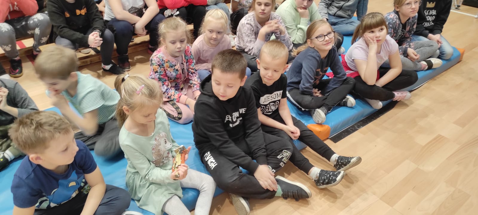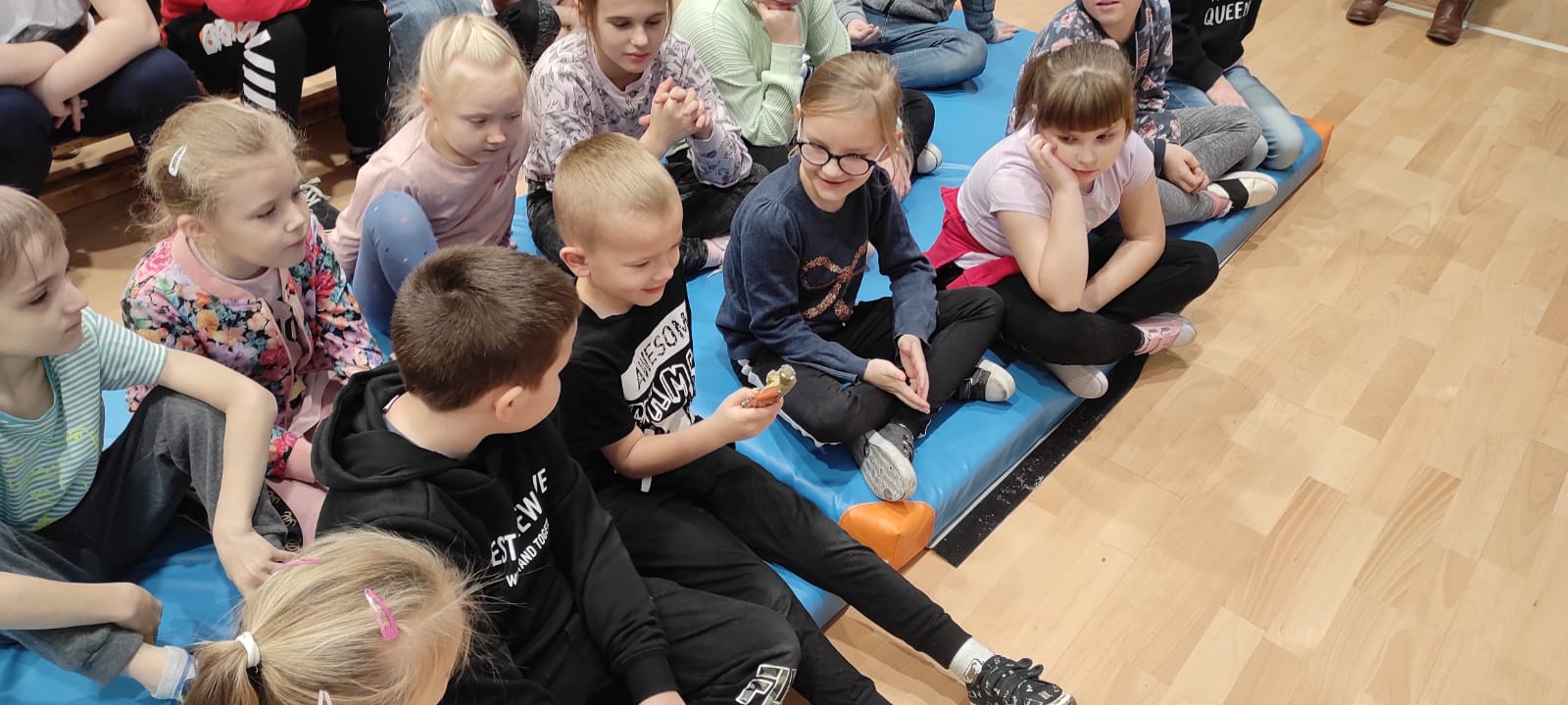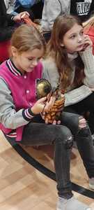 Nasz gość w bardzo ciekawy sposób opowiedział dzieciom o tym kim jest górnik i na czym polega jego praca. Uczniowie dowiedzieli się m.in. jak wygląda strój górnika, od czego zależy kolor pióropusza , co górnicy wydobywają w kopalniach, jakich narzędzi używają i dlaczego ich praca jest niebezpieczna. Nie zabrakło również szeregu ciekawostek oraz historycznych wiadomości na temat pracy górnika. Dodatkową atrakcją były różne przedmioty, które przyniósł nasz gość np. lampy, latarki górnicze, kaski, kilofy, figurki patronów i postaci z legend związanych z kopalnią „Anna”. Sprawiło to dzieciom dużo radości, które nie tylko słuchały, ale z zainteresowaniem oglądały i dotykały przyniesione akcesoria. Dodatkowy entuzjazm wzbudziła słodka niespodzianka, którą nasz gość przygotował dla uczniów.