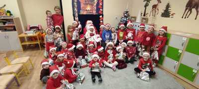 We wtorek 6 grudnia nasze przedszkole odwiedził Święty Mikołaj. Dzieci z niecierpliwością wyczekiwały nadejścia tego dnia i specjalnie na tę okazję przygotowały krótki program artystyczny oraz włożyły mikołajkowe czapki. O godzinie 10.00 usłyszeliśmy dzwoneczki oraz zobaczyliśmy Mikołaja, który przybył do nas z dalekiej Laponii. Wszystkie dzieci z wielki entuzjazmem powitały gościa oraz z zaciekawieniem słuchały Mikołajowych opowieści. Następnie w podziękowaniu za trud i dobre serce Mikołaja zaprezentowały piosenki i wierszyki. Nasz gość podziękował za piękne powitanie, pochwalił wszystkie dzieci za to, że są grzeczne i w nagrodę wręczył im śliczne prezenty. Spotkanie ze św. Mikołajem upłynęło nam w radosnej atmosferze i z pewnością na długo pozostanie w naszej pamięci. Mamy nadzieję, że za rok znowu zawita do nas Święty Mikołaj!