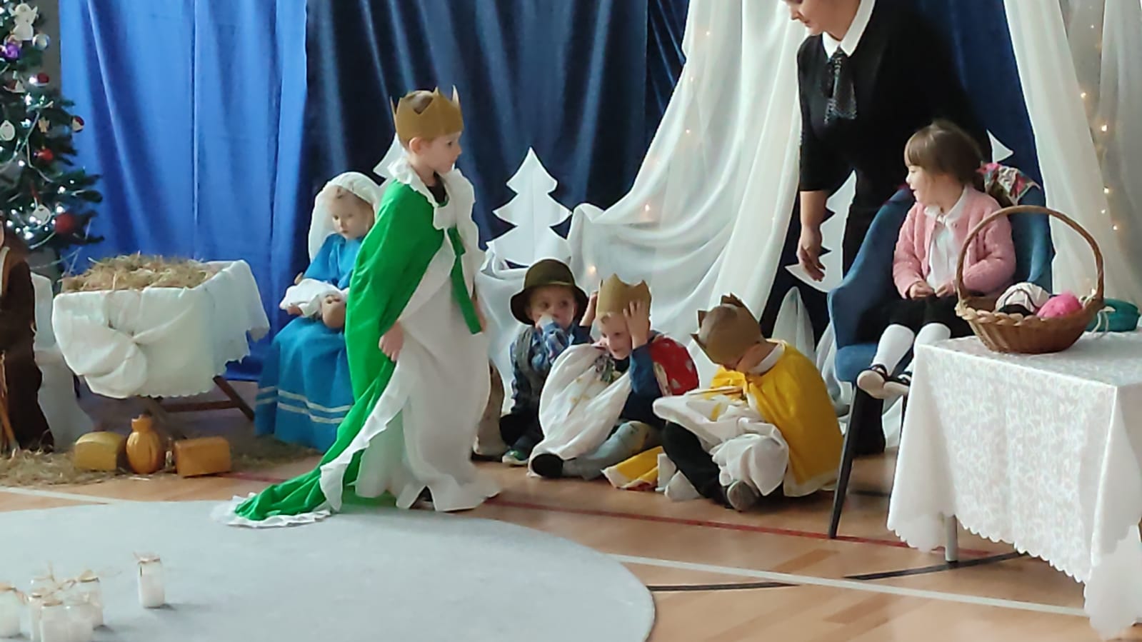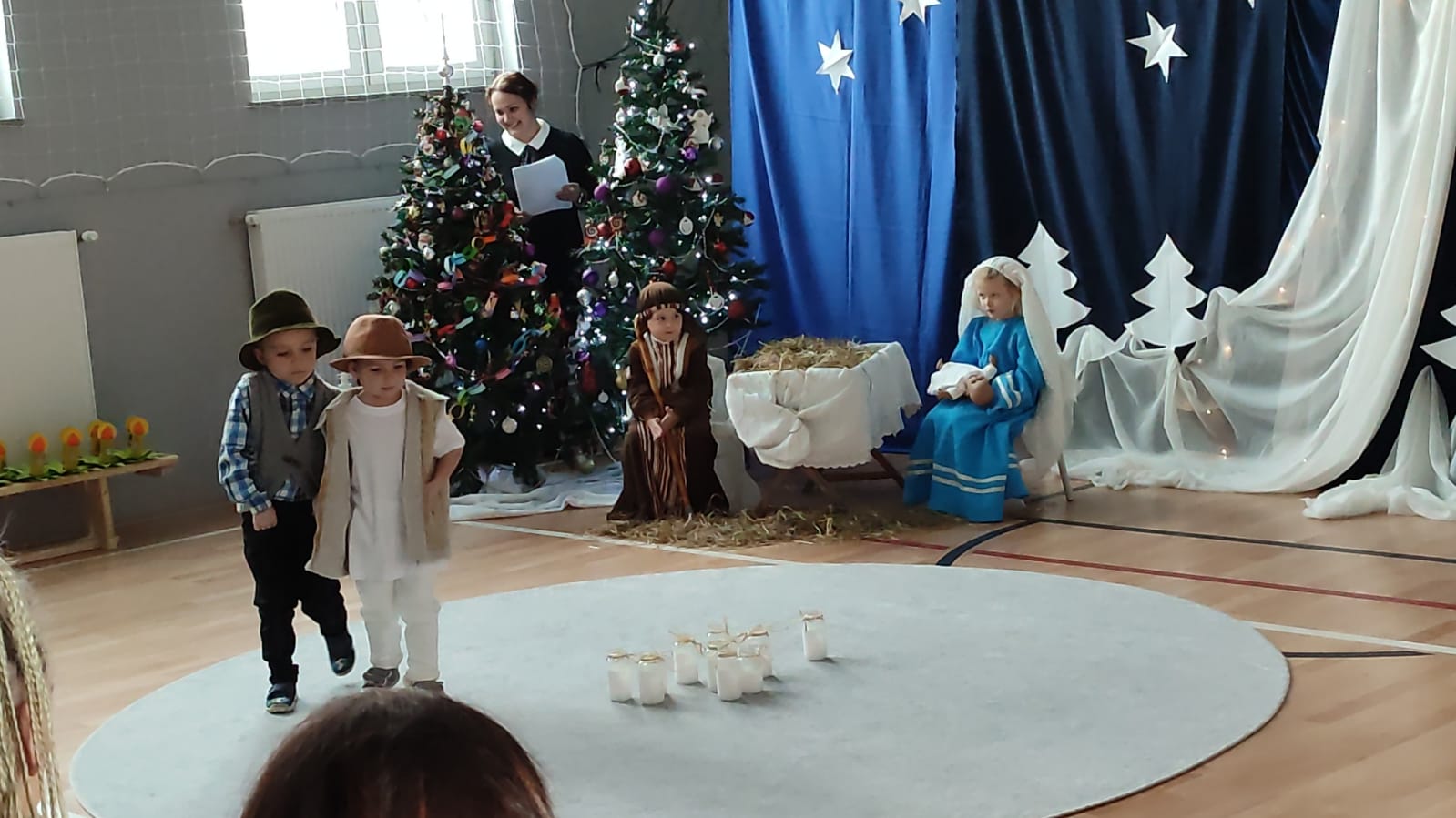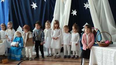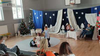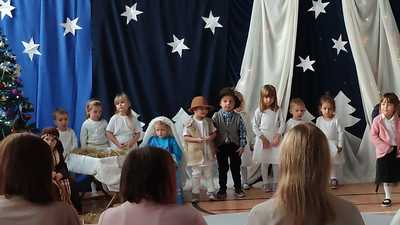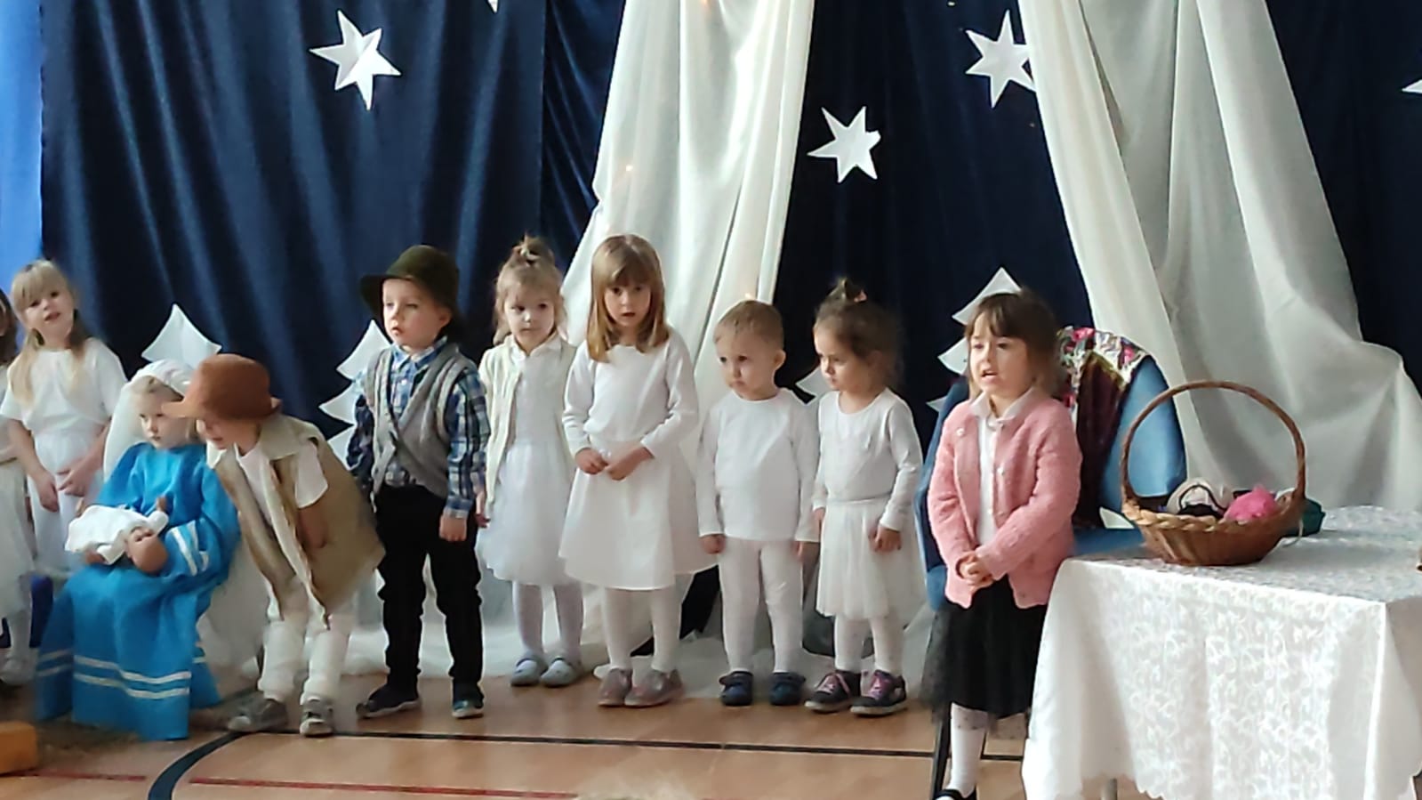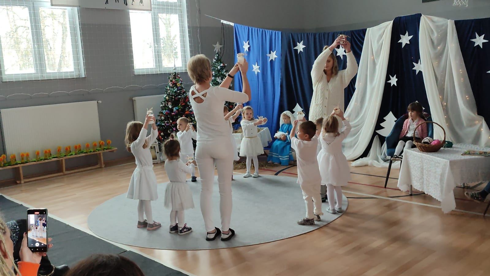 Okres świąt Bożego Narodzenia to czas pełen radości, piękna, magii i czarów. Czas spełniania marzeń i okazywania sobie wzajemnie miłości, dlatego też we wtorek 20.12.2022 r. r. odbyły się w naszym przedszkolu jasełka dla rodziców. Mali aktorzy odważnie grali swoje role, tańczyli, śpiewali kolędy i pastorałki, a ich popisy aktorskie publiczność nagrodziła dużymi brawami. Po przedstawieniu przedszkolaki złożyły świąteczne życzenia naszym gościom oraz wręczyły im samodzielnie wykonane podarki. Następnie wychowawcy zaprosili wszystkich na poczęstunek. Spotkanie jasełkowe przebiegło w niezwykle miłej, ciepłej i radosnej atmosferze.