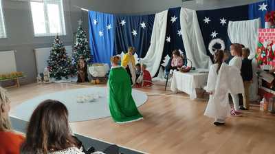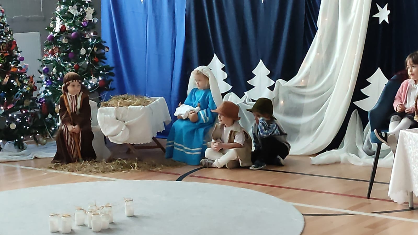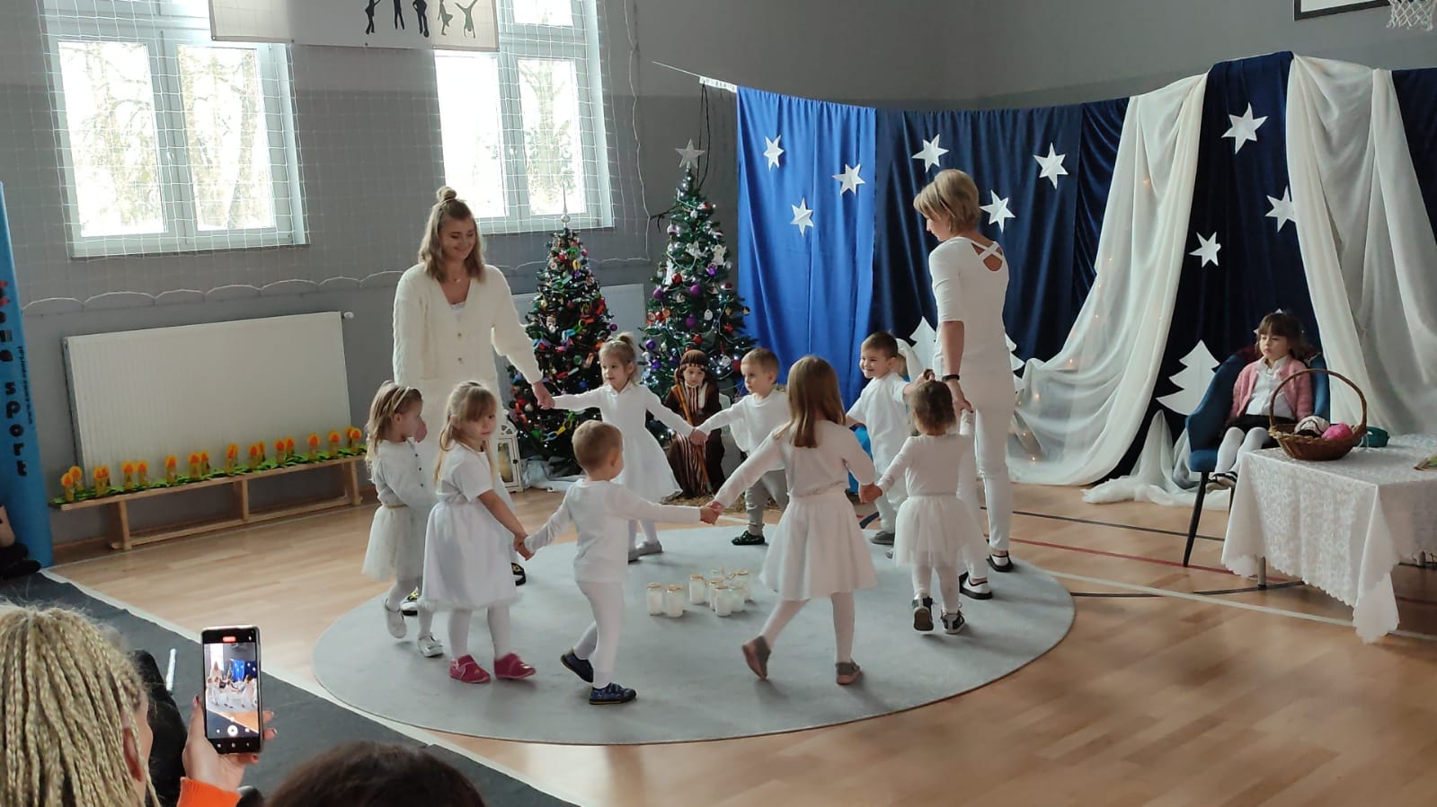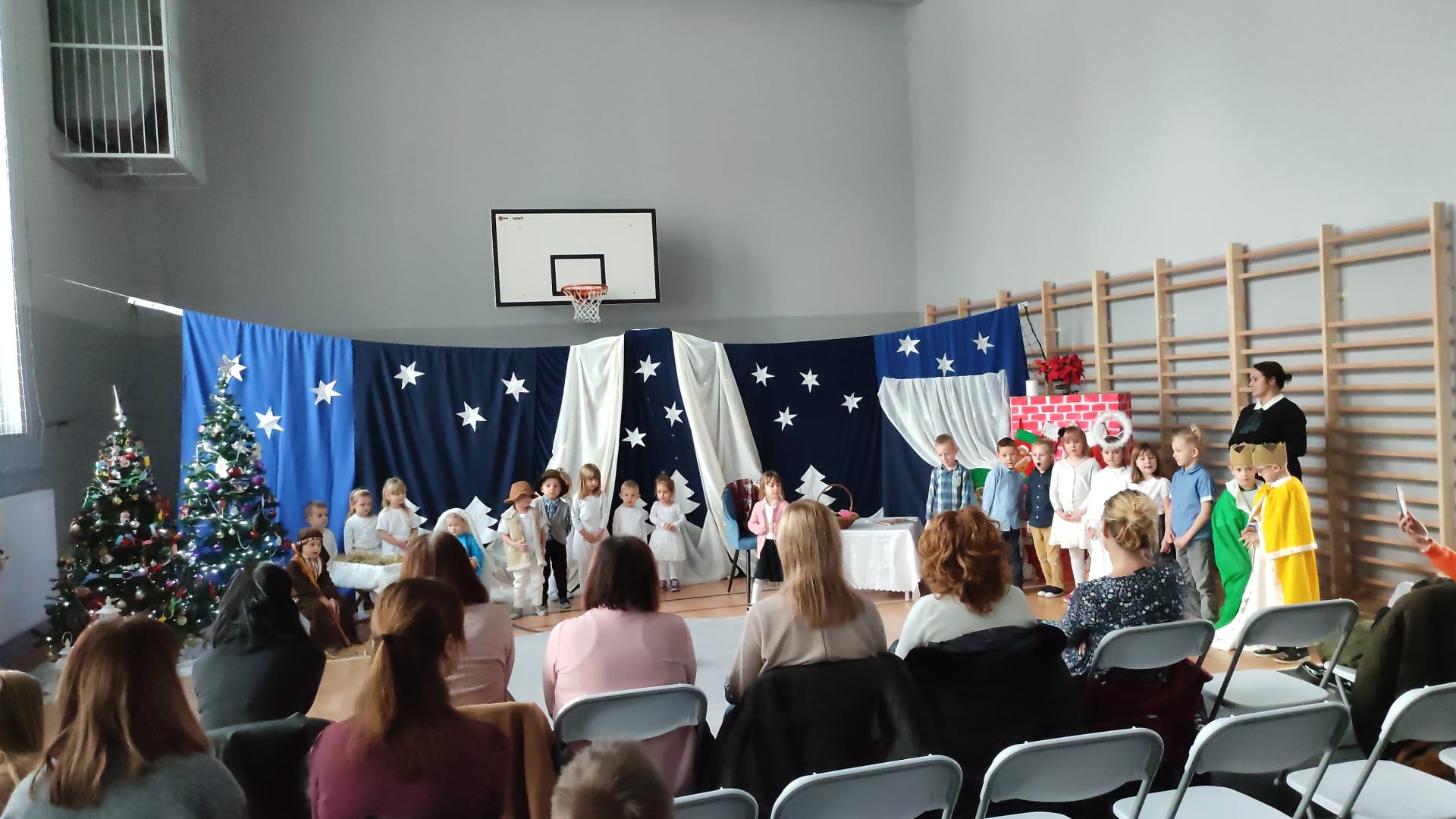 Okres świąt Bożego Narodzenia to czas pełen radości, piękna, magii i czarów. Czas spełniania marzeń i okazywania sobie wzajemnie miłości, dlatego też we wtorek 20.12.2022 r. r. odbyły się w naszym przedszkolu jasełka dla rodziców. Mali aktorzy odważnie grali swoje role, tańczyli, śpiewali kolędy i pastorałki, a ich popisy aktorskie publiczność nagrodziła dużymi brawami. Po przedstawieniu przedszkolaki złożyły świąteczne życzenia naszym gościom oraz wręczyły im samodzielnie wykonane podarki. Następnie wychowawcy zaprosili wszystkich na poczęstunek. Spotkanie jasełkowe przebiegło w niezwykle miłej, ciepłej i radosnej atmosferze.