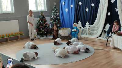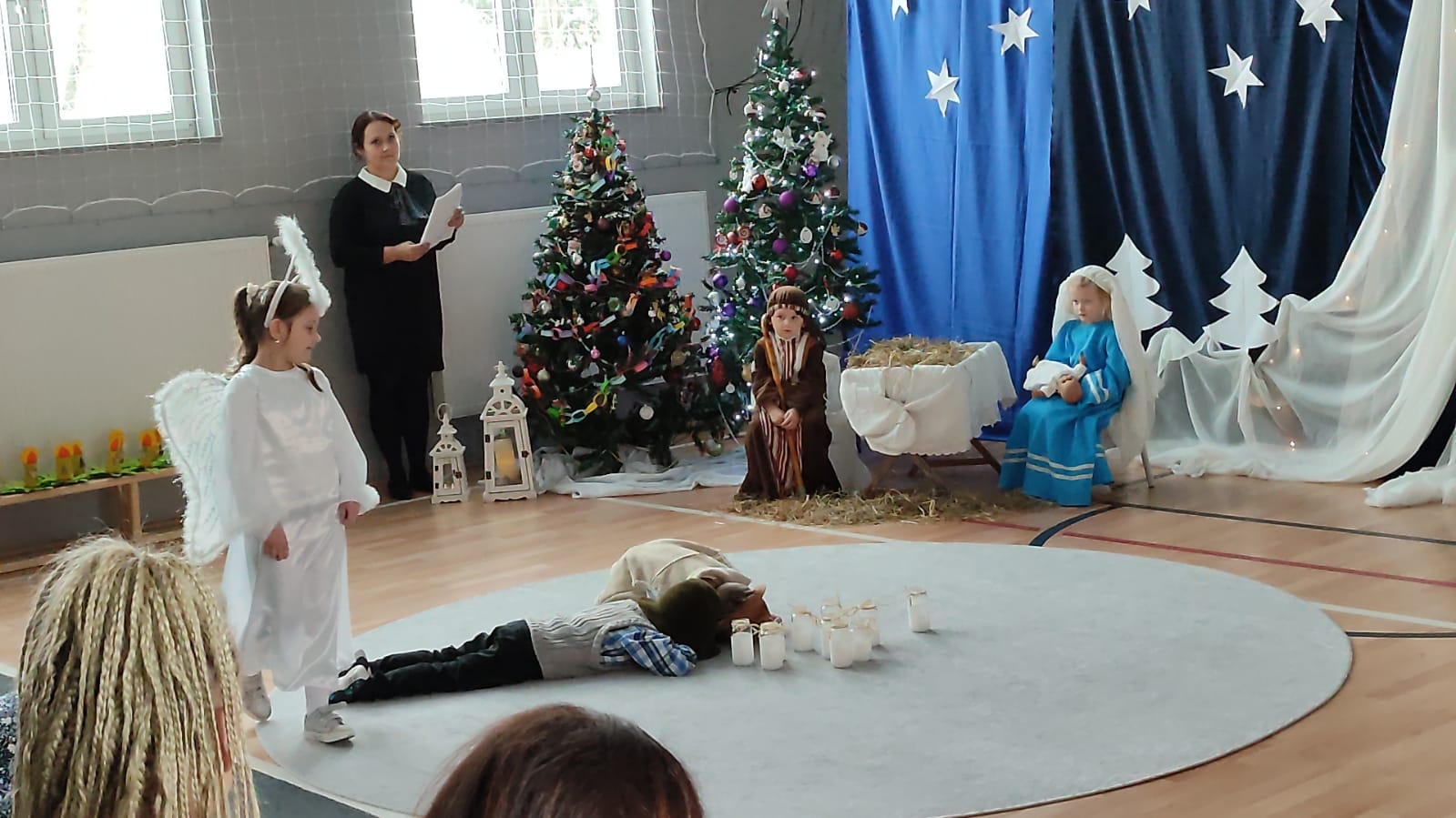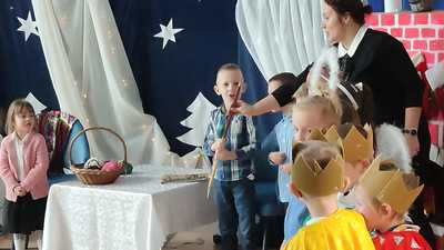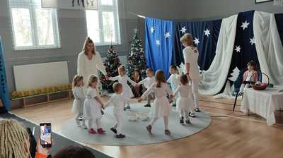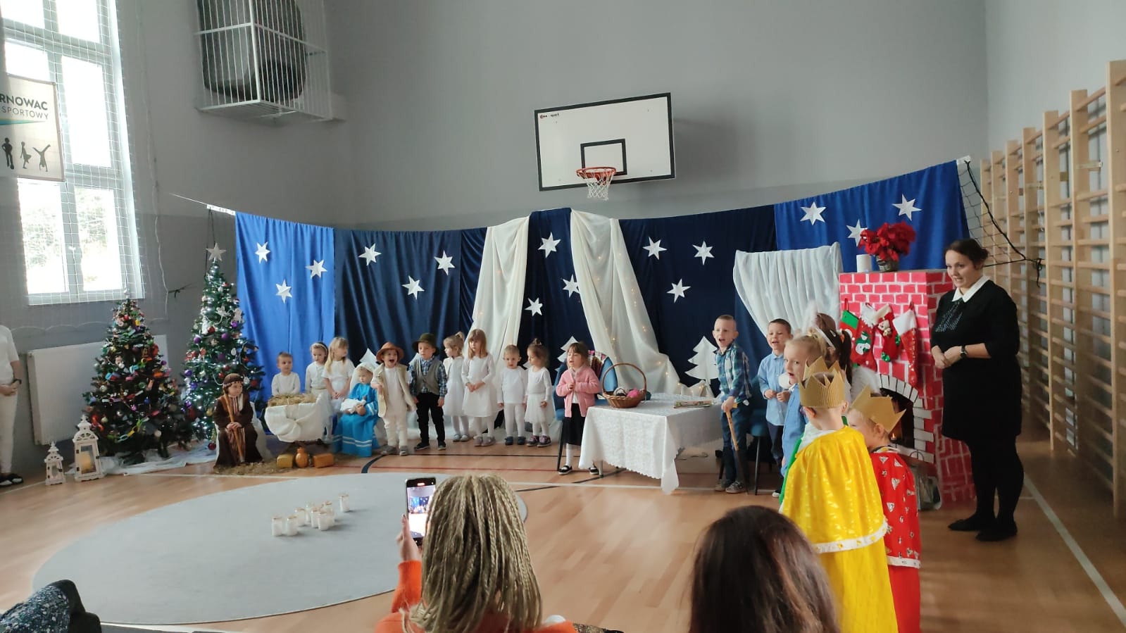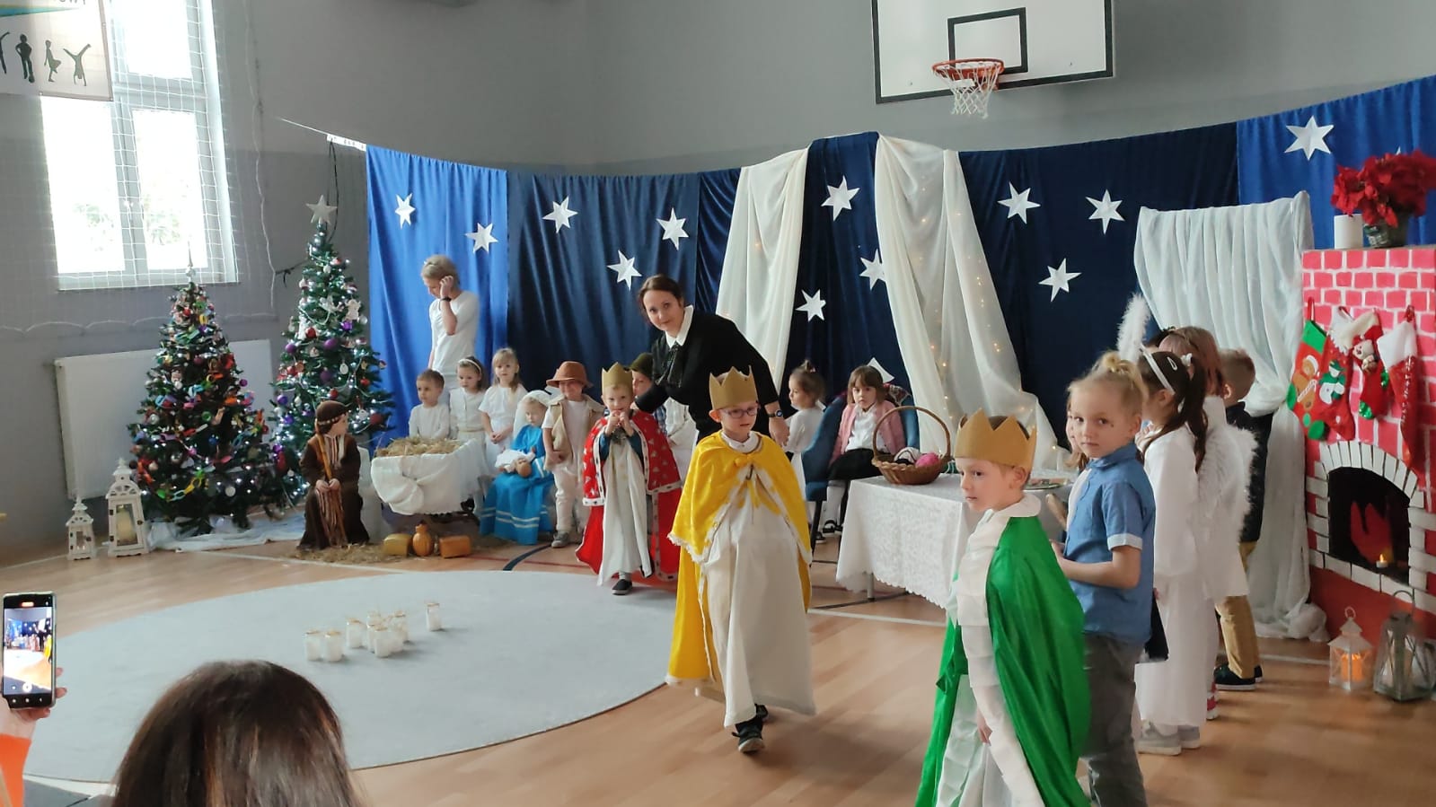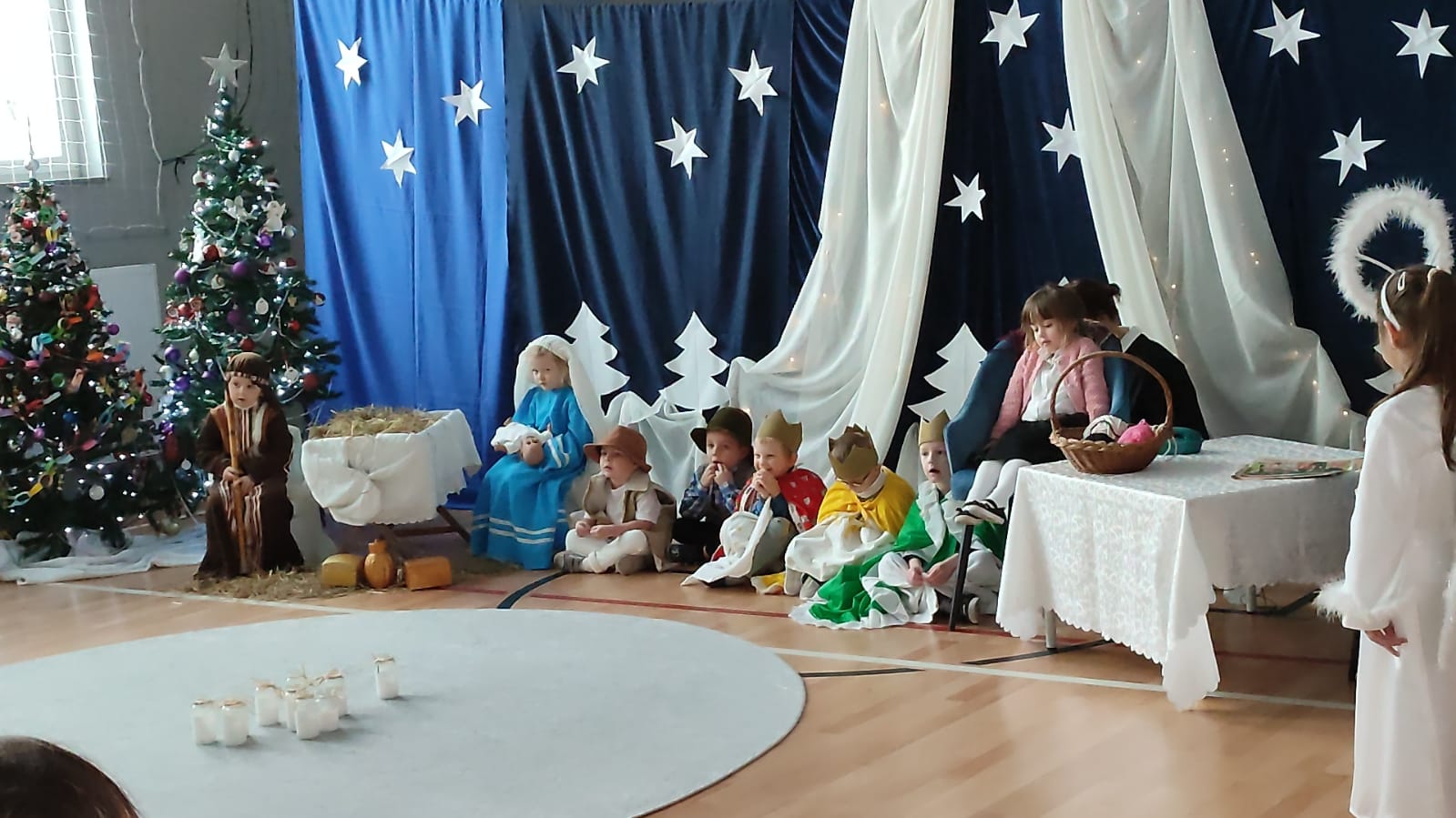 Okres świąt Bożego Narodzenia to czas pełen radości, piękna, magii i czarów. Czas spełniania marzeń i okazywania sobie wzajemnie miłości, dlatego też we wtorek 20.12.2022 r. r. odbyły się w naszym przedszkolu jasełka dla rodziców. Mali aktorzy odważnie grali swoje role, tańczyli, śpiewali kolędy i pastorałki, a ich popisy aktorskie publiczność nagrodziła dużymi brawami. Po przedstawieniu przedszkolaki złożyły świąteczne życzenia naszym gościom oraz wręczyły im samodzielnie wykonane podarki. Następnie wychowawcy zaprosili wszystkich na poczęstunek. Spotkanie jasełkowe przebiegło w niezwykle miłej, ciepłej i radosnej atmosferze.