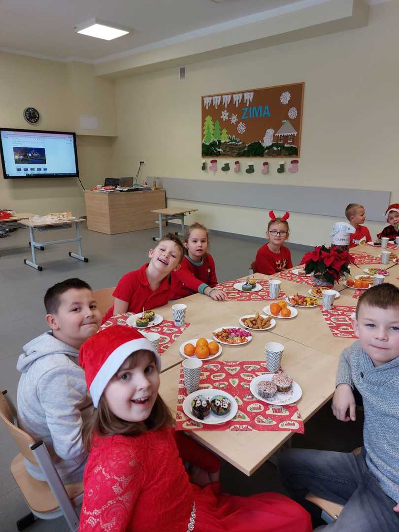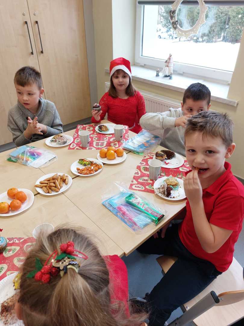 Jak co roku w ostatnim tygodniu przed przerwą świąteczną nasi uczniowie wraz z wychowawcami zebrali się w klasach podczas spotkań wigilijnych. Na stołach zamiast podręczników pojawiły się smakołyki, a pod choinką prezenty. Uczniowie pięknie udekorowali sale lekcyjne. Wszyscy w duchu świąt dzielili się opłatkiem, składali sobie życzenia, obdarowywali prezentami i wspólnie kolędowali.