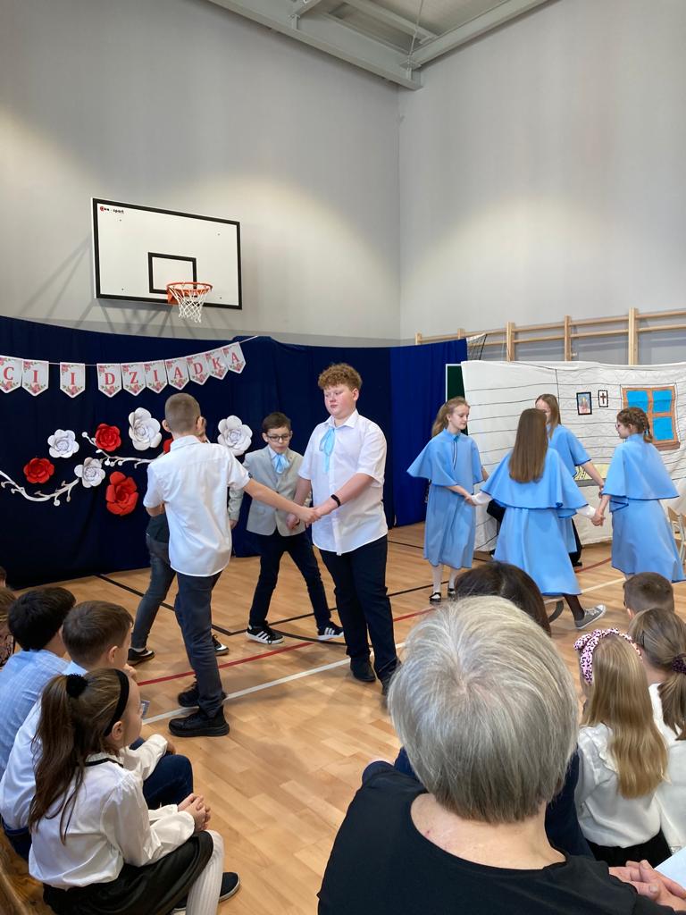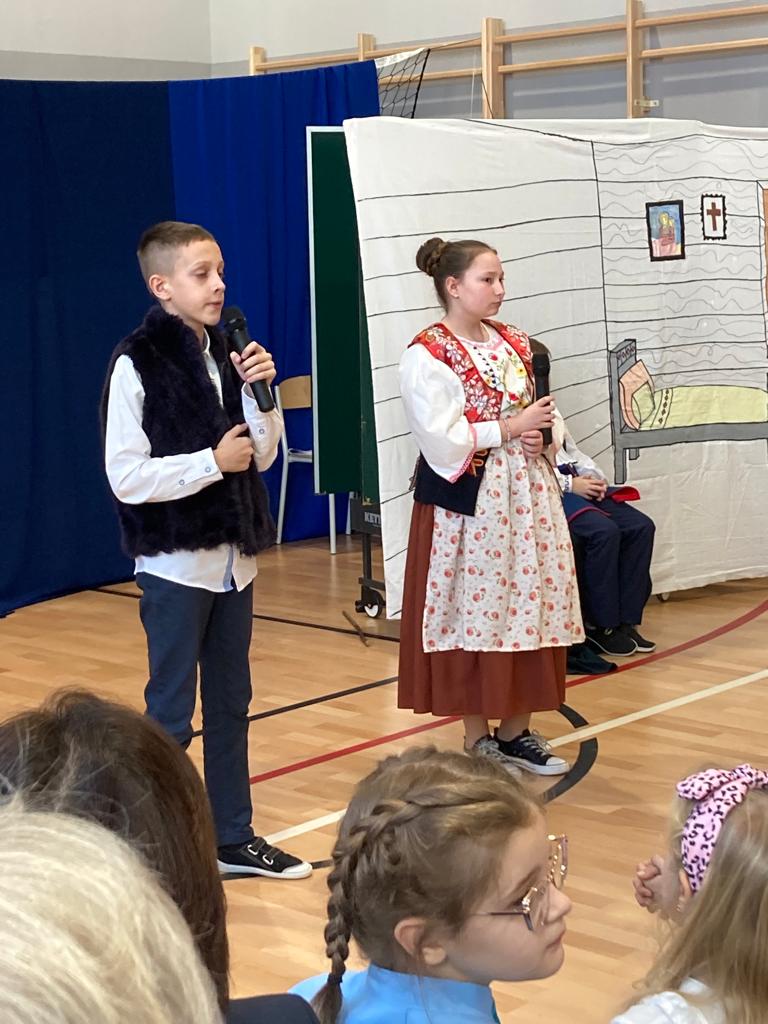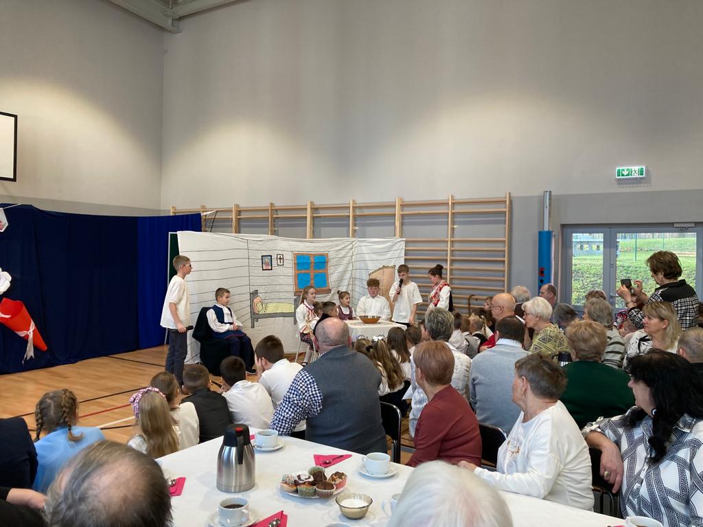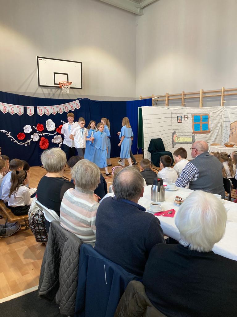 12 stycznia 2023r. odbyła się w naszej szkole wspaniała uroczystość z okazji zbliżającego się Święta Babci i Dziadka. Zaproszeni przez dzieci goście tym razem także nie zawiedli i licznie przybyli na przedstawienie. Wszystkich zebranych w serdecznych słowach powitała pani Dyrektor. Uczniowie pod kierunkiem wychowawców przedstawili specjalny program artystyczny - bogaty i zróżnicowany pod względem treści i formy przekazu. Były tańce, wzruszające inscenizacje i scenki oraz okolicznościowe pieśni i piosenki. Wszyscy artyści z wielkim zaangażowaniem i przejęciem prezentowali swoje umiejętności recytatorskie, taneczne i wokalne. Na niejednej twarzy pojawiły się łzy wzruszenia i szczere uśmiechy, a występujący otrzymywali gromkie brawa z widowni. Uroczystość umilił słodki poczęstunek przygotowany przez rodziców poszczególnych klas. Spotkanie przebiegło w miłej i serdecznej atmosferze.