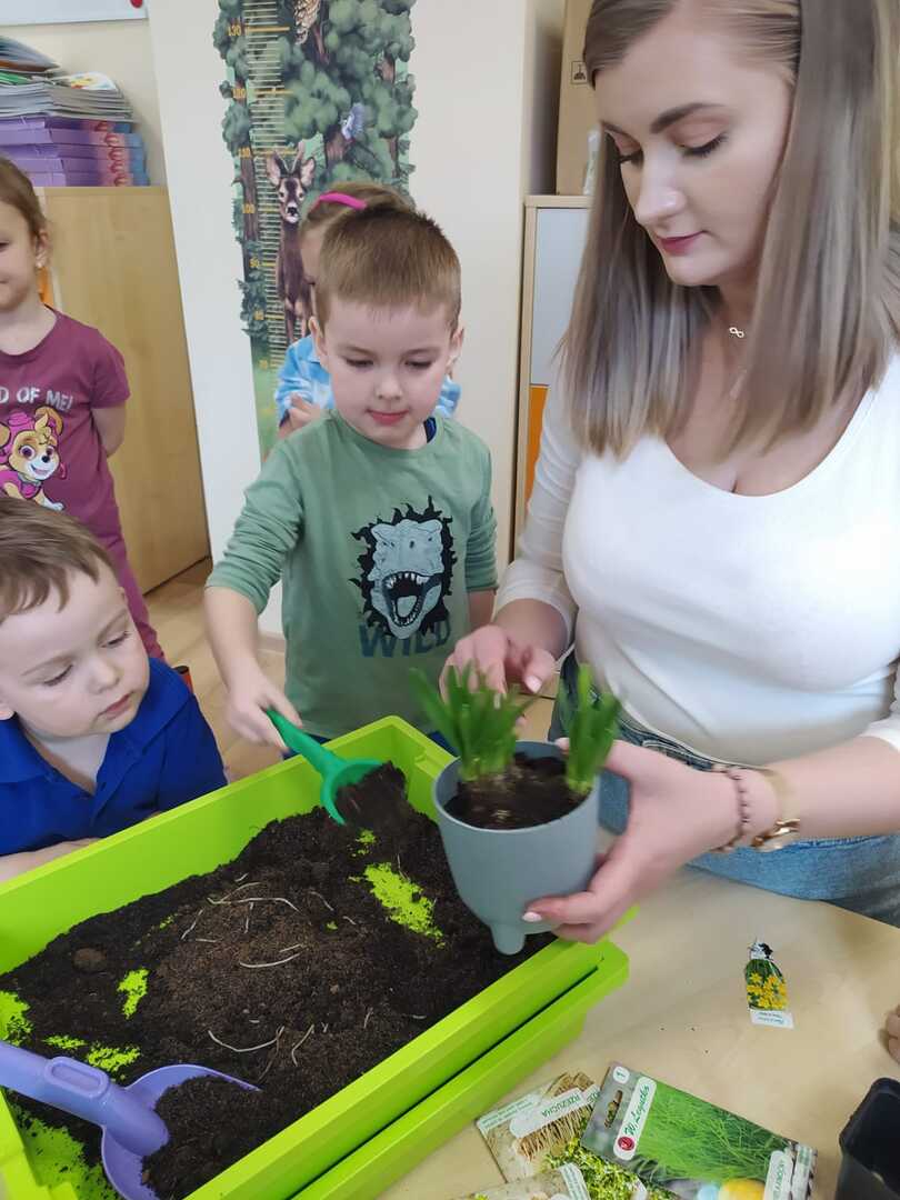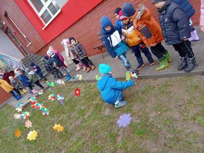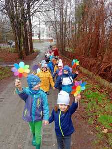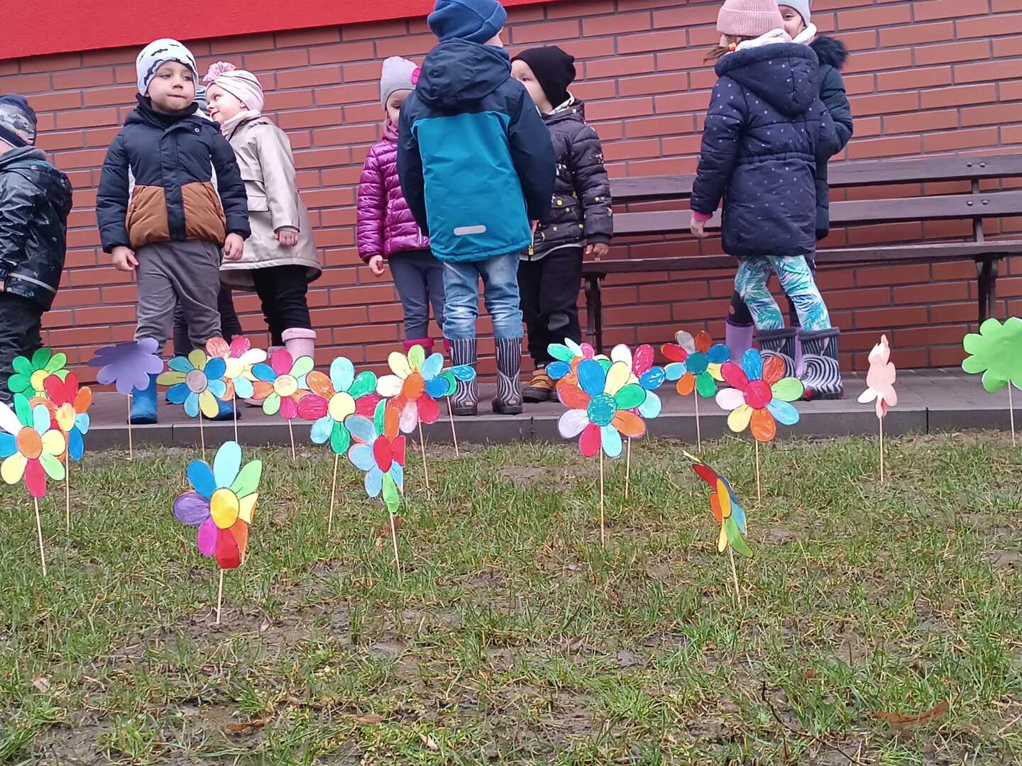 Od kilku dni przygotowywaliśmy się na przyjście upragnionej wiosny. Dzieci poznawały tradycje związane z nadejście wiosny, wykonywały prace plastyczne o tematyce wiosennej, uczyły się piosenek oraz stworzyły kukłę „Marzanny”. Następnie we wtorek 21 marca wybraliśmy się na spacer, by zgodnie z tradycją utopić kukłę ze słomy. Na szczęście pogoda pozwoliła nam na poszukiwanie oznak wiosny. Obserwowaliśmy pączki na drzewach, zieloną trawę oraz piękne kwiaty. Po pewnym czasie z kolorowymi kwiatkami z papieru i w dobrym nastroju wróciliśmy do przedszkola. W tym dniu nie zabrakło także zabaw i piosenek o tematyce wiosennej oraz pięknych prac plastycznych. Dzieci z radością powitały wiosnę i budzącą się do życia przyrodę. To był dzień pełen niesamowitych wrażeń.