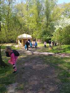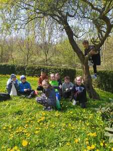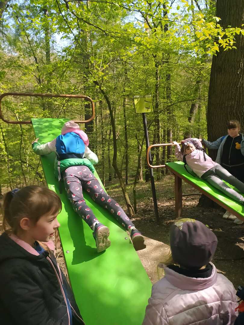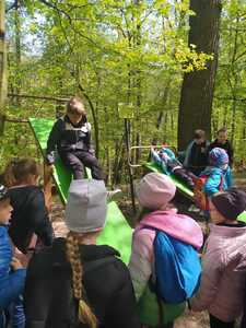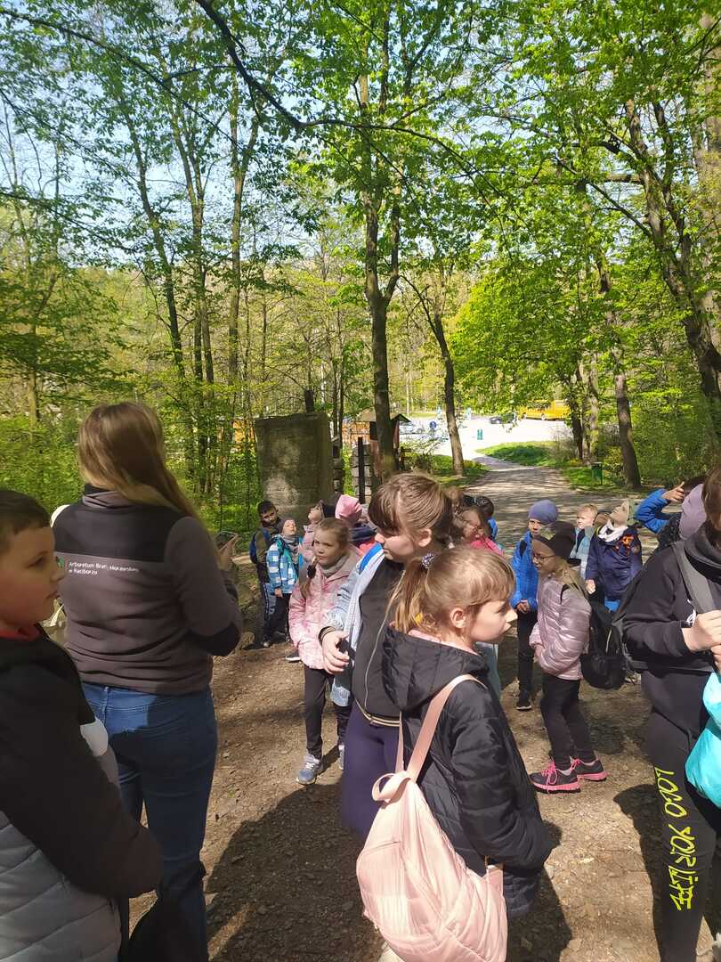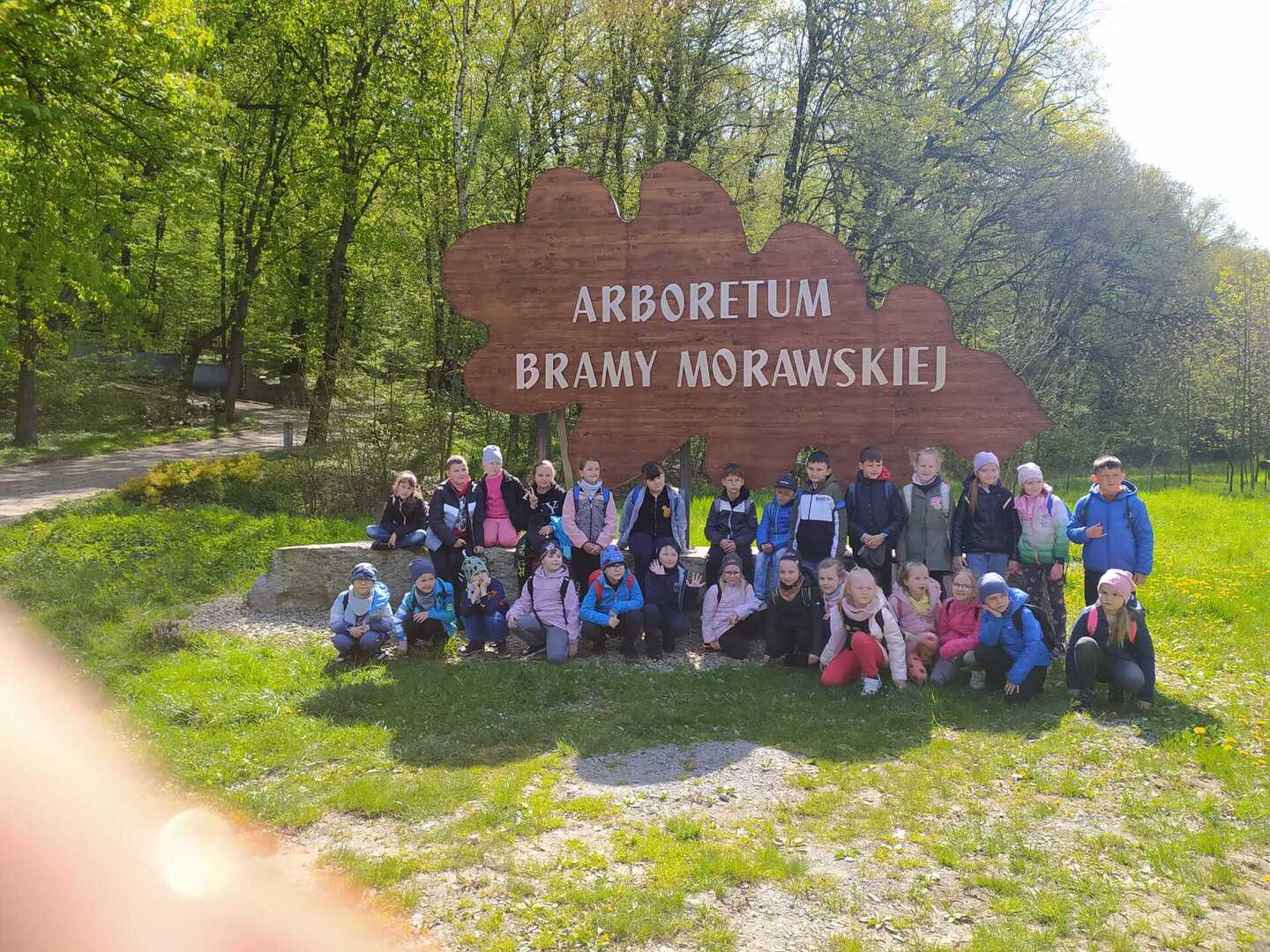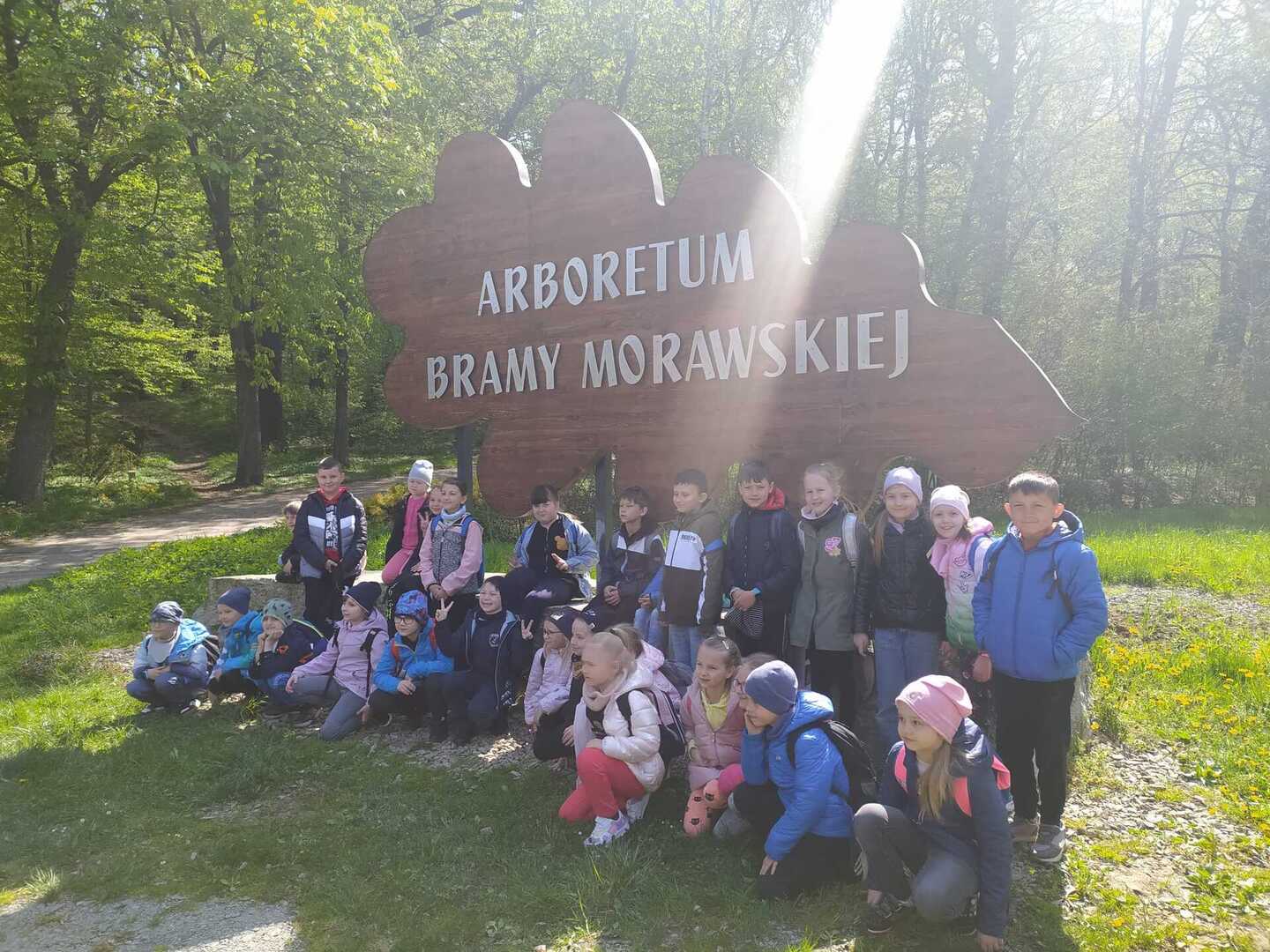 W ramach obchodów Święta Ziemi uczniowie klas I-III wzięli udział w wycieczce do Arboretum Bramy Morawskiej w Raciborzu. Ścieżka edukacyjna, którą dzieci przechodziły kryła w sobie wiele ciekawostek i atrakcji przyrodniczych. Podczas leśnej wędrówki uczniowie obserwowali okazy fauny i flory - poznawali budowę geofitów, słuchali śpiewu zięby i stukania dzięcioła, oglądali żuki, pająki, mrówki , a także rozbudowaną norę borsuka. Kolejną niespodzianką było Mini Zoo z pięknymi kucykami, bażantami, królikami i świnkami morskimi. Dużą atrakcją była możliwość dokarmiania zwierząt przygotowaną przez gospodarzy karmą. Jednak najbardziej zachwycił uczniów Zaczarowany Ogród z pięknym zielonym labiryntem, przepełnionym różnobarwnymi kwitnącymi na wiosnę krzewami i kwiatami. Możliwość zabawy na ścieżkach i zakamarkach labiryntu wywołało w dzieciach wiele radości. Wiosenna i słoneczna pogoda sprzyjała wędrówce po atrakcyjnych miejscach Arboretum. Dzieci zadowolone i wzbogacone o nową wiedzę przyrodniczą bezpiecznie wróciły do szkoły.