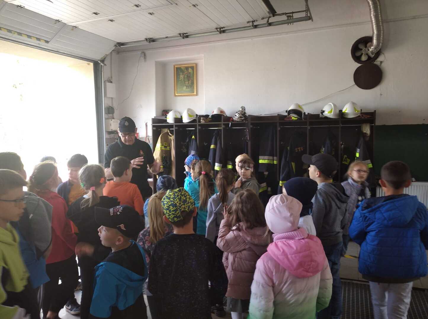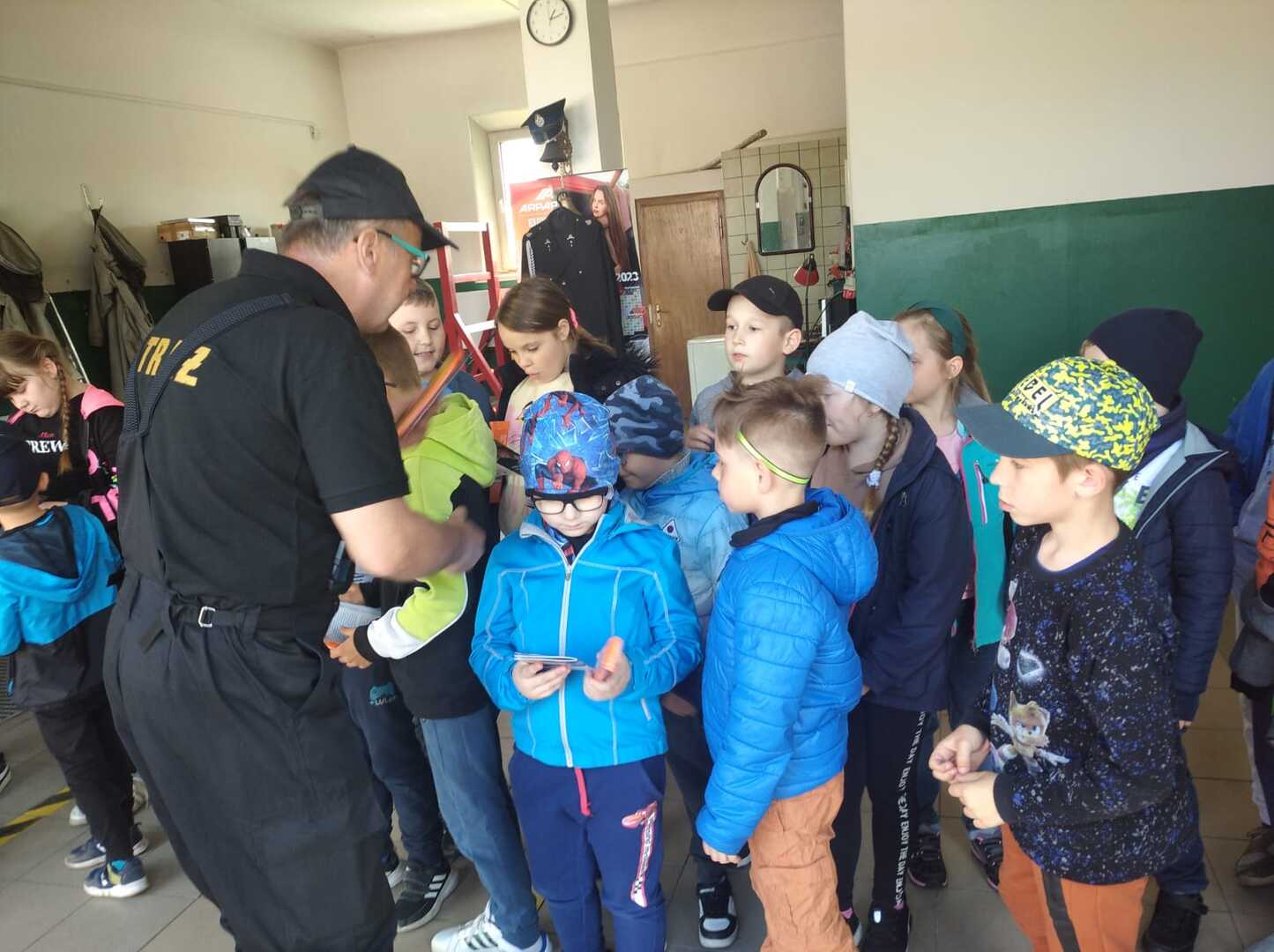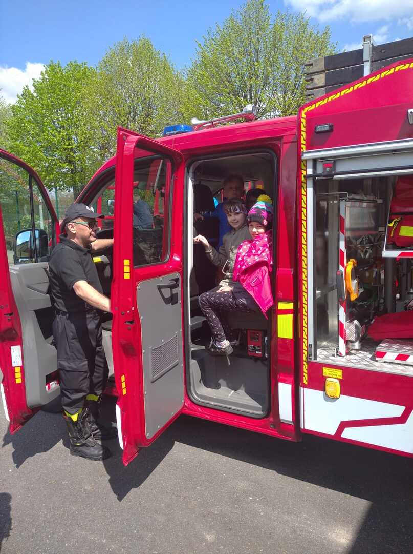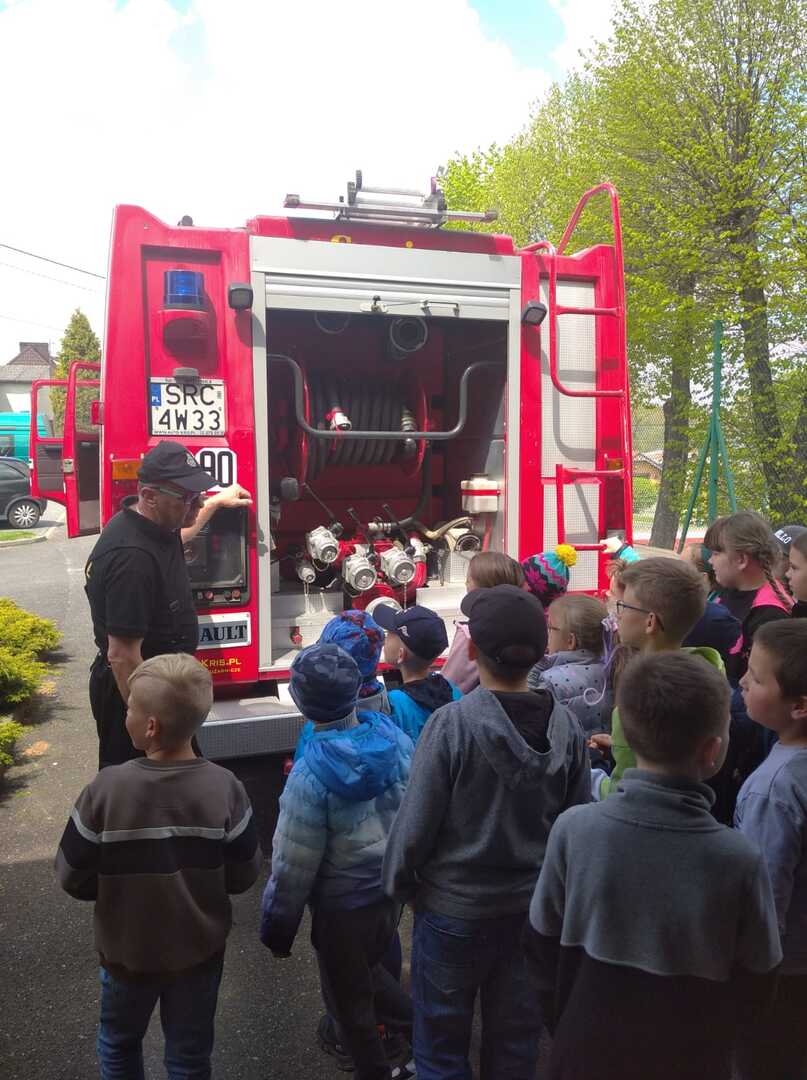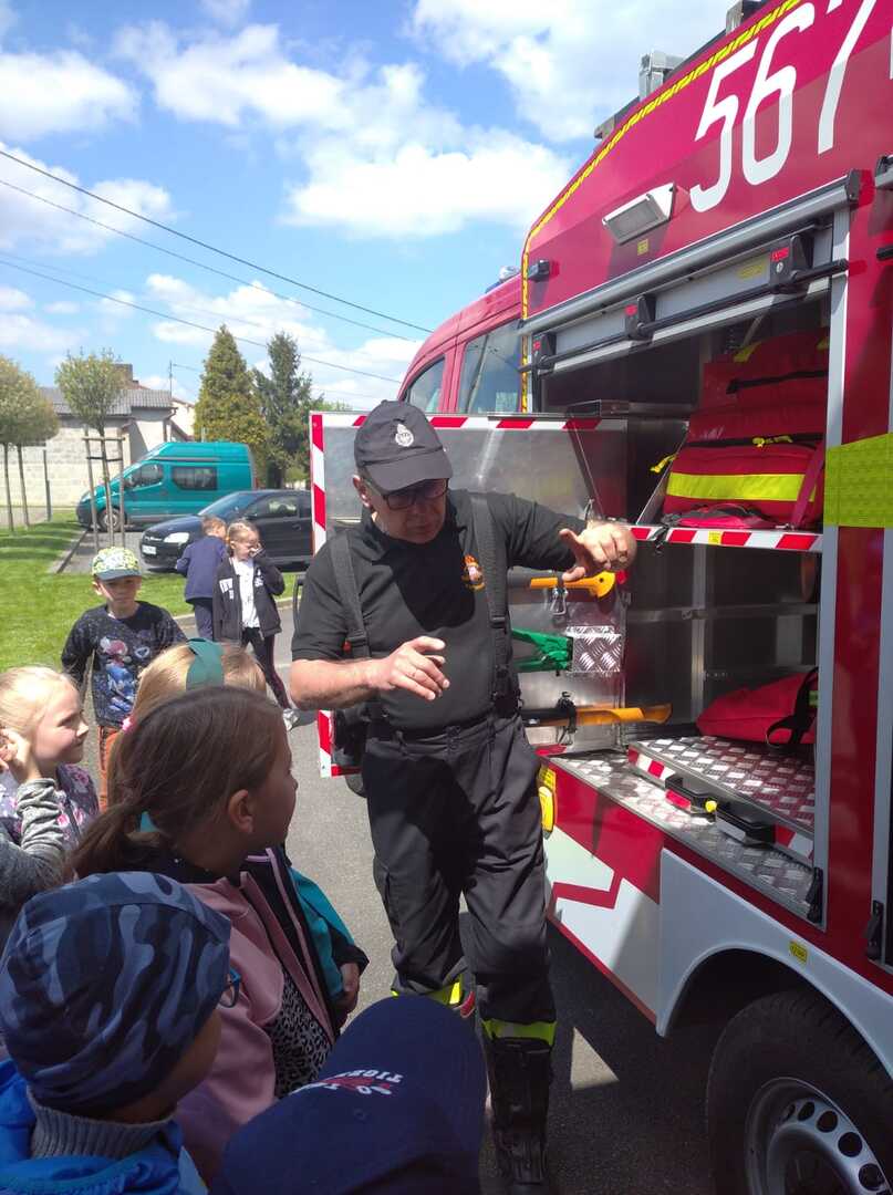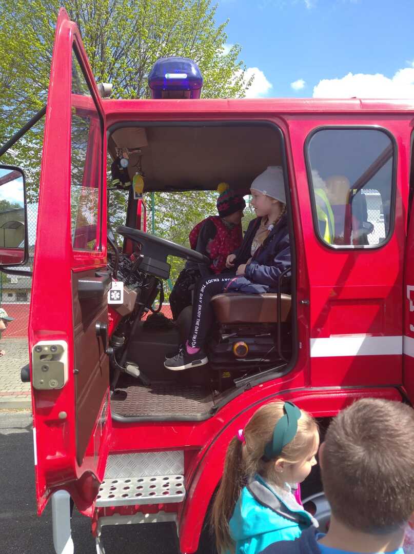 9 maja uczniowie klas I-III wraz z opiekunami udali się z wizytą do OSP w Rzuchowie, by z bliska przyjrzeć się jak wygląda praca strażaka. Na miejscu, dzieci przywitali Panowie strażacy, którzy zaprezentowali sprzęt gaśniczy będący wyposażeniem jednostki - wozy strażackie, sprzęt do gaszenia pożarów, apteczkę, ubrania strażackie. Chętni mogli wejść do wozów i usiąść za kierownicą. Podczas pogadanki, strażacy przekazali uczniom cenne informacje na temat gaszenia, zachowania bezpieczeństwa, sposobach alarmowania i zachowania się na wypadek zagrożenia nie tylko pożarowego, ale też w czasie powodzi czy ratowania zwierząt. Niektórzy uczniowie złożyli deklarację, że w przyszłości chcą zostać strażakami. Na zakończenie dzieci podziękowały za ciekawą lekcję i cenne wskazówki oraz wręczyły drobny upominek z okazji niedawno obchodzonego Święta Strażaka. Zaś dzieci otrzymały od gospodarzy słodkości i ,,Poradnik na trudne czasy”.