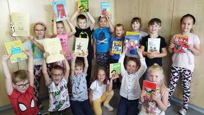 14 czerwca 2023r. w Bibliotece Szkoły Podstawowej w Rzuchowie odbyło się uroczyste pasowanie pierwszoklasistów na czytelników biblioteki. W uroczystości uczestniczyła wychowawczyni uczniów klasy pierwszej Pani Aleksandra Krajczok. Najmłodsi uczniowie naszej szkoły poznali już wszystkie litery, nauczyli się czytać, więc zostali przyjęci w grono czytelników biblioteki szkolnej. Uczniowie dokonali uroczystego ślubowania, po czym bibliotekarka pasowała dzieci na czytelników biblioteki i wręczyła pierwszoklasistom pamiątkowe dyplomy. W czasie uroczystości uczniowie rozwiązywali zagadki, wykonali zakładki do książek, przypomnieli zasady obchodzenia się z książką. Nie zabrakło zabawy polegającej na szukaniu ukrytych między książkami krasnoludków, które trzymały karteczki z informacjami na temat książek. Na koniec każdy z uczniów mógł wypożyczyć dla siebie wybraną książeczkę. Uroczystość w szkolnej bibliotece przebiegała w miłej, radosnej atmosferze.