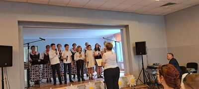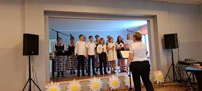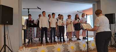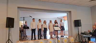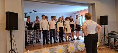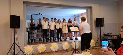 2 czerwca 2023 roku kilkoro uczniów naszej szkoły wzięło udział w warsztatach wokalnych prowadzonych przez cenioną i znaną nauczycielkę śpiewu Panią Elżbietę Biskup. Wraz z Kołem Gospodyń Wiejskich ,,Rzuchowianki” dzieci mogły nauczyć się poprawnej emisji głosu oraz technik śpiewania. Zwieńczeniem warsztatów był wspólny występ na scenie GOKu w Rzuchowie, który odbył się w ramach projektu, który napisały i wymyśliły ,,Rzuchowianki” pt. ,,Mamy świętują – dzieciom tradycje przekazują”. Serdecznie dziękujemy za zaproszenie do tego wydarzenia i za to, że dzieci miały możliwość rozwijania swoich talentów wokalnych pod okien Pani Elżbiety Biskup.