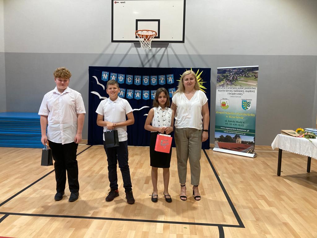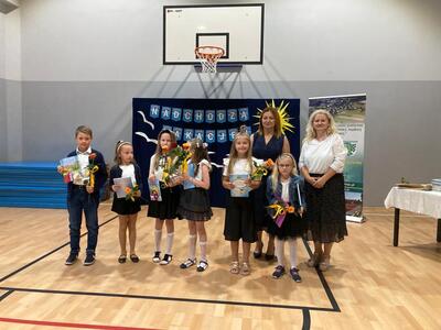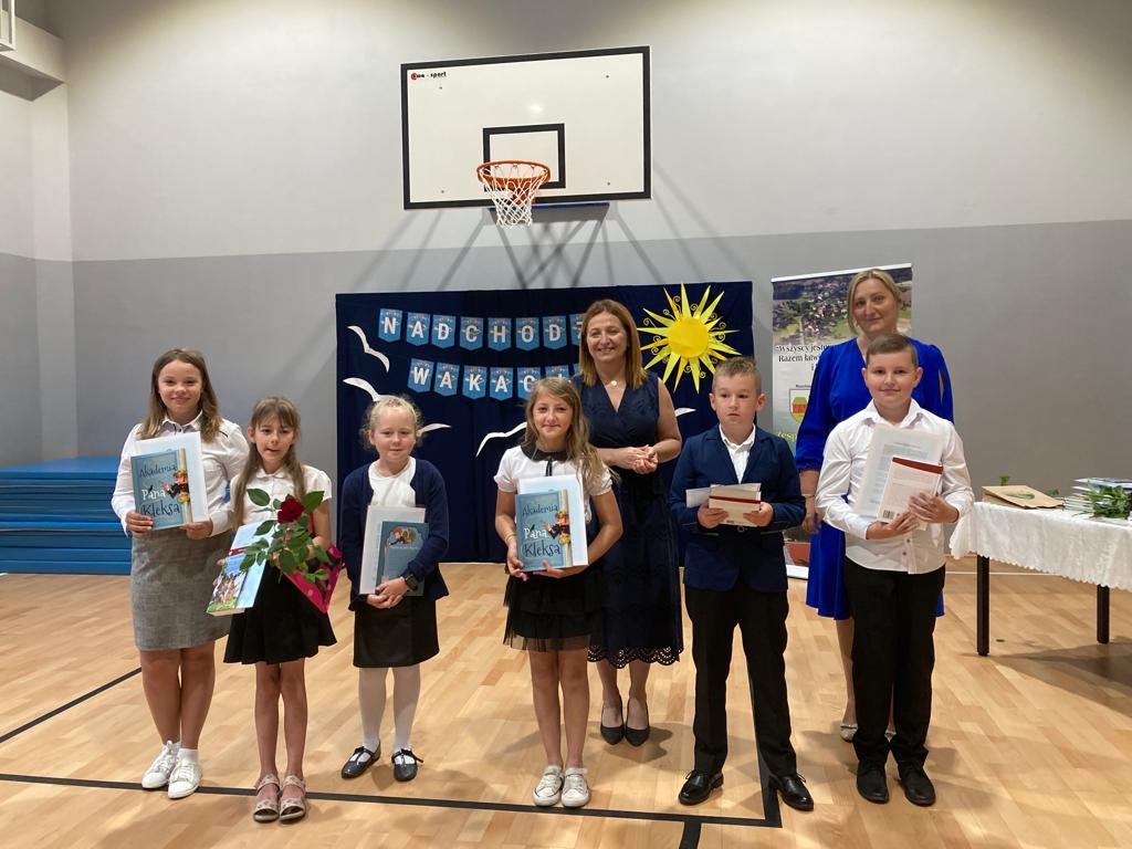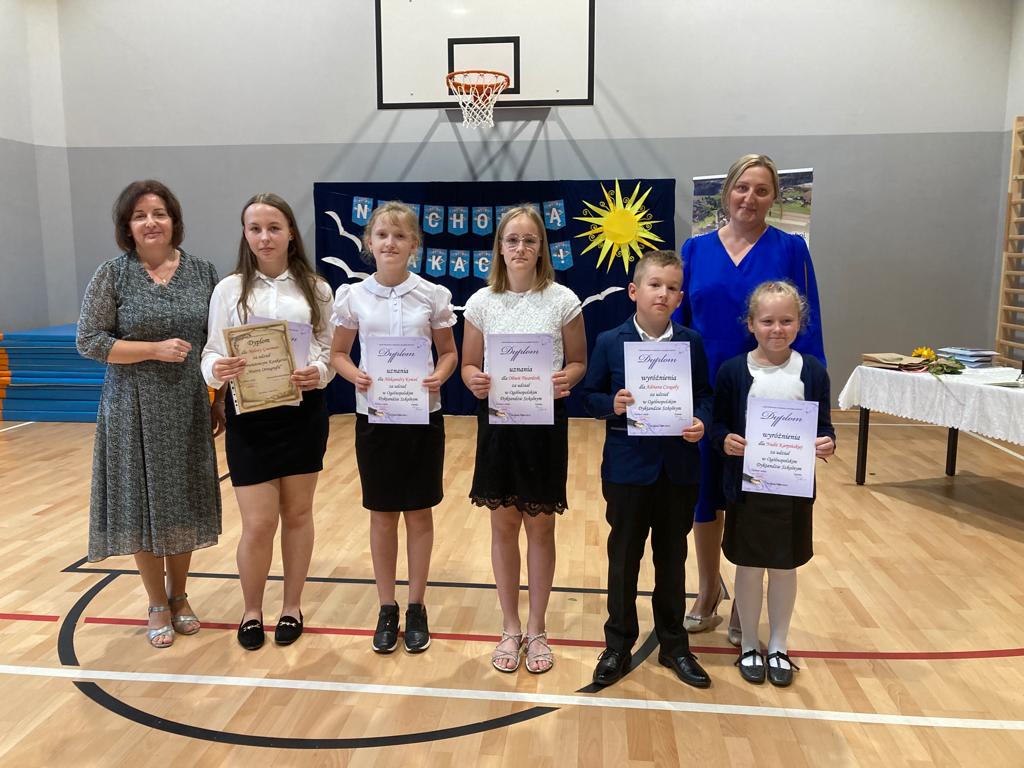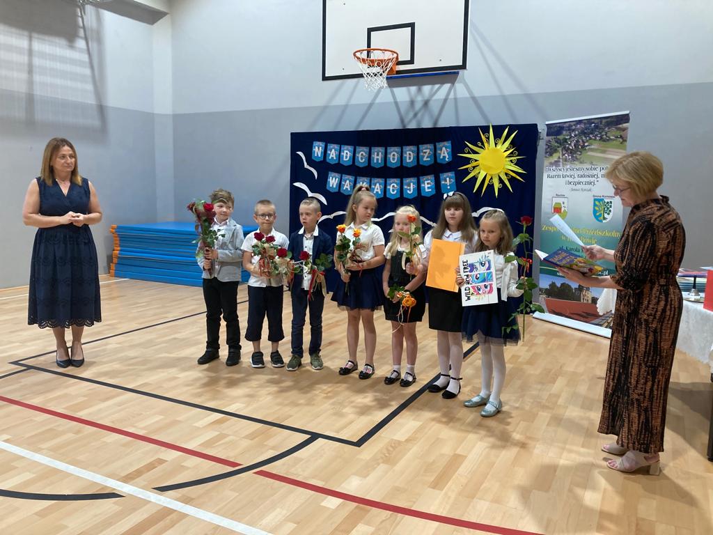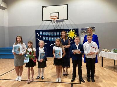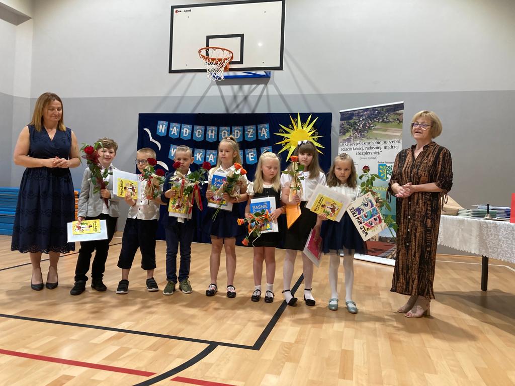 23 czerwca 2023r nadszedł upragniony dzień wszystkich uczniów- wakacje! W tym uroczystym dniu po wprowadzeniu pocztu sztandarowego, odśpiewaniu hymnu państwowego pani Dyrektor pogratulowała wyróżnionym uczniom osiągnięć w nauce i sukcesów w konkursach. Wychowawcy klas wręczyli świadectwa i dyplomy składając gratulacje swoim podopiecznym. Miłą niespodzianką były nagrody dla uczniów za zdobyte miejsca w licznych konkursach odbywających się w ostatnim czasie. Podziękowania przyjaciela szkoły otrzymali również zaangażowani rodzice, którzy wspierali szkołę w różnych przedsięwzięciach. I tak zabrzmiał ostatni dzwonek. Czas na zasłużony wakacyjny wypoczynek.