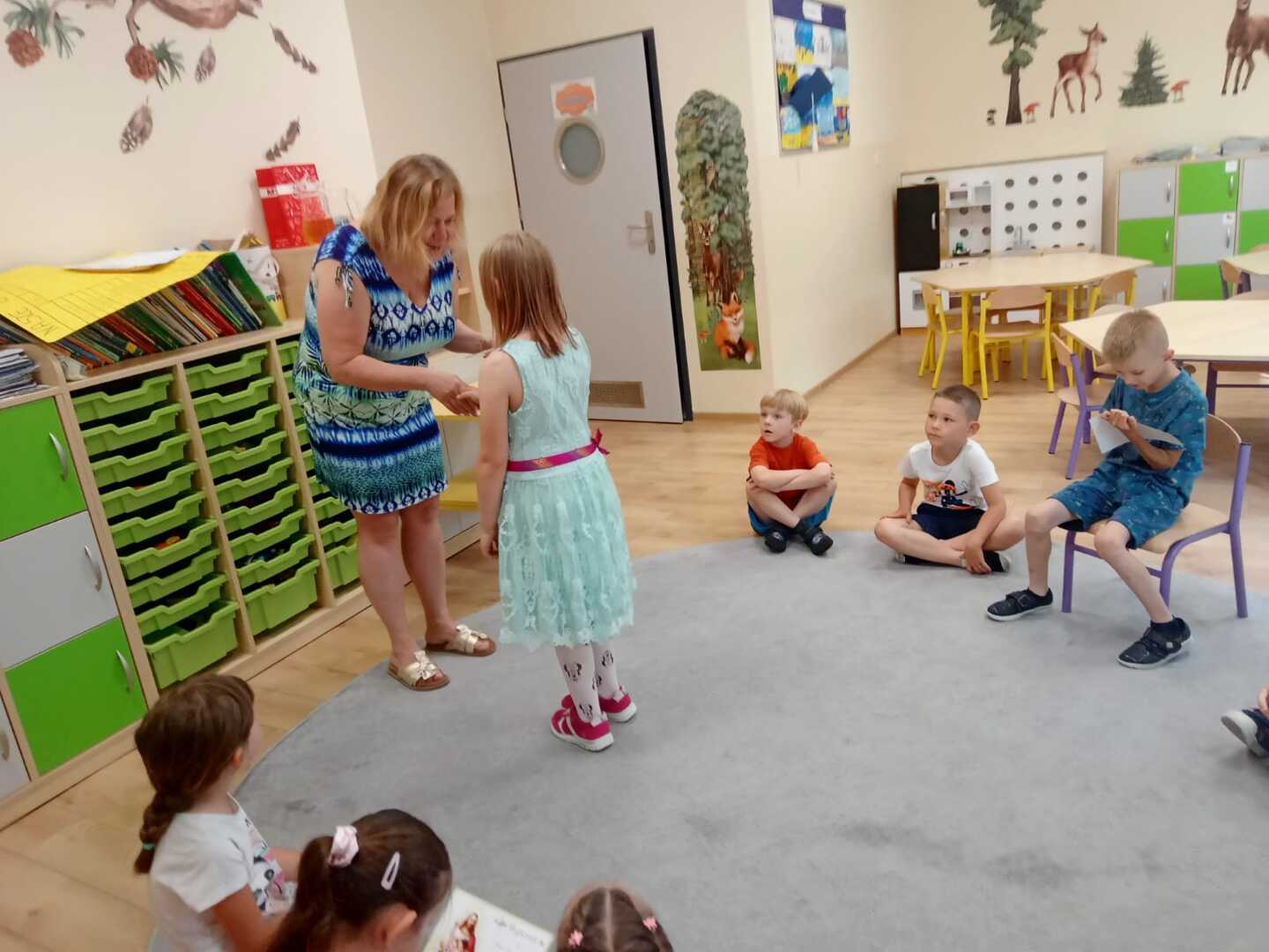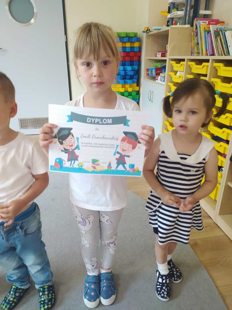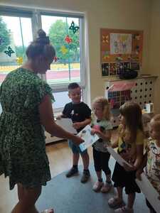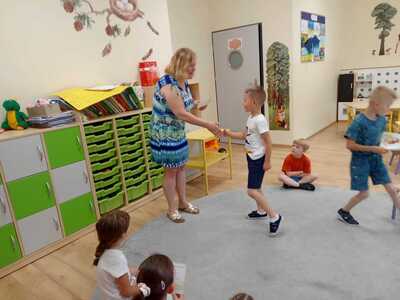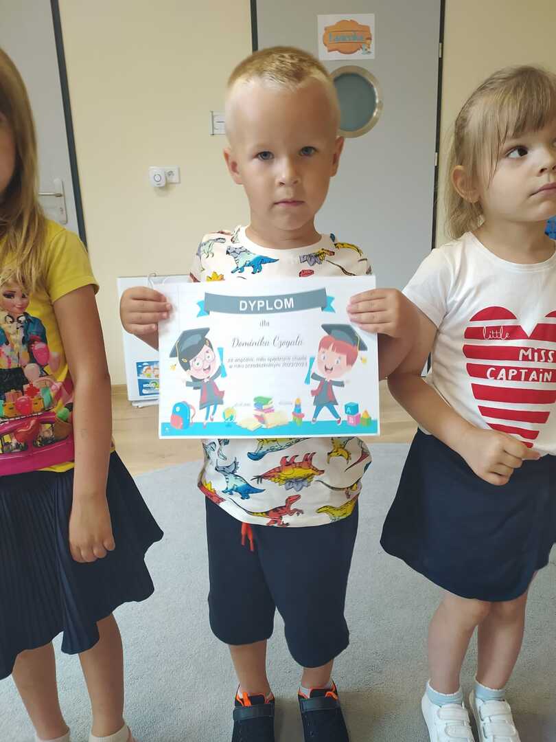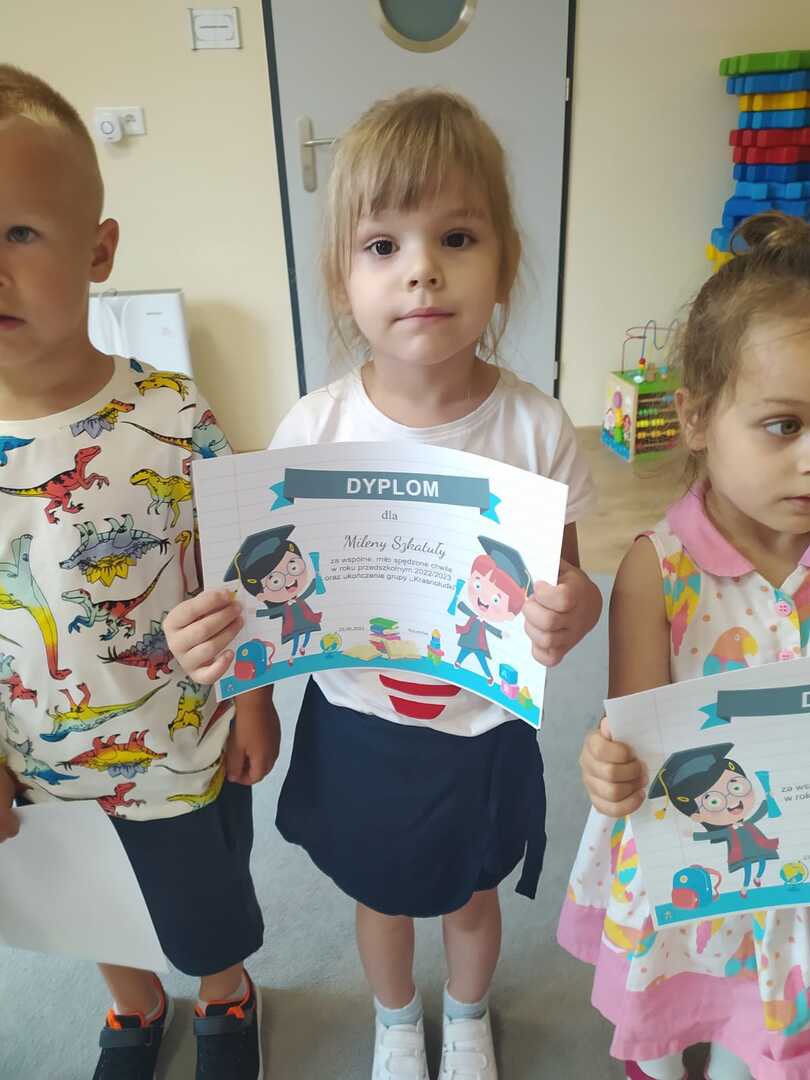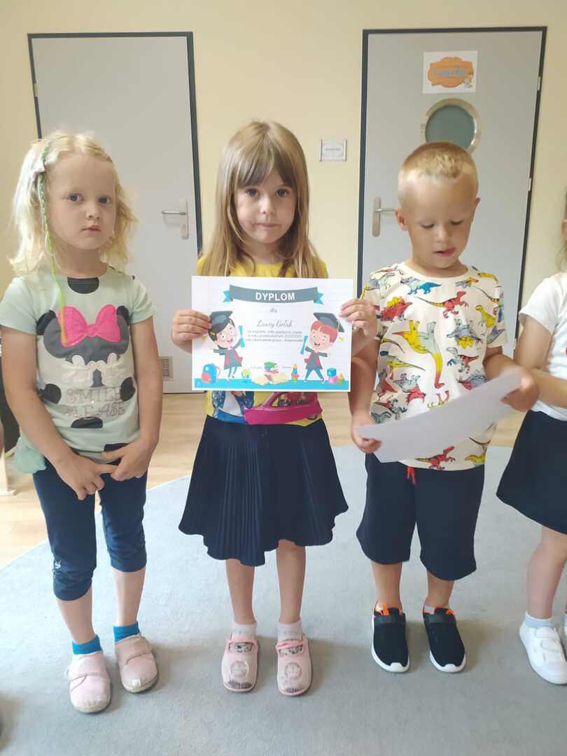 Uroczyste zakończenie roku szkolnego 2022/2023 w naszym przedszkolu odbyło się 22 czerwca dla dzieci 5/6 letnich oraz 23 czerwca dla dzieci 3/4 letnich. Pierwszą akademie na którą zaproszeni zostali rodzice przedszkolaków rozpoczęliśmy od piosenek i wierszyków. Po występach nauczycielka wraz z panią dyrektor podziękowała rodzicom za współpracę i zaangażowanie w życie przedszkola. Następnie każdy przedszkolak otrzymał dyplom, książkę i słodką niespodziankę. W piątek młodsze dzieci brały udział w różnych zabawach integracyjnych. Nie zabrakło także pamiątkowych zdjęć, dyplomów i słodkiego poczęstunku. Obie uroczystości przebiegły w miłej i radosnej atmosferze. Wszystkim rodzicom jeszcze raz dziękujemy za pomoc i współpracę. A dzieciom życzymy bezpiecznych, słonecznych wakacji oraz udanego wypoczynku.