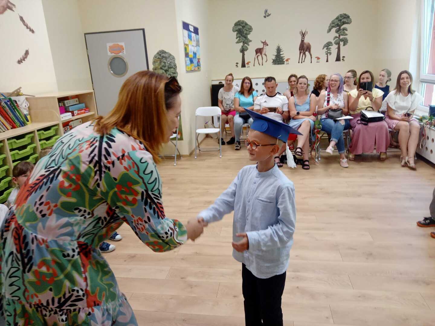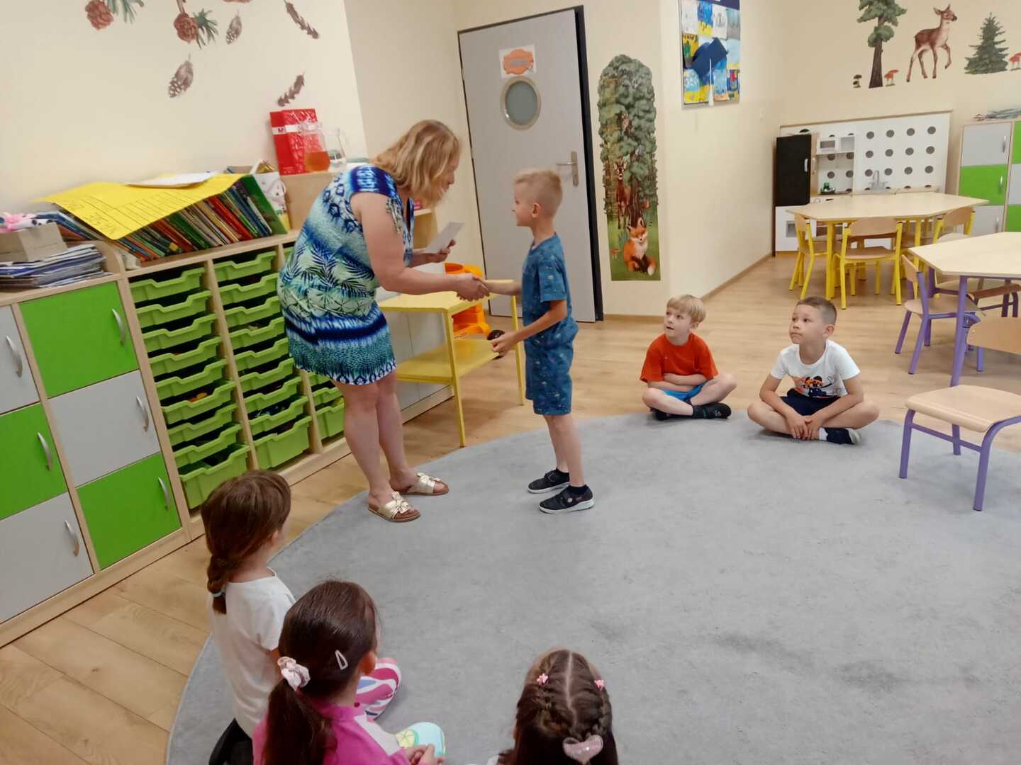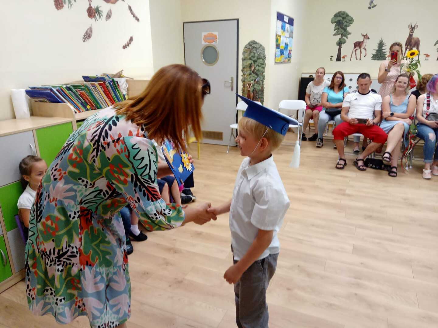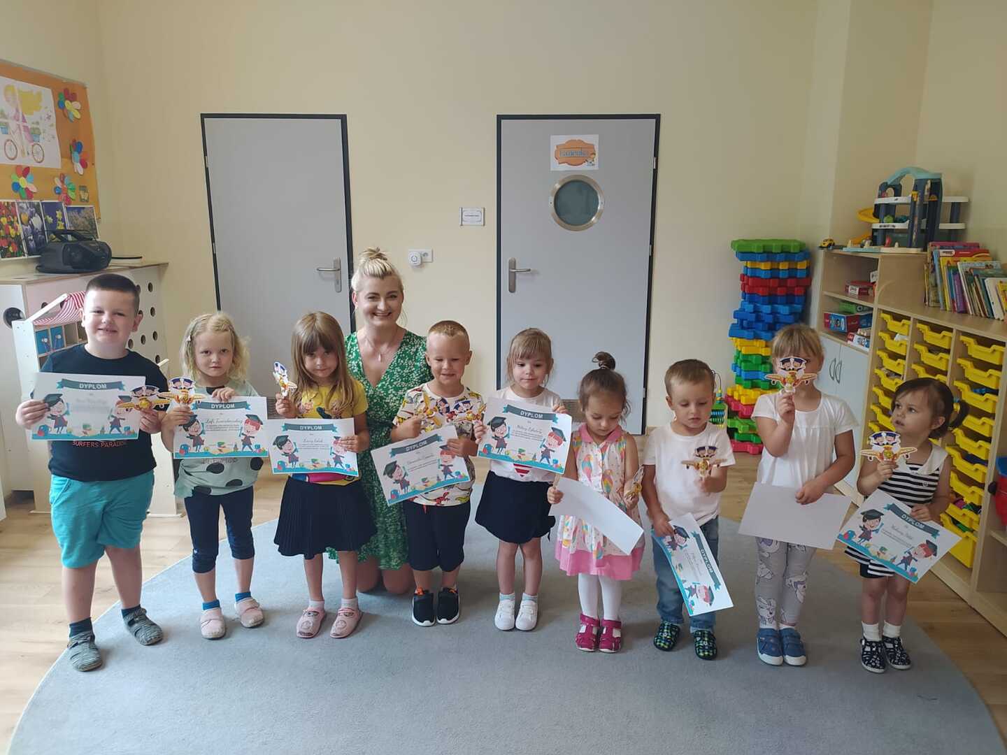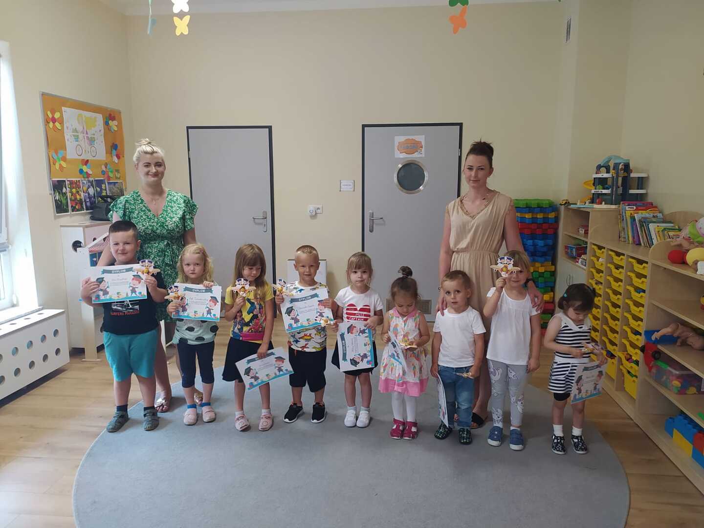 Uroczyste zakończenie roku szkolnego 2022/2023 w naszym przedszkolu odbyło się 22 czerwca dla dzieci 5/6 letnich oraz 23 czerwca dla dzieci 3/4 letnich. Pierwszą akademie na którą zaproszeni zostali rodzice przedszkolaków rozpoczęliśmy od piosenek i wierszyków. Po występach nauczycielka wraz z panią dyrektor podziękowała rodzicom za współpracę i zaangażowanie w życie przedszkola. Następnie każdy przedszkolak otrzymał dyplom, książkę i słodką niespodziankę. W piątek młodsze dzieci brały udział w różnych zabawach integracyjnych. Nie zabrakło także pamiątkowych zdjęć, dyplomów i słodkiego poczęstunku. Obie uroczystości przebiegły w miłej i radosnej atmosferze. Wszystkim rodzicom jeszcze raz dziękujemy za pomoc i współpracę. A dzieciom życzymy bezpiecznych, słonecznych wakacji oraz udanego wypoczynku.